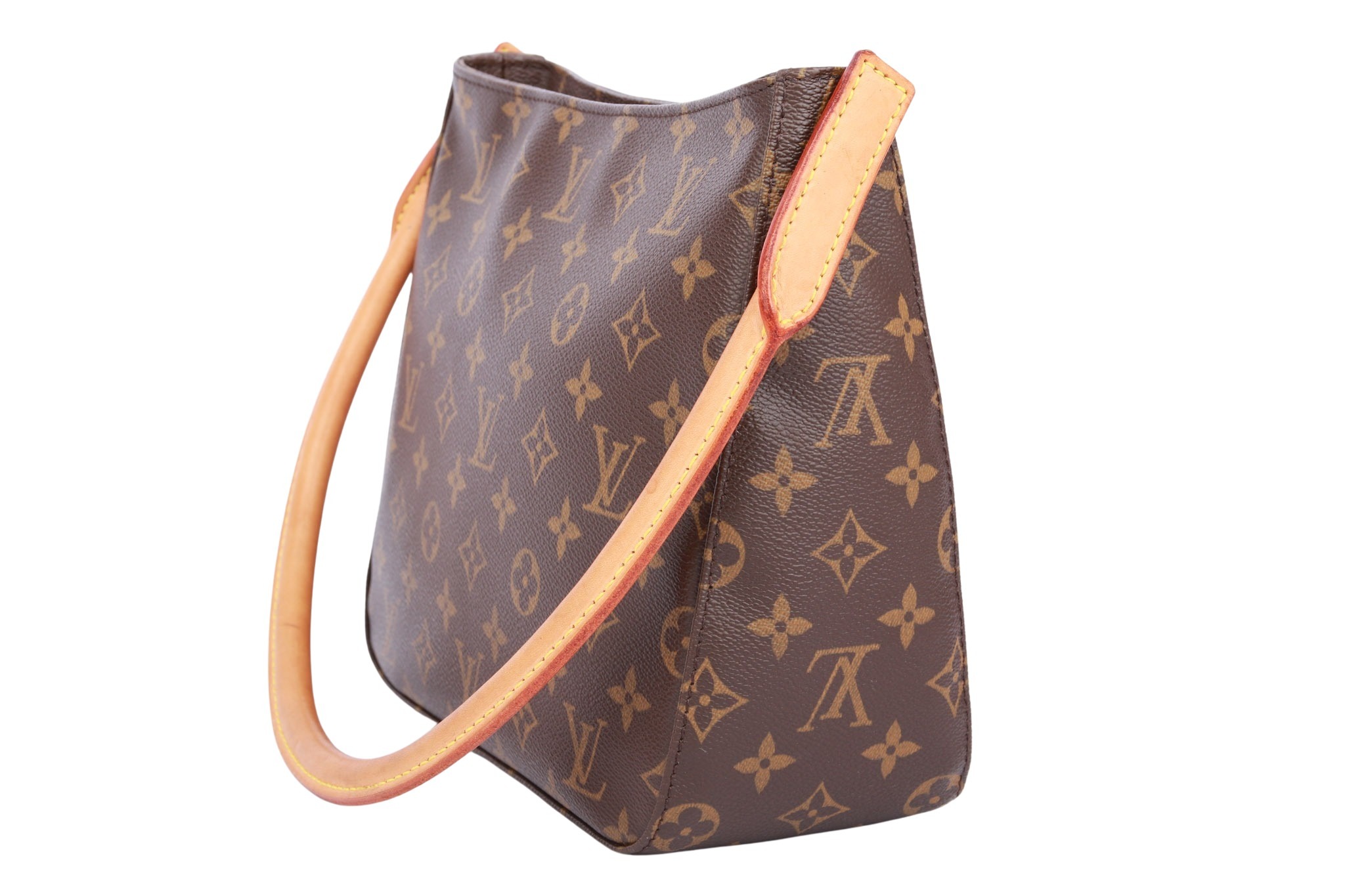 Die Louis Vuitton Looping MM in klassischem Monogram Canvas ist eine elegante Schultertasche mit markant geschwungenem Henkel aus natürlichem Vachetta-Leder. Ihre mittelgroße Größe bietet ausreichend Platz für den täglichen Gebrauch, während das stabile Canvas und das zeitlose Design für langlebige Qualität und stilvolle Vielseitigkeit sorgen. Ein echter Klassiker aus dem Louis Vuitton Sortiment.