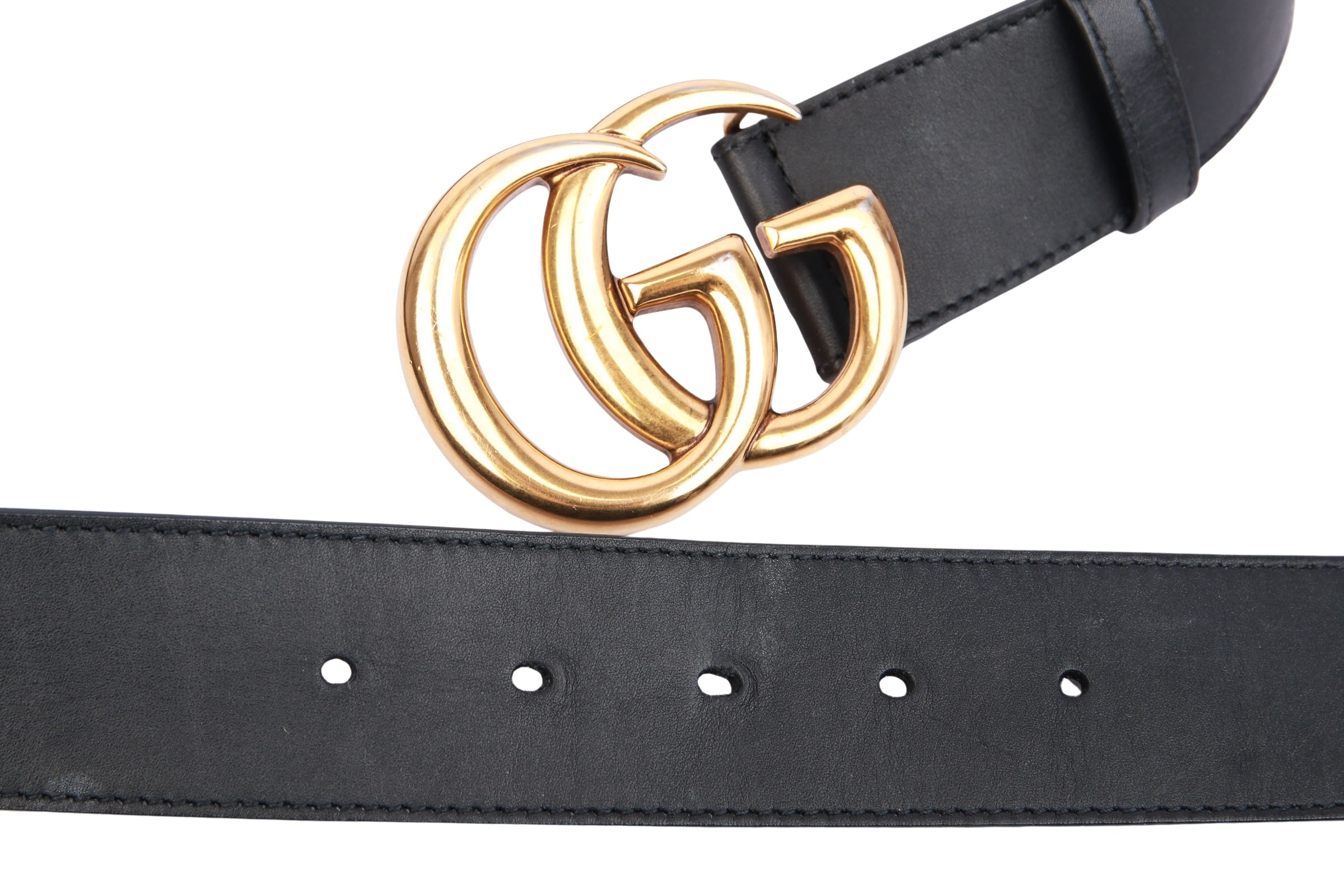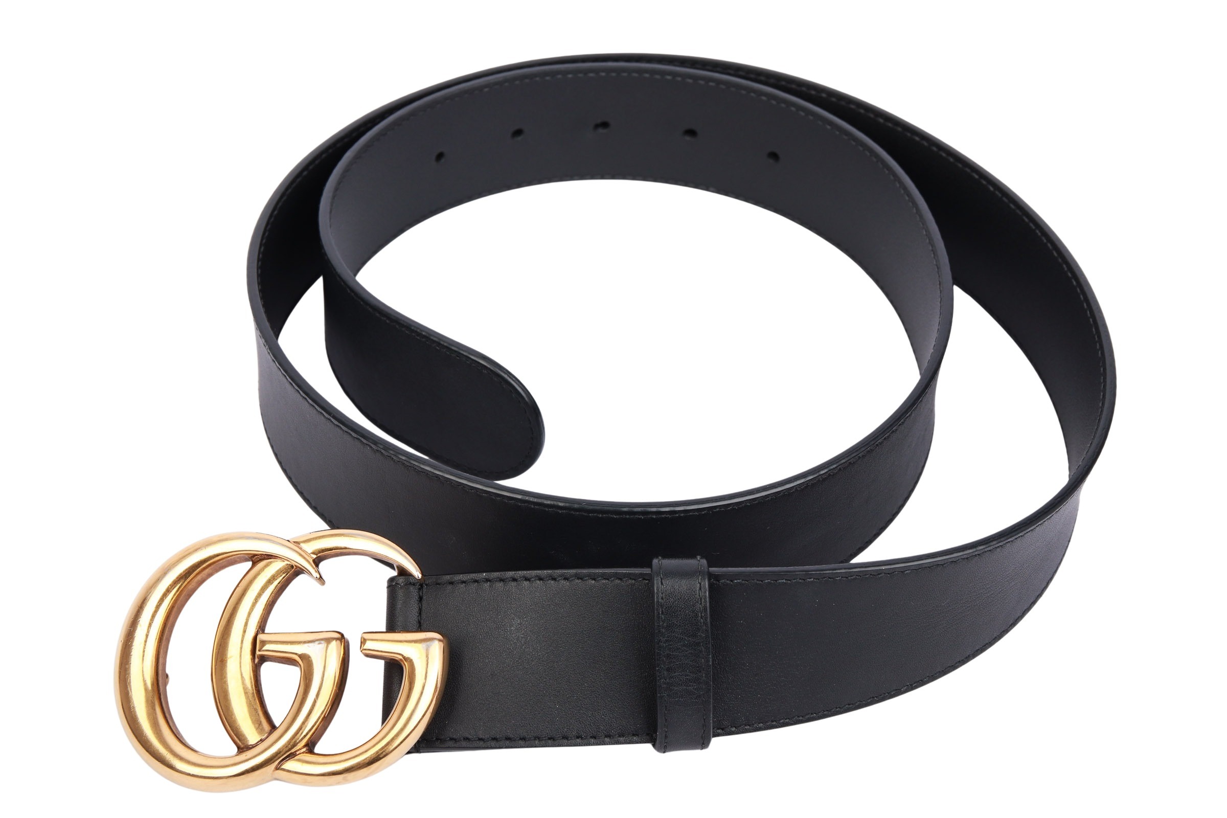 Der Gucci Marmont GG Gürtel in Schwarz mit der Größe 100 ist ein zeitloses und vielseitiges Accessoire, das zu vielen Outfits passt. Der Gürtel ist aus hochwertigem Leder gefertigt und verfügt über das ikonische GG-Logo in einer goldfarbenen Metallschnalle. Das Schwarz des Gürtels ist klassisch und elegant und kann sowohl zu lässigen als auch zu schickeren Looks getragen werden.