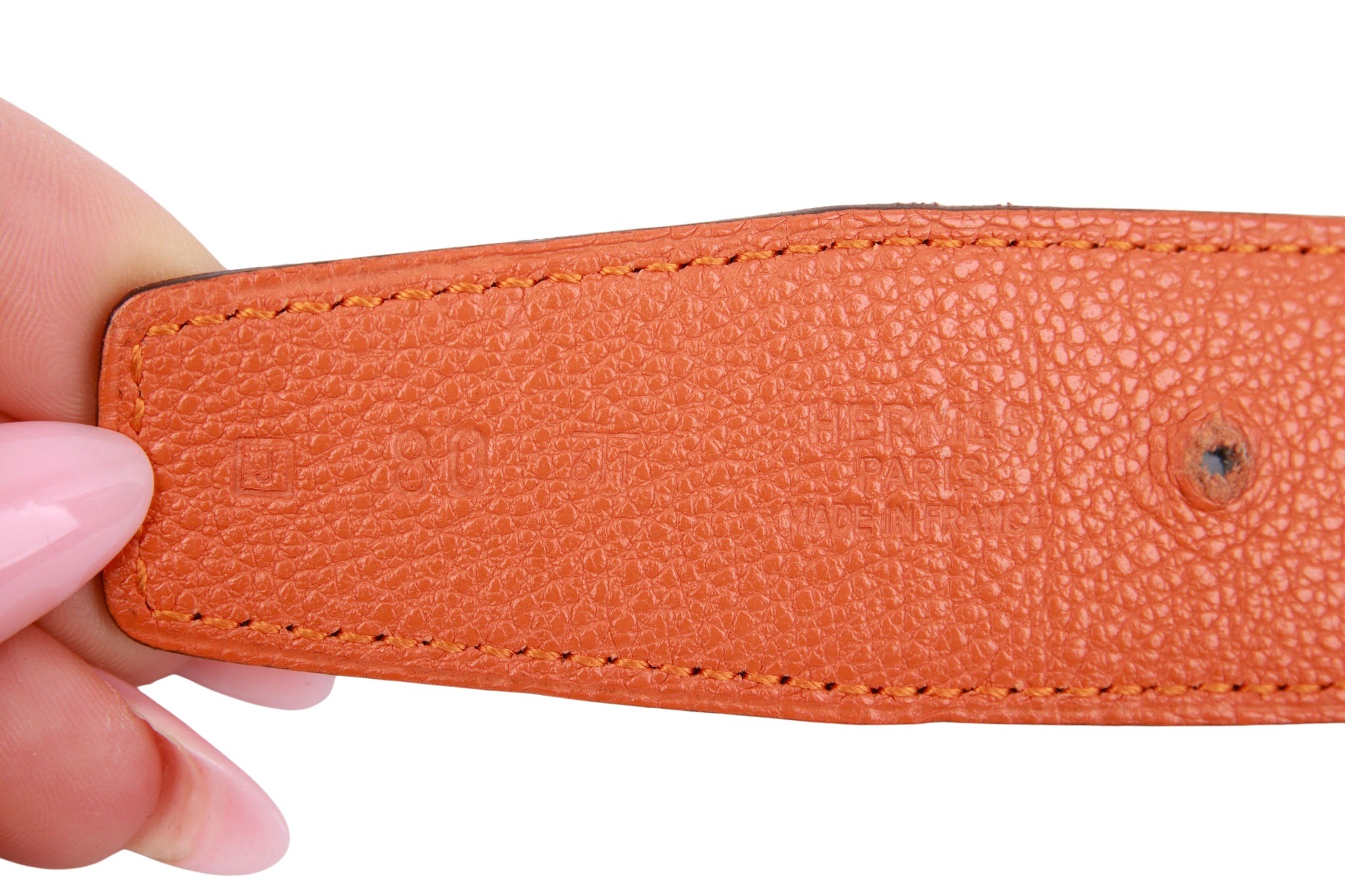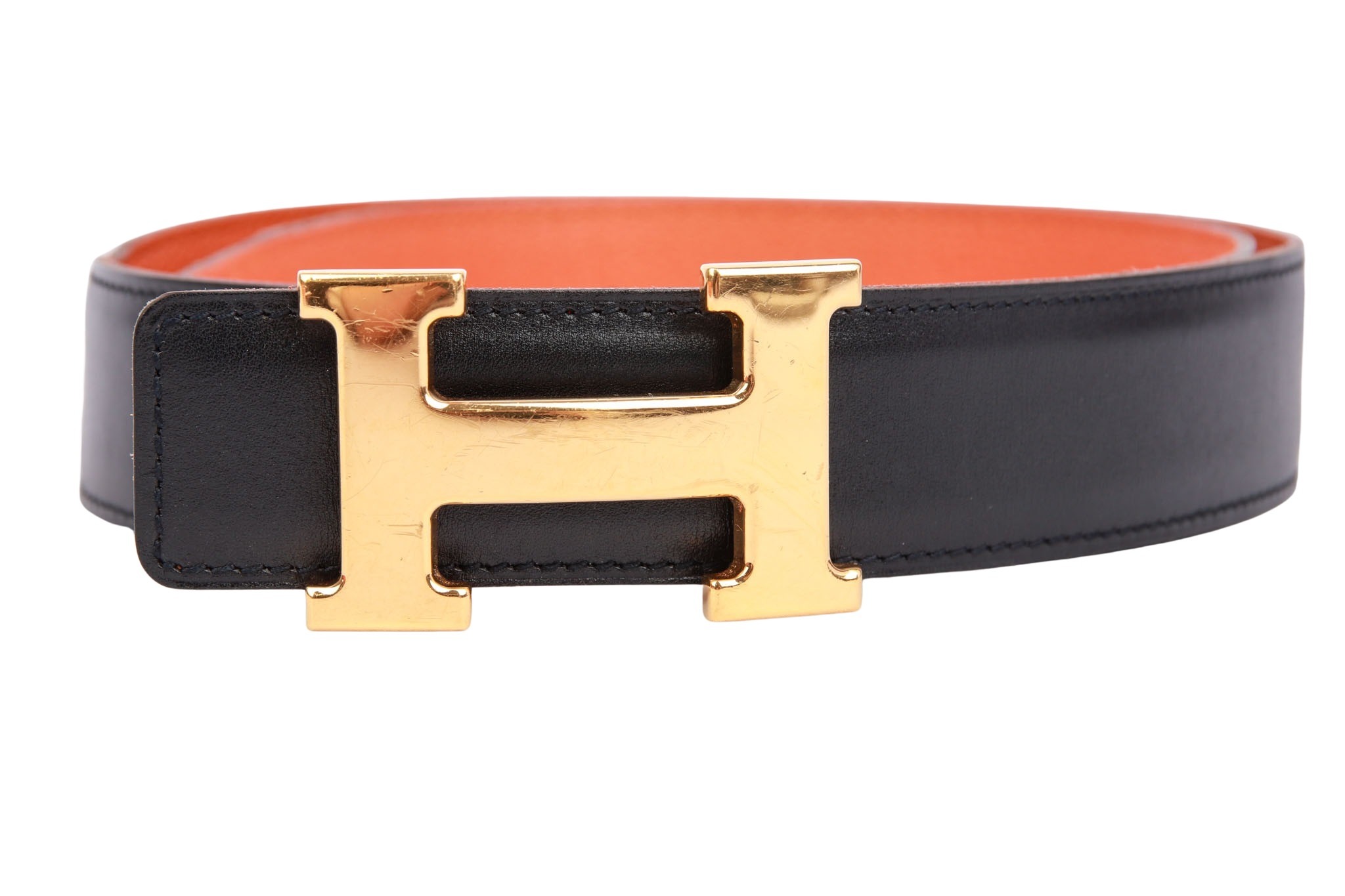 Hermès Wendegürtel 'H' Schwarz / Orange Gr. 80