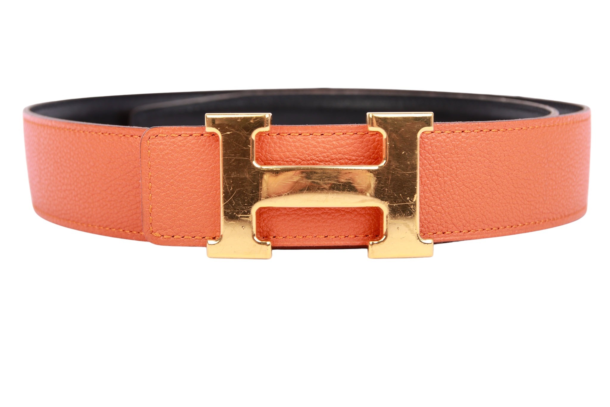 Der Hermès Wendegürtel ist ein raffiniertes Accessoire, das Vielseitigkeit und Stil vereint. Mit seiner hochwertigen Verarbeitung und dem charakteristischen 'H'-Schnallenverschluss verkörpert er die zeitlose Eleganz der Marke Hermès. Das Besondere an diesem Gürtel ist seine Wendefunktion, die es ermöglicht, ihn auf zwei verschiedene Arten zu tragen: entweder in klassischem Schwarz oder in Orange. Diese Flexibilität macht ihn zu einem äußerst praktischen und anpassungsfähigen Accessoire, das sich mühelos verschiedenen Outfits und Anlässen anpasst.