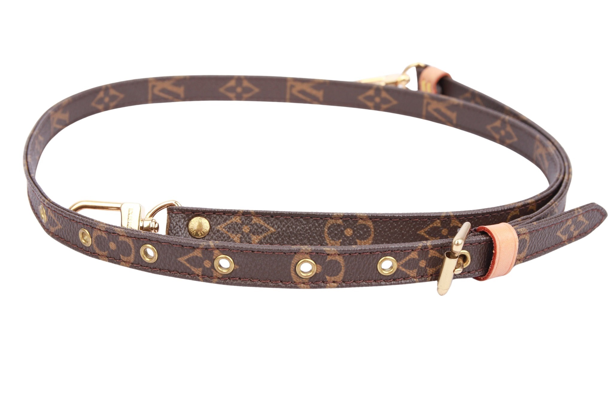 Der Louis Vuitton Schultergurt ist ein stilvolles Accessoire, das Taschen einen individuellen und femininen Touch verleiht. Aus hochwertigem Material gefertigt, bietet der Gurt nicht nur hohen Tragekomfort, sondern auch eine einfache Anpassung der Länge. Mit goldfarbenen Karabinerhaken lässt er sich mühelos an verschiedenen Taschenmodellen befestigen. Ein elegantes und vielseitiges Detail, das jedem Outfit einen Hauch von Farbe und Luxus verleiht.