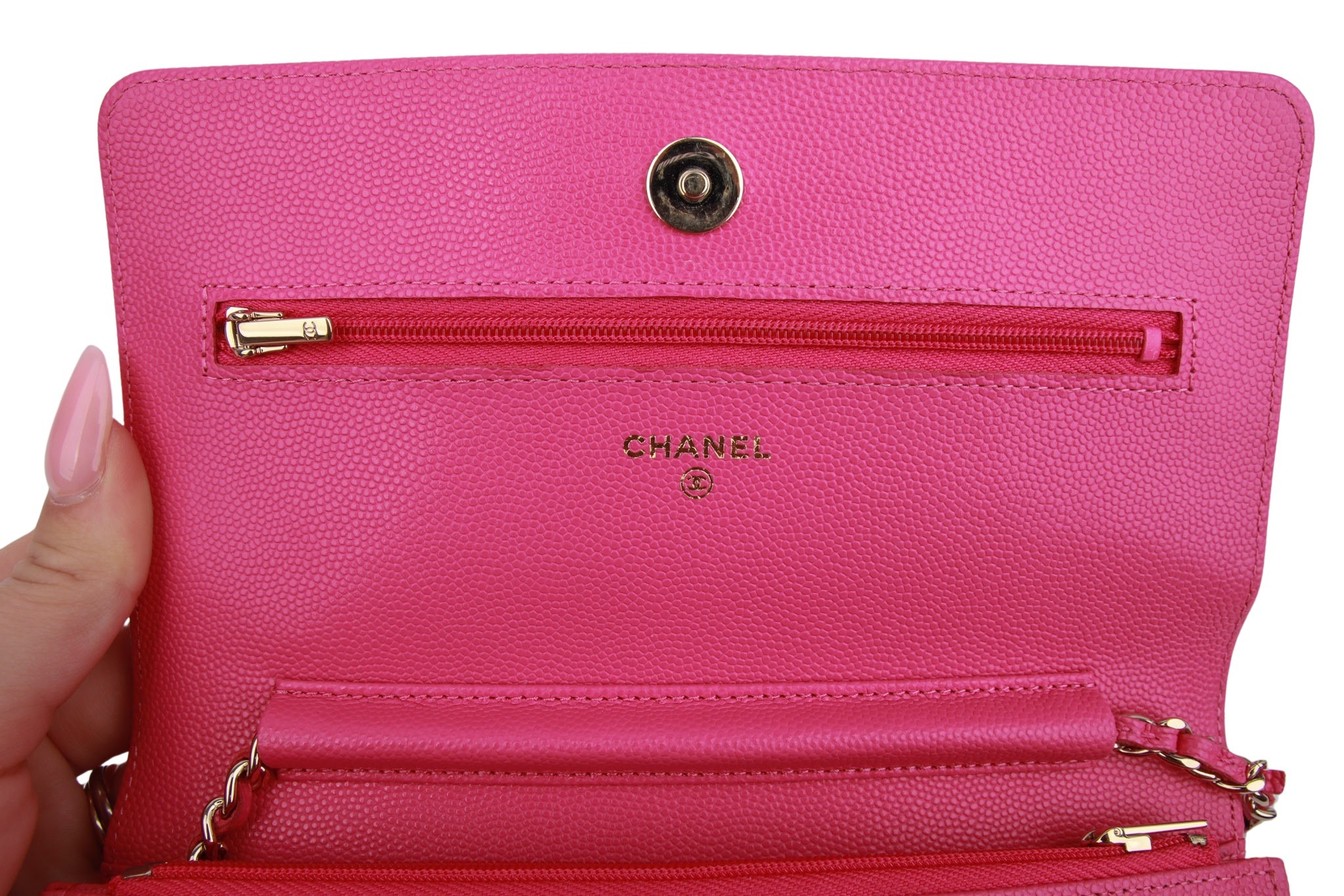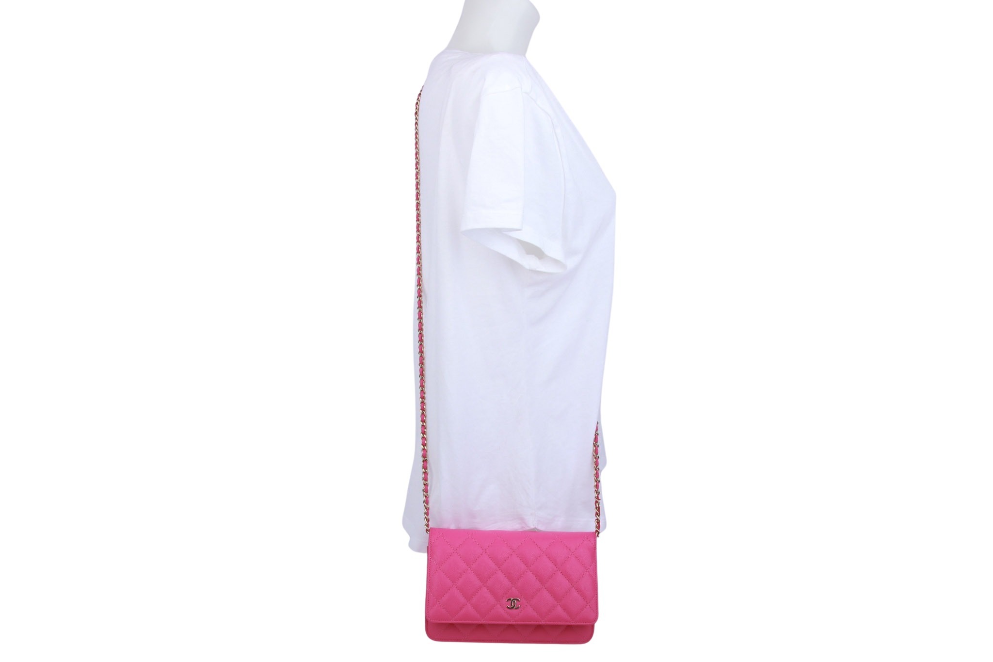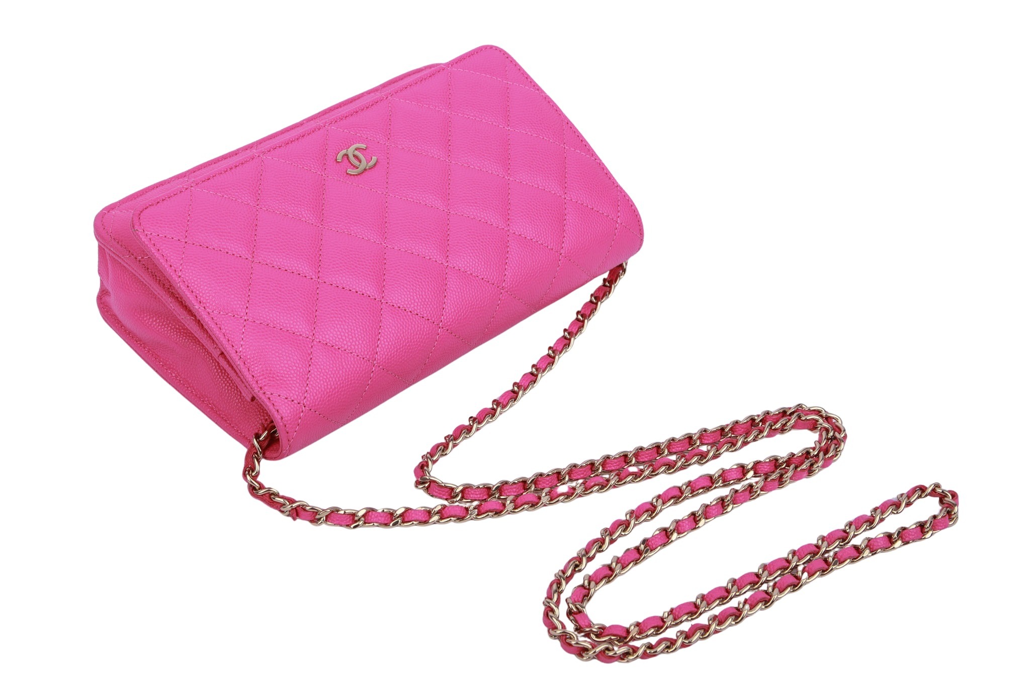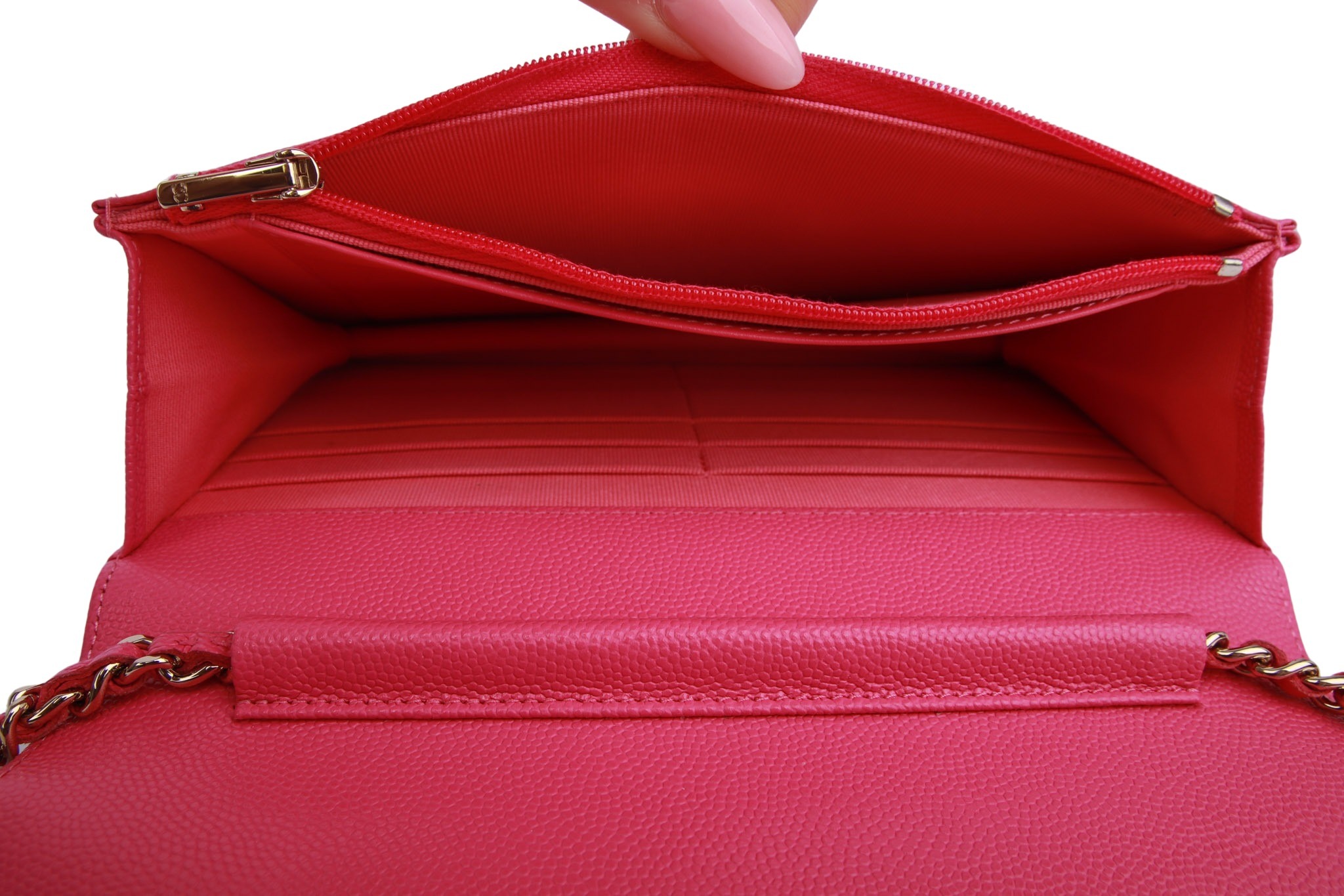 Eleganz trifft auf Funktionalität: Die Chanel Wallet on Chain in strahlendem Kaviar Pink ist das perfekte Accessoire für alle, die Luxus und Stil lieben, ohne auf praktische Handhabung zu verzichten. Gefertigt aus hochwertigem, strukturiertem Kaviarleder, überzeugt die Tasche durch ihre Robustheit und edle Haptik.