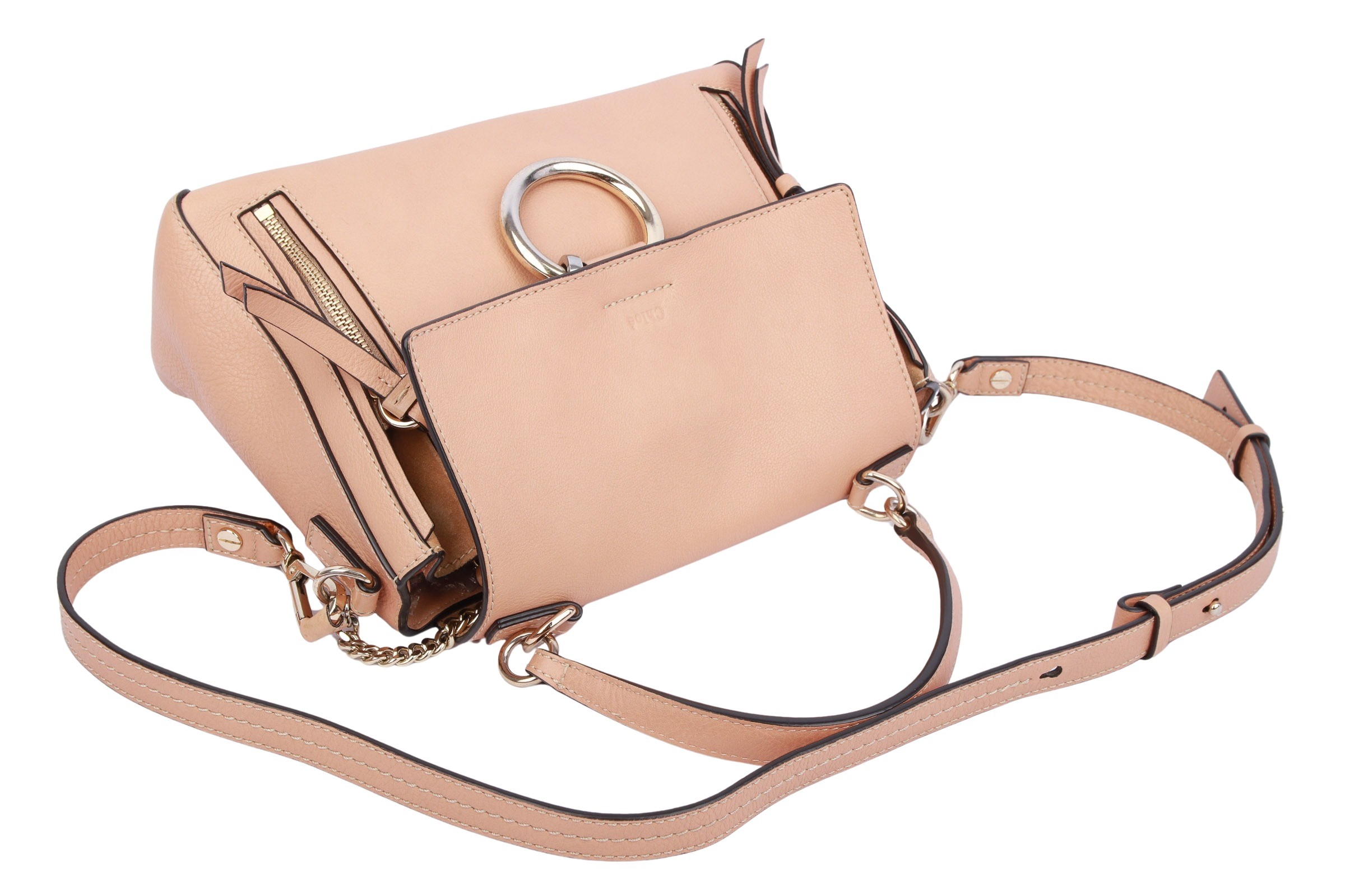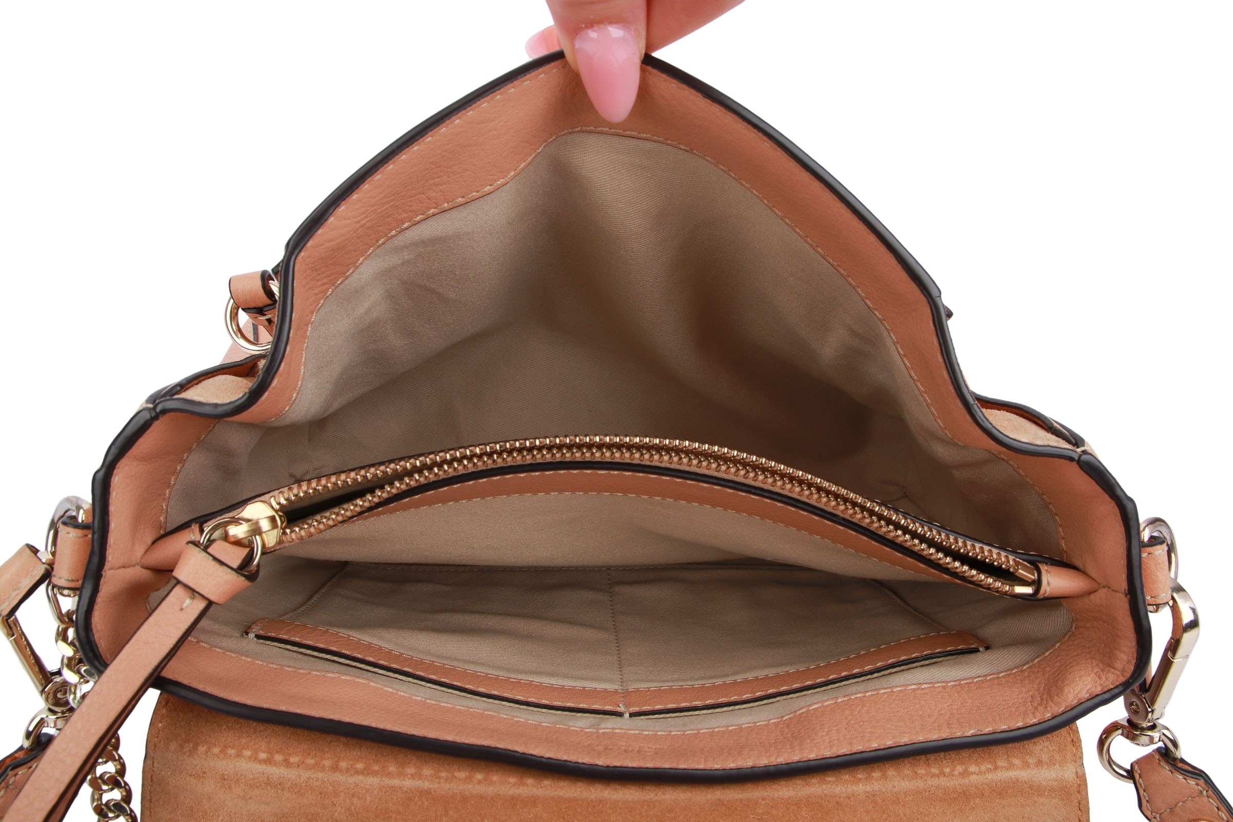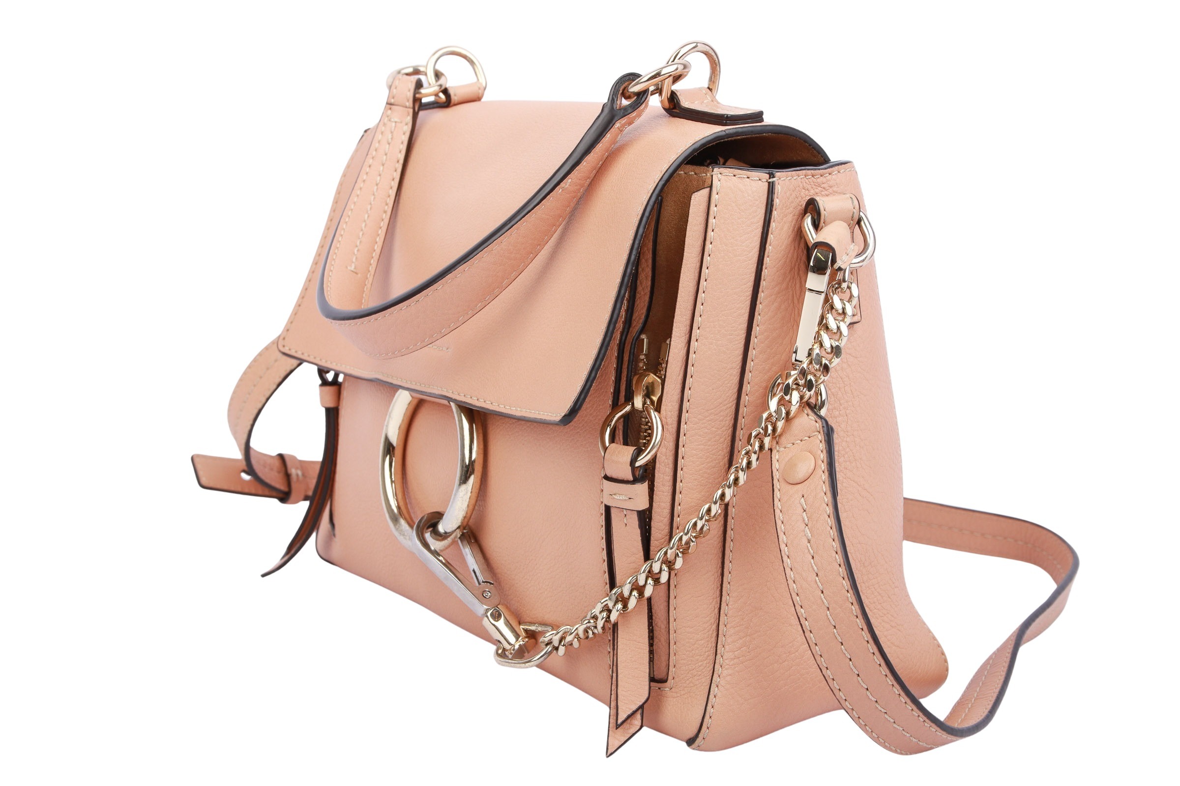 Die Chloé Faye Day Bag aus beigem Leder ist eine elegante Schultertasche aus hochwertigem Glattleder. Sie zeichnet sich durch das markante Metallring- und Kettendetail auf der Front aus – ein typisches Merkmal der Faye-Kollektion. Die Tasche verfügt über einen Tragehenkel sowie einen abnehm- und verstellbaren Schulterriemen. Innen bietet sie ein Hauptfach mit Reißverschluss- und Steckfächern, außen meist ein zusätzliches Steckfach. Ihr neutrales Beigeton und das klare Design machen sie zu einem vielseitigen, stilvollen Begleiter für den Alltag.