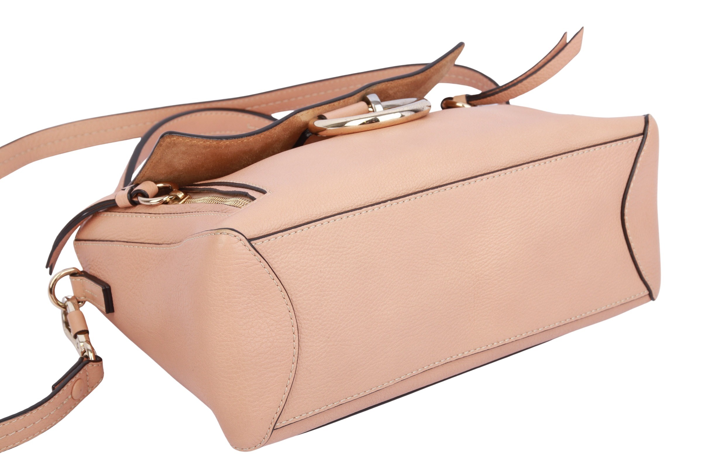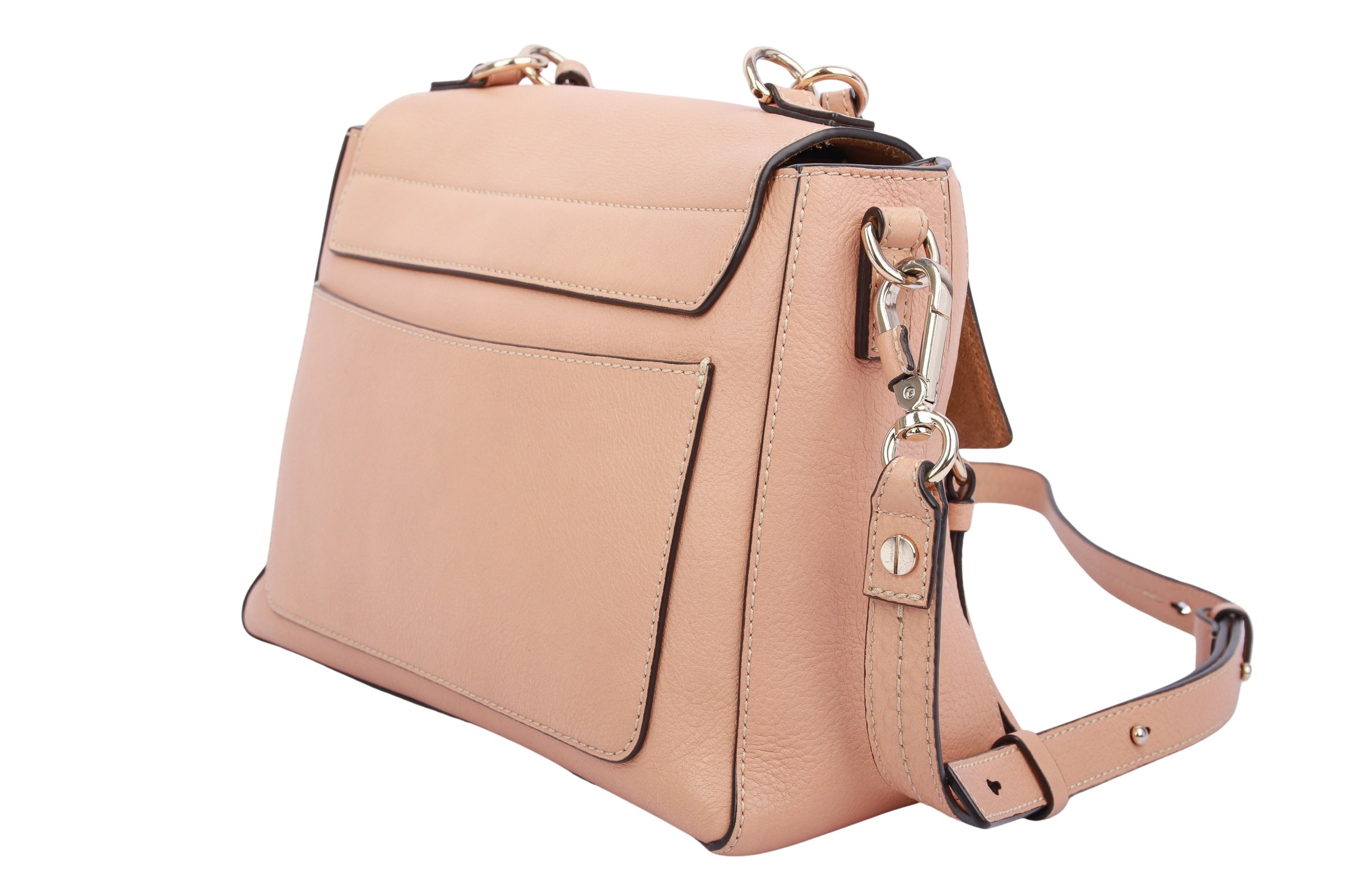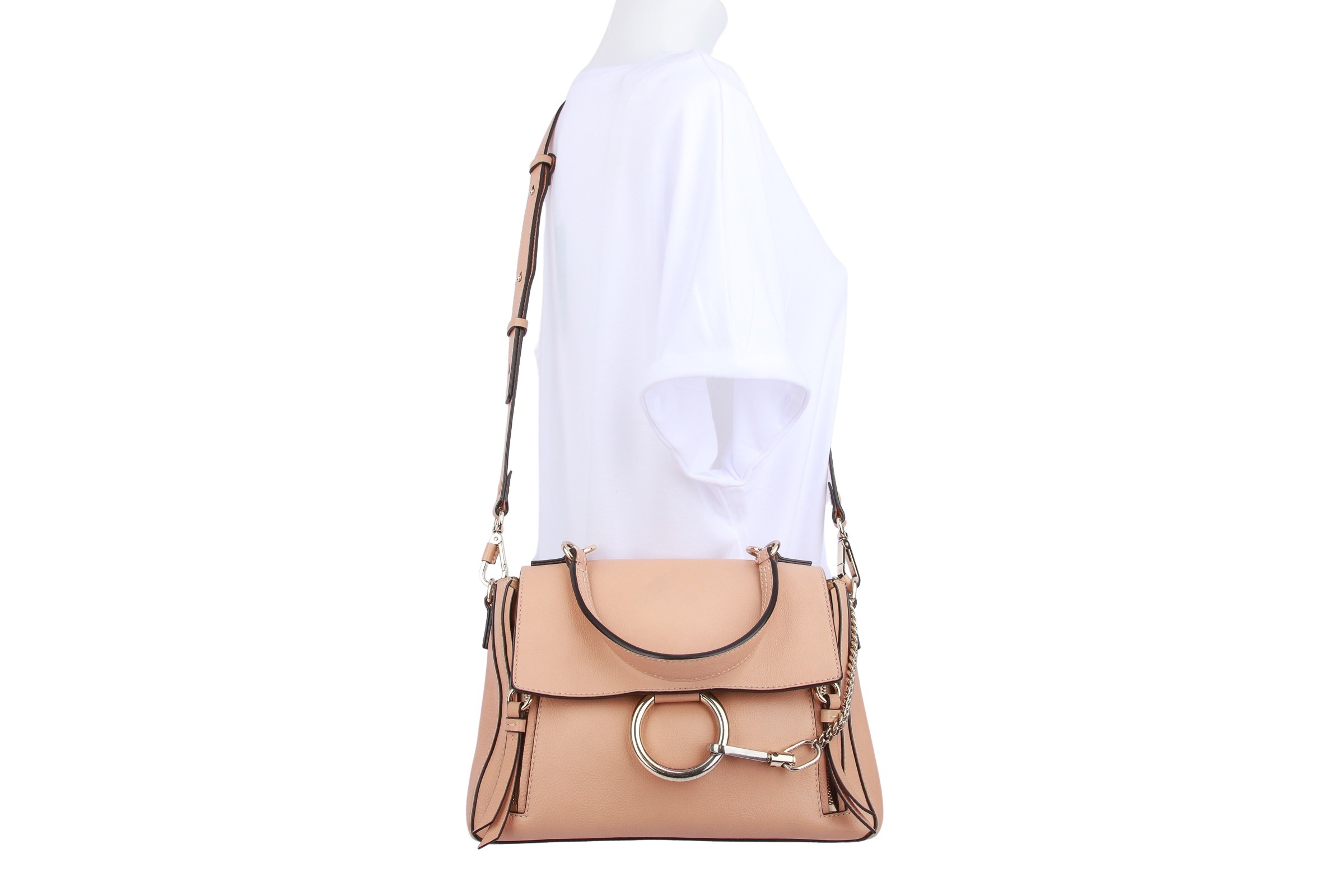 Die Chloé Faye Day Bag aus beigem Leder ist eine elegante Schultertasche aus hochwertigem Glattleder. Sie zeichnet sich durch das markante Metallring- und Kettendetail auf der Front aus – ein typisches Merkmal der Faye-Kollektion. Die Tasche verfügt über einen Tragehenkel sowie einen abnehm- und verstellbaren Schulterriemen. Innen bietet sie ein Hauptfach mit Reißverschluss- und Steckfächern, außen meist ein zusätzliches Steckfach. Ihr neutrales Beigeton und das klare Design machen sie zu einem vielseitigen, stilvollen Begleiter für den Alltag.