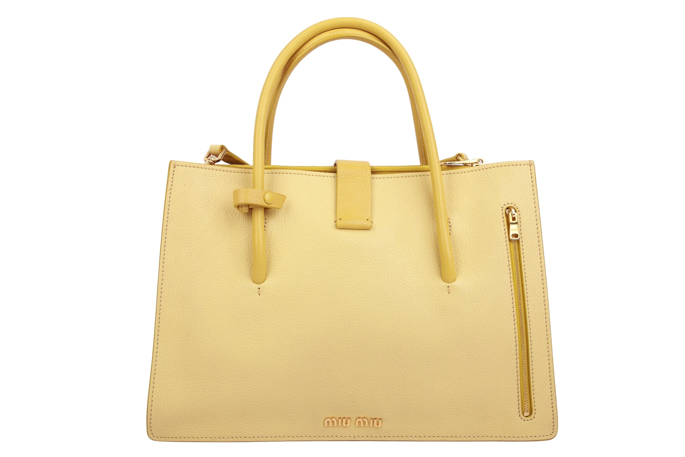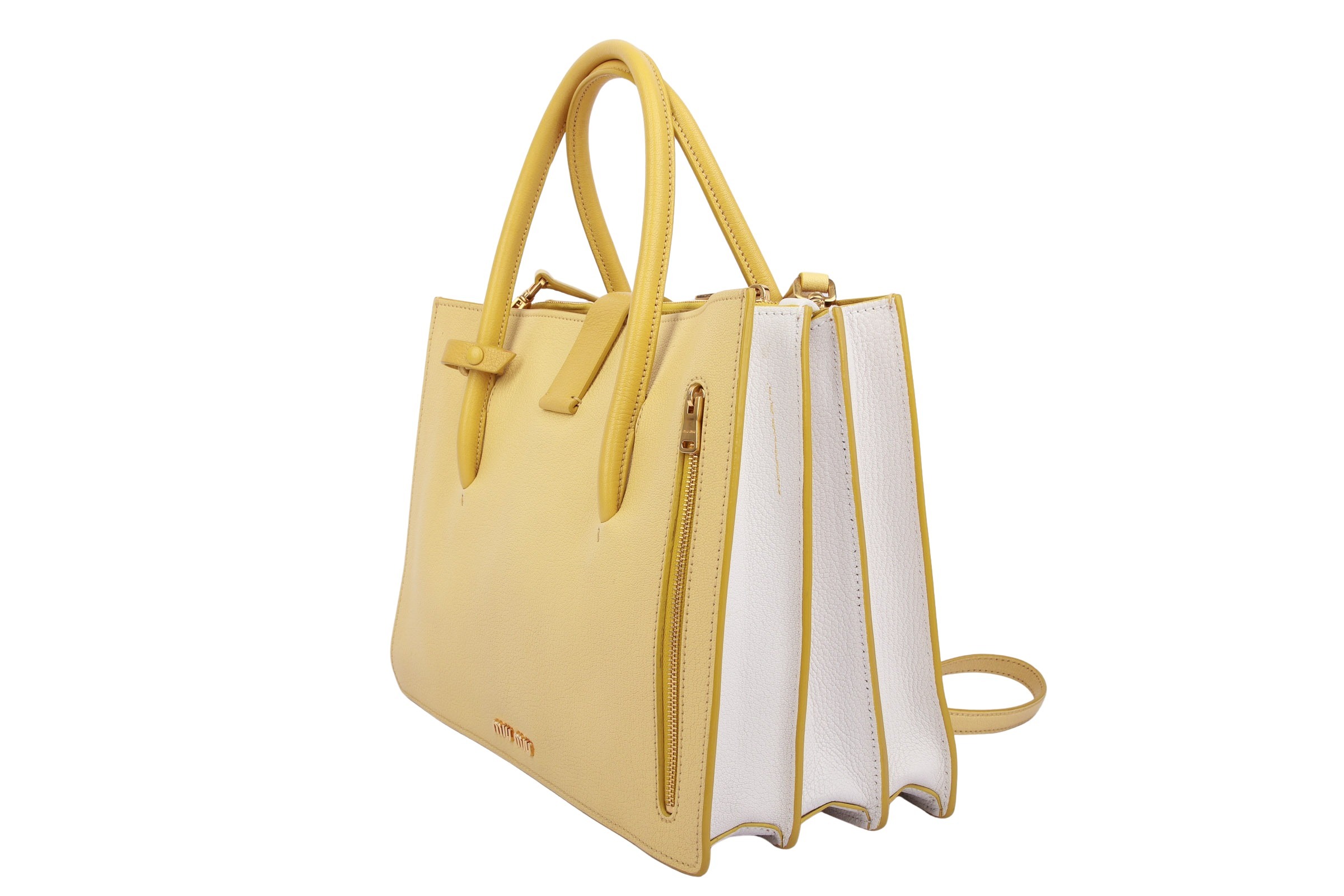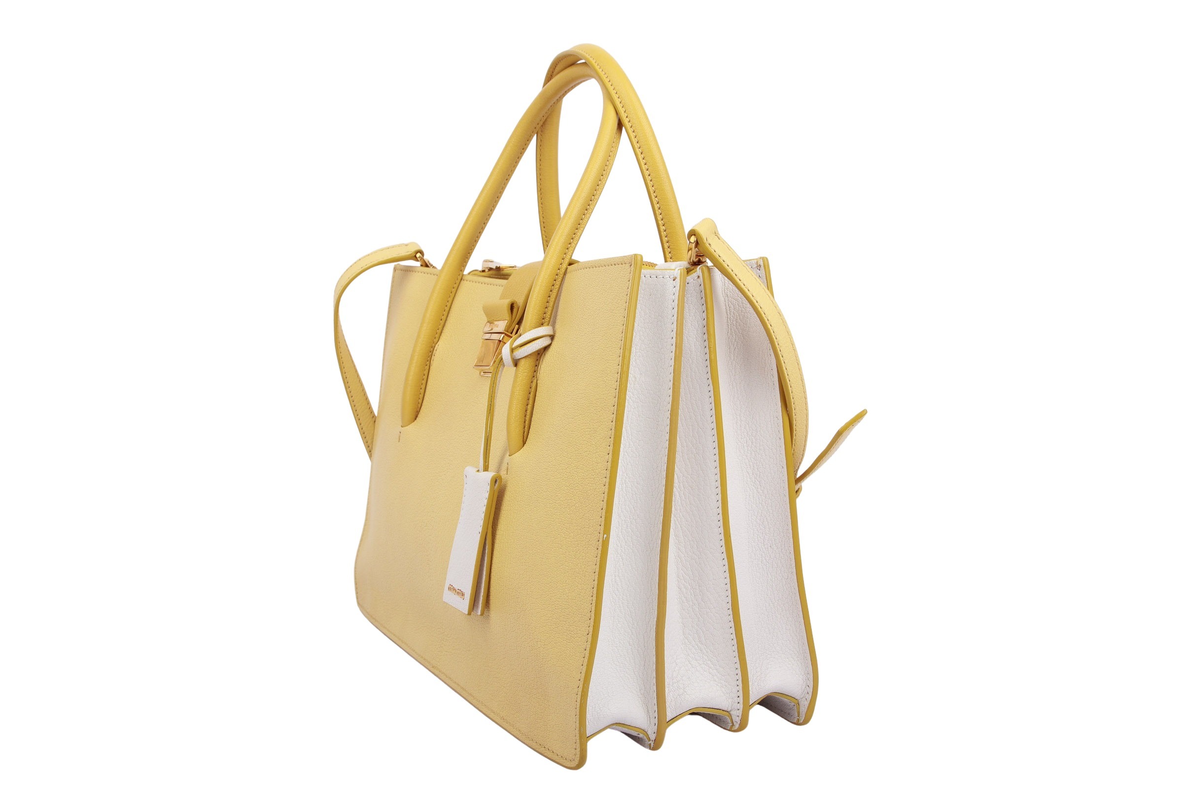 Miu Miu Mustard Leather Medium Madras Tote