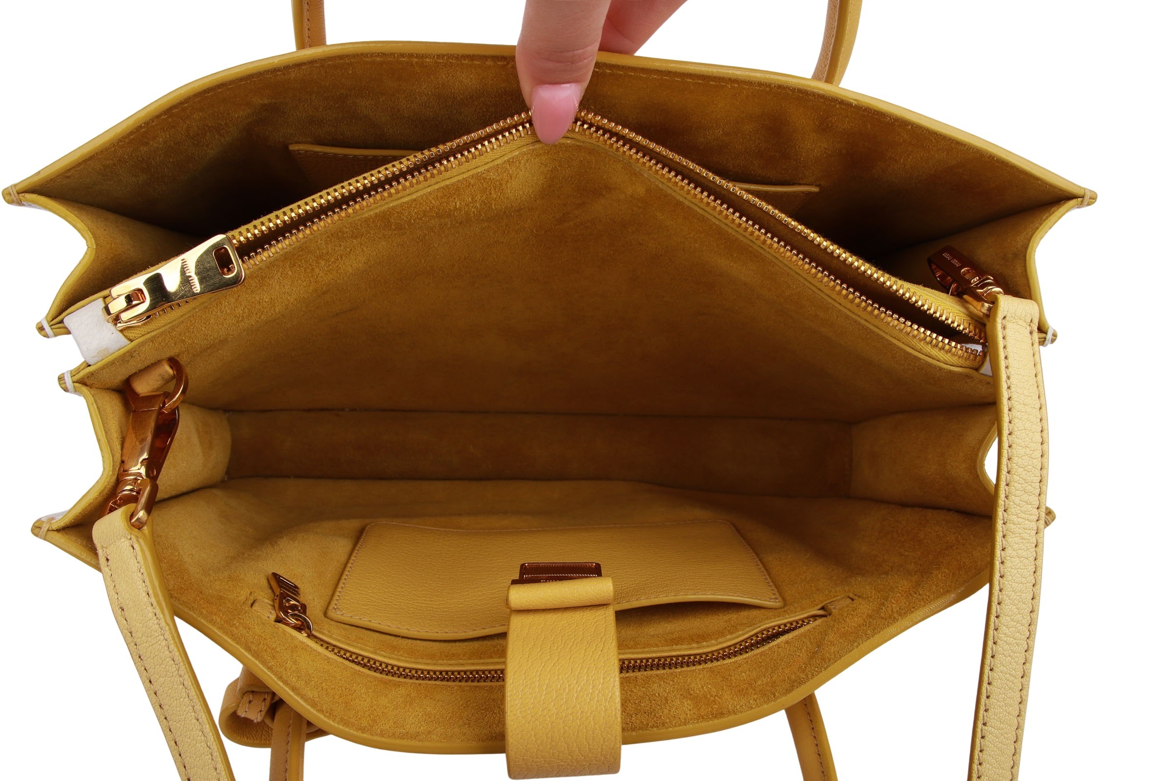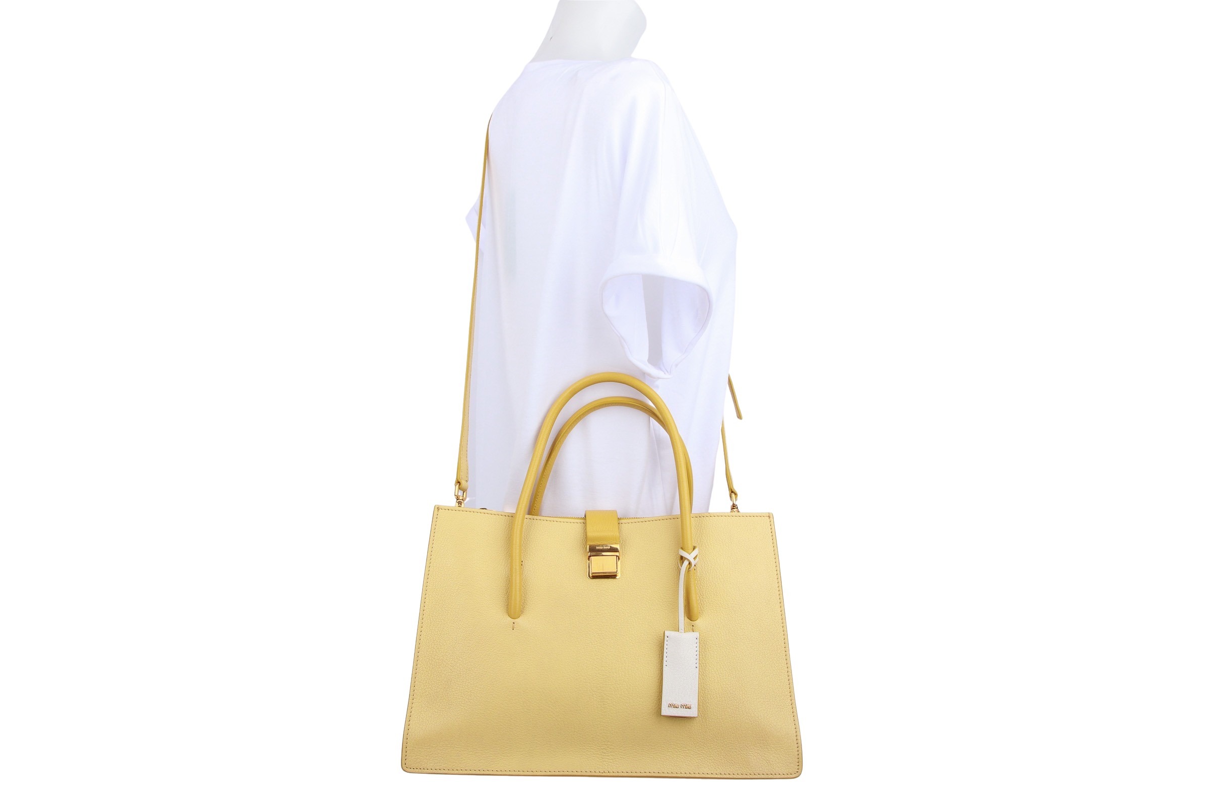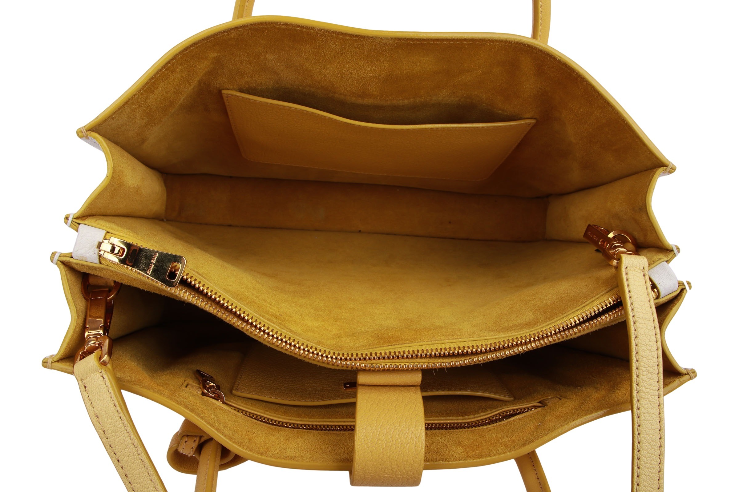 Miu Miu Mustard Leather Medium Madras Tote