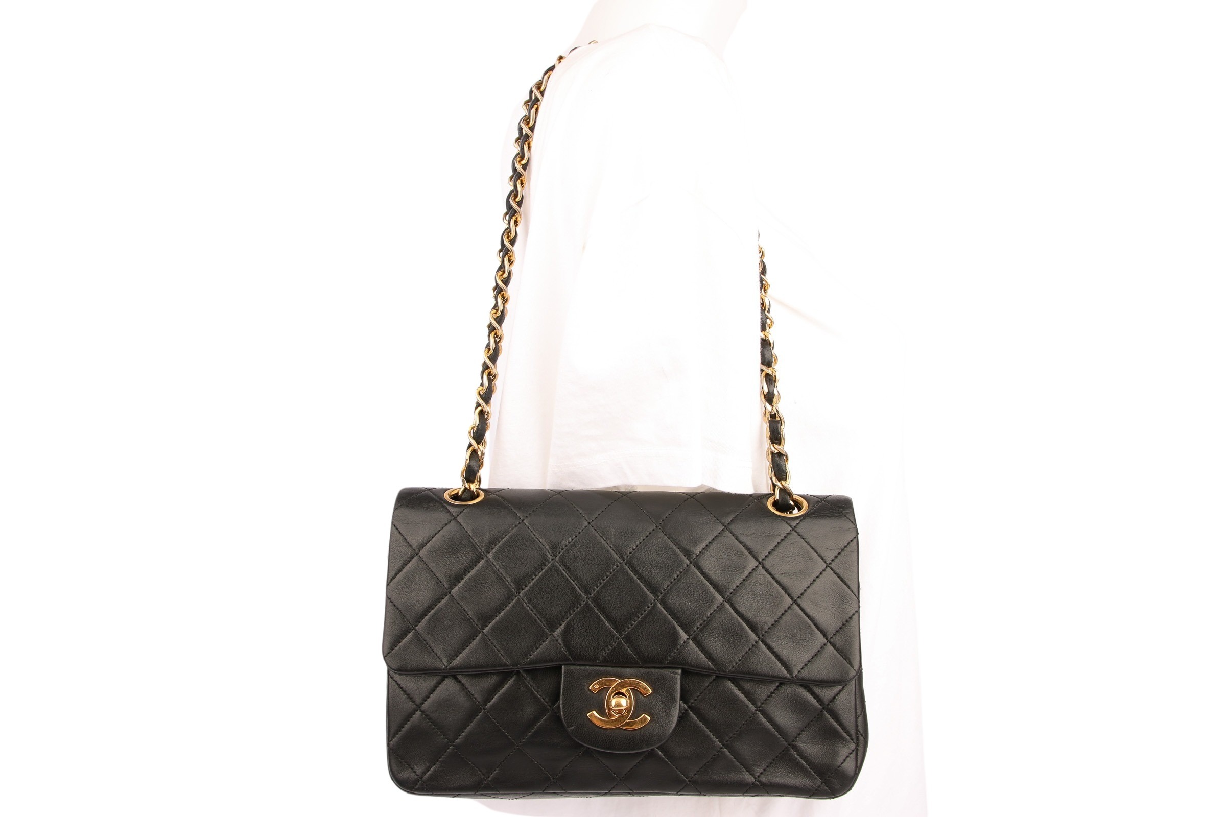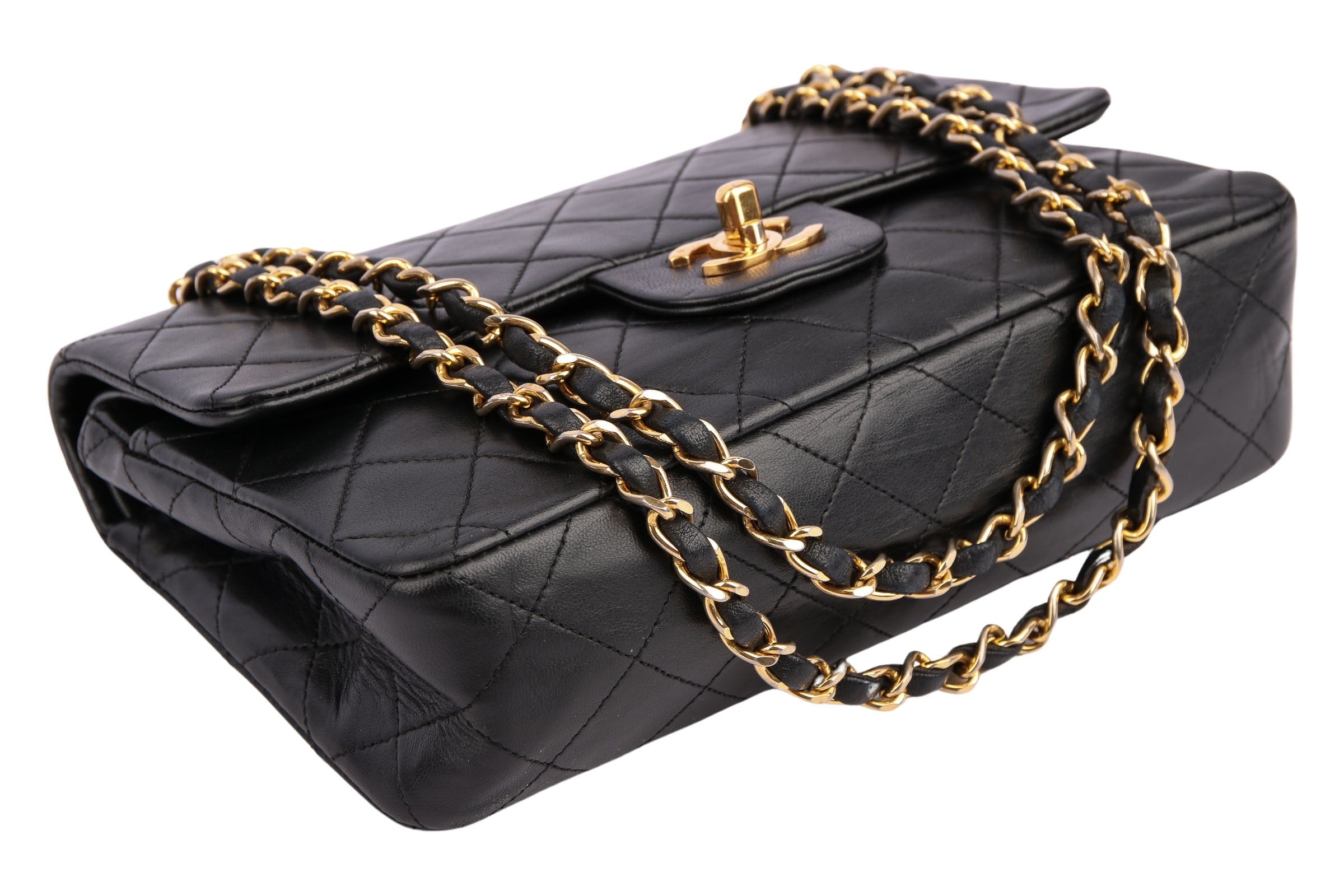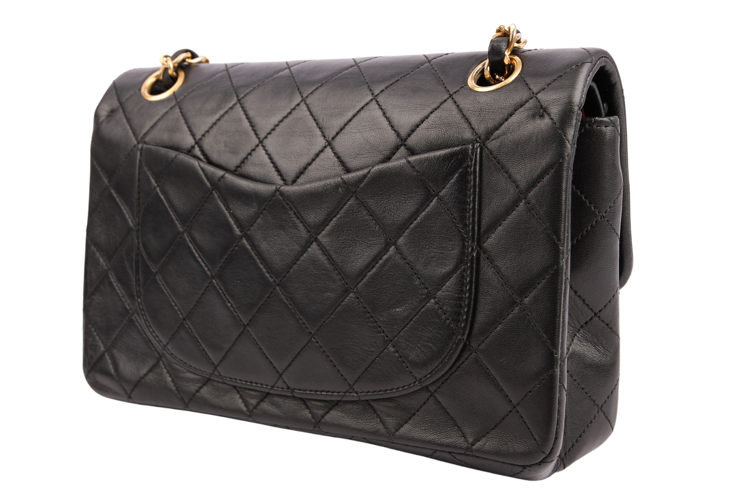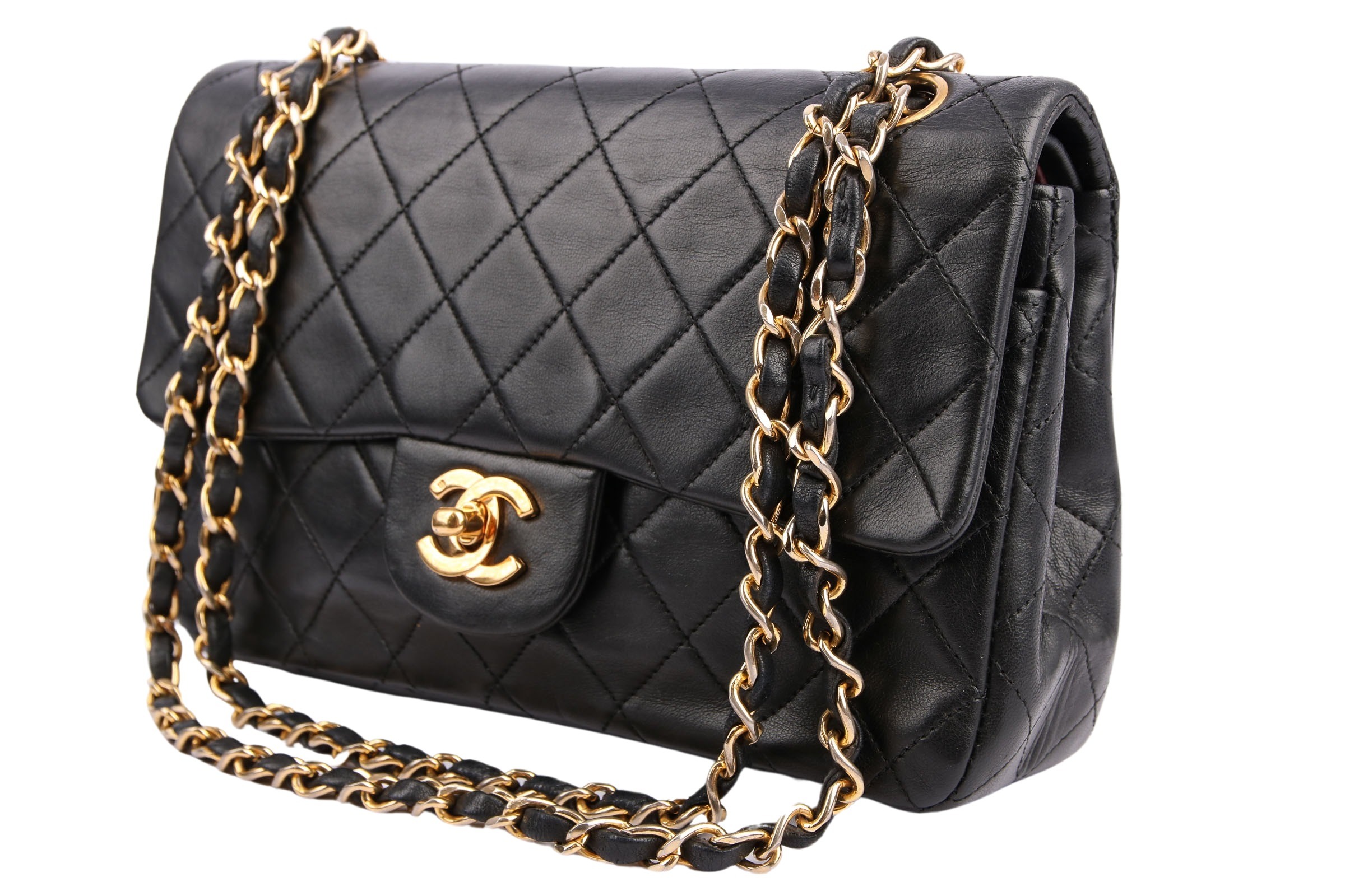 Die Idee dieser Tasche entstand Coco Chanel in den 20er Jahren, die Umsetzung erfolgte jedoch erst 1955. Das klassische Design der rechteckigen Grundform und der kleinen halbmondförmigen Einschubtasche auf der Rückseite - 'Mona Lisas Lächeln' auch genannt, existiert damals so wie heute. Das Rautenmuster durch Steppnähte sowieso die Kettenelemente haben sich im Laufe der Jahre zu einem unwiederruflichen Erkennungsmerkmal Chanels entwickelt und wirken auf den Träger sofort elegant und luxuriös. Eine Ikone in Taschenformat. Das Grunddesign der Tasche von 1955 wurde in schwarz und braun gehalten, mit dem klassischen 'CC'- Schloss und dem dunkelroten Innenleder...ein klassiker mit Geschichte, eine Tasche welche seit mehr als 50 Jahren die Herzen der Fashionistas höher schlägen lässt.