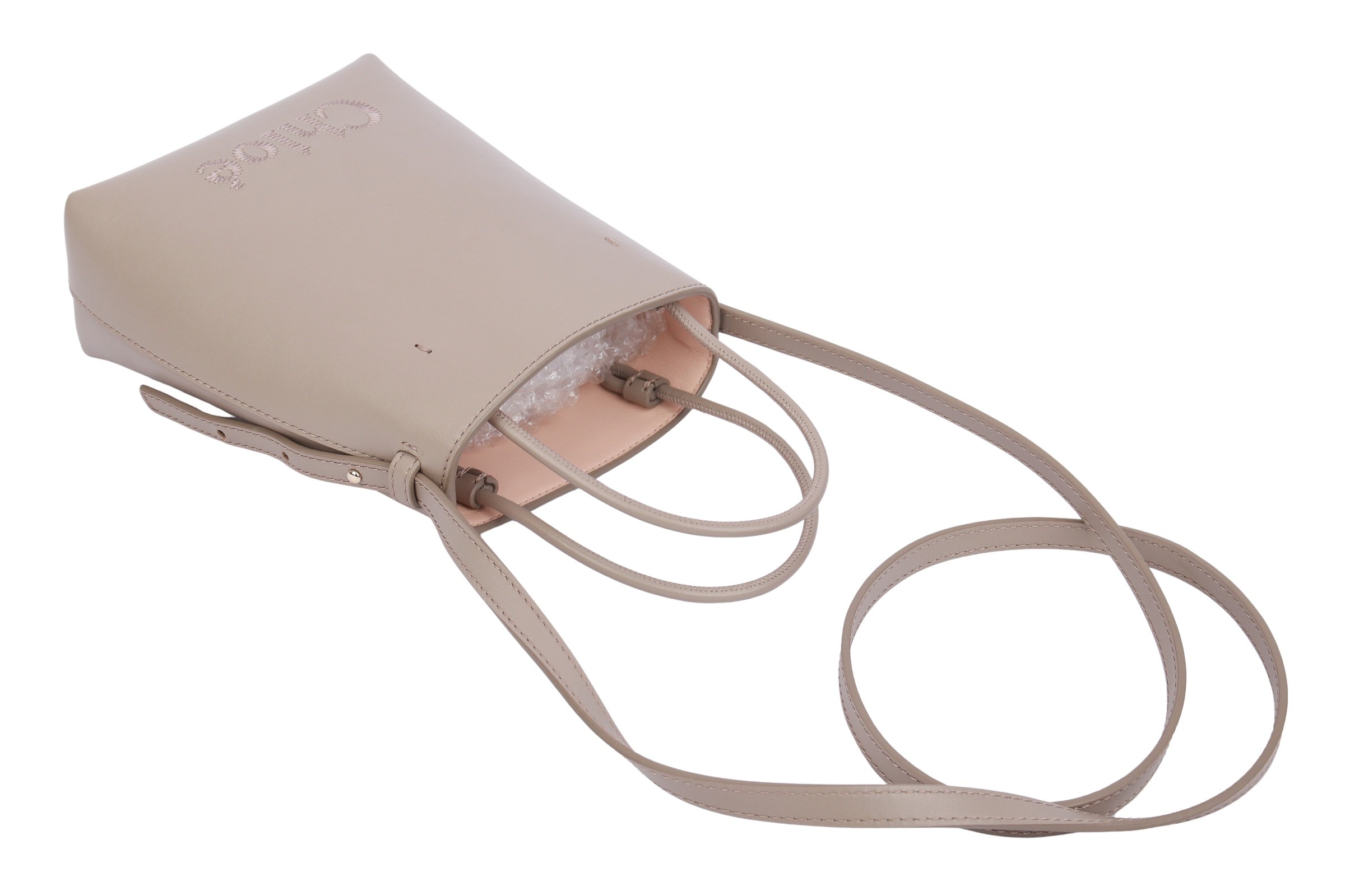 Die Chloé Micro Sense Bag in sanftem Beige vereint zeitlose Eleganz mit moderner Leichtigkeit. Gefertigt aus hochwertigem, fein genarbtem Leder, überzeugt sie mit einer angenehm soften Haptik und einem dezenten Glanz, der ihren luxuriösen Charakter unterstreicht. Ihr minimalistisches Design wird durch silberfarbene Metalldetails und das ikonische Chloé-Logo harmonisch ergänzt.
