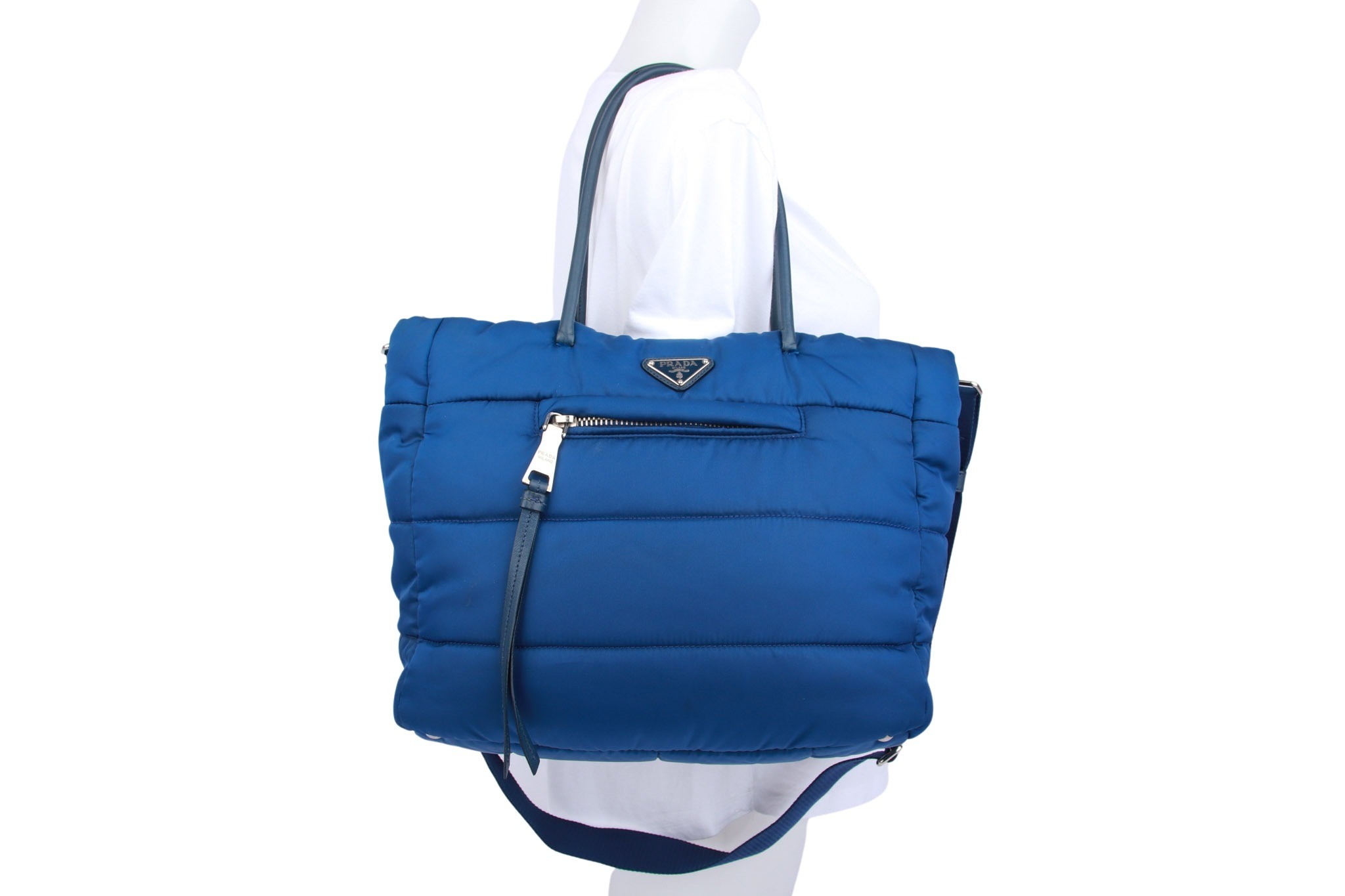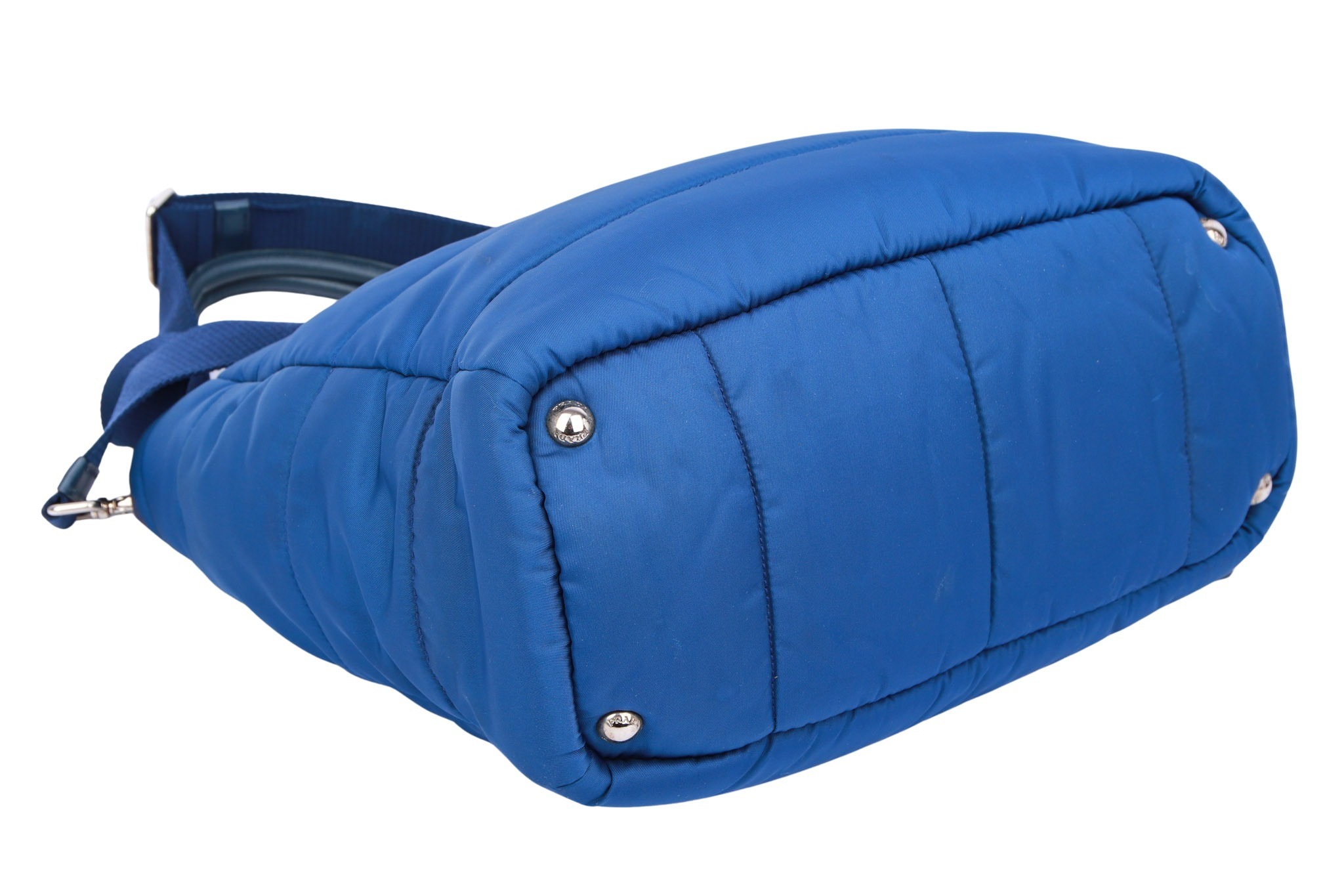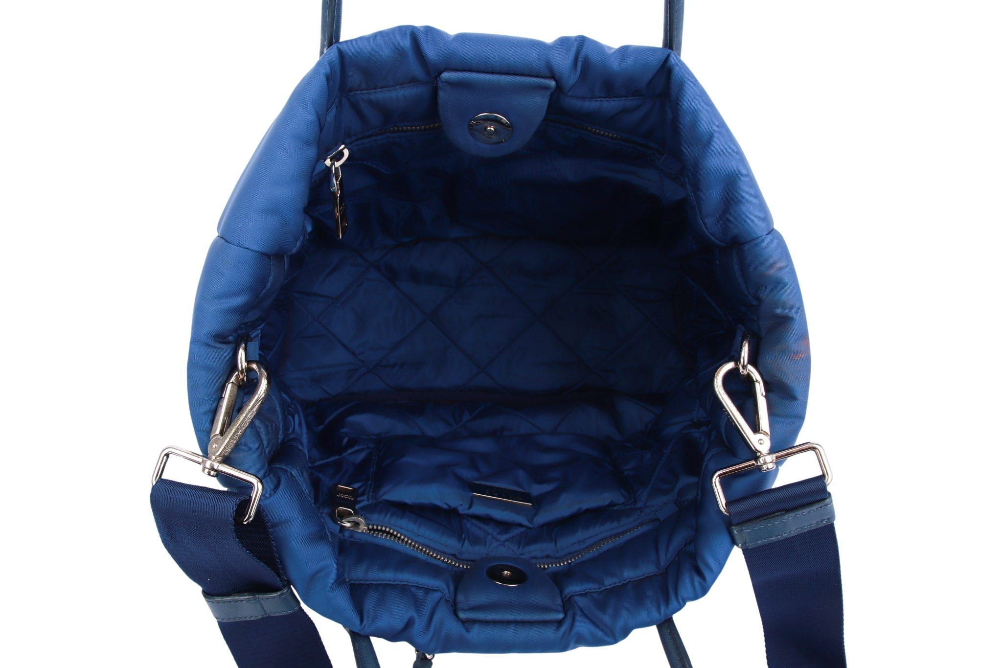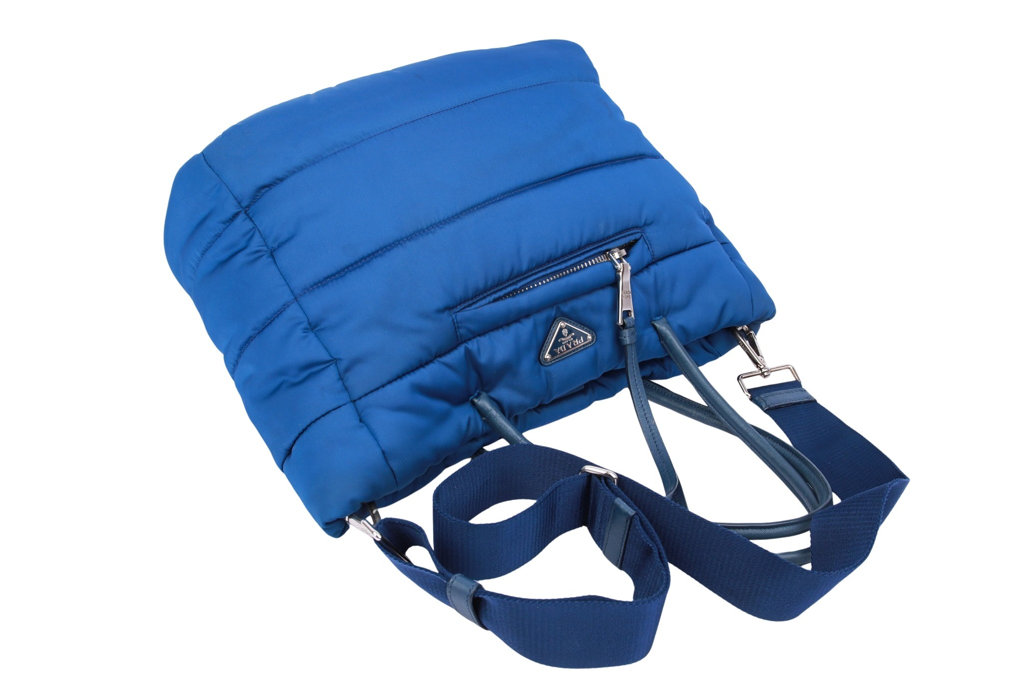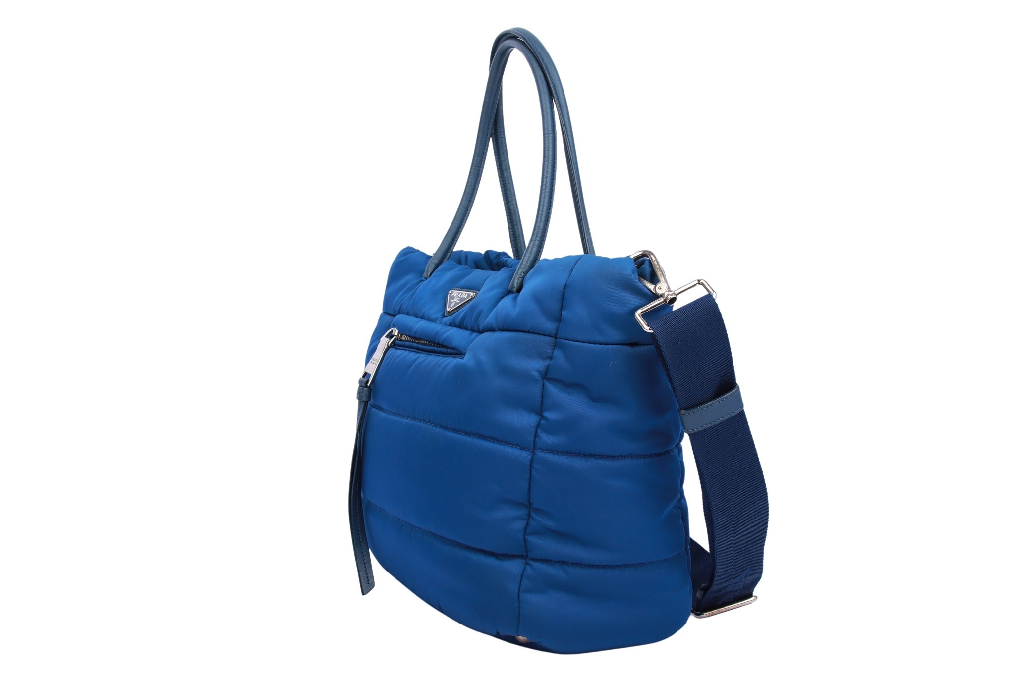 Die Prada Tessuto Bomber ist eine stilvolle Tote-Bag aus dem für Prada typischen, hochwertigen Nylon (Tessuto). Das Material ist leicht, strapazierfähig und erhält durch die gesteppte Verarbeitung einen sportlich-modernen Look. Ergänzt wird das Design durch das metallische Logo-Elemente , die der Tasche einen luxuriösen Akzent verleihen. Das Innere ist mit einem gewebten Futter  ausgestattet und bietet praktische Innenfächer zur Organisation. Die Tasche kombiniert Alltagstauglichkeit mit eleganter, urbaner Ästhetik und lässt sich vielseitig zu lässigen wie auch chicen Outfits tragen.