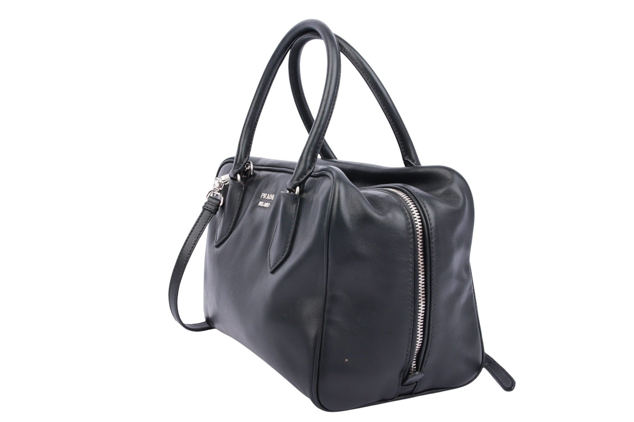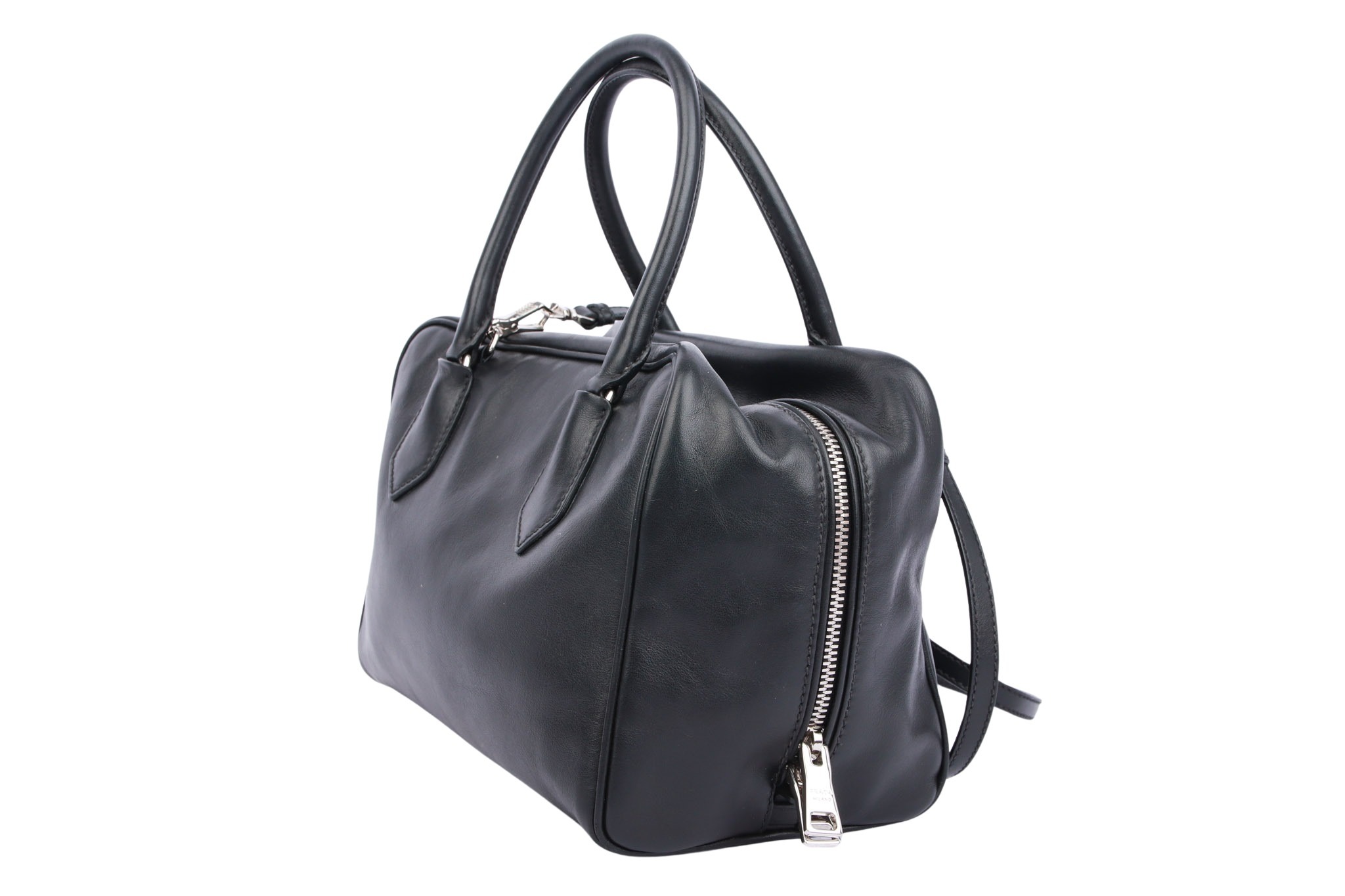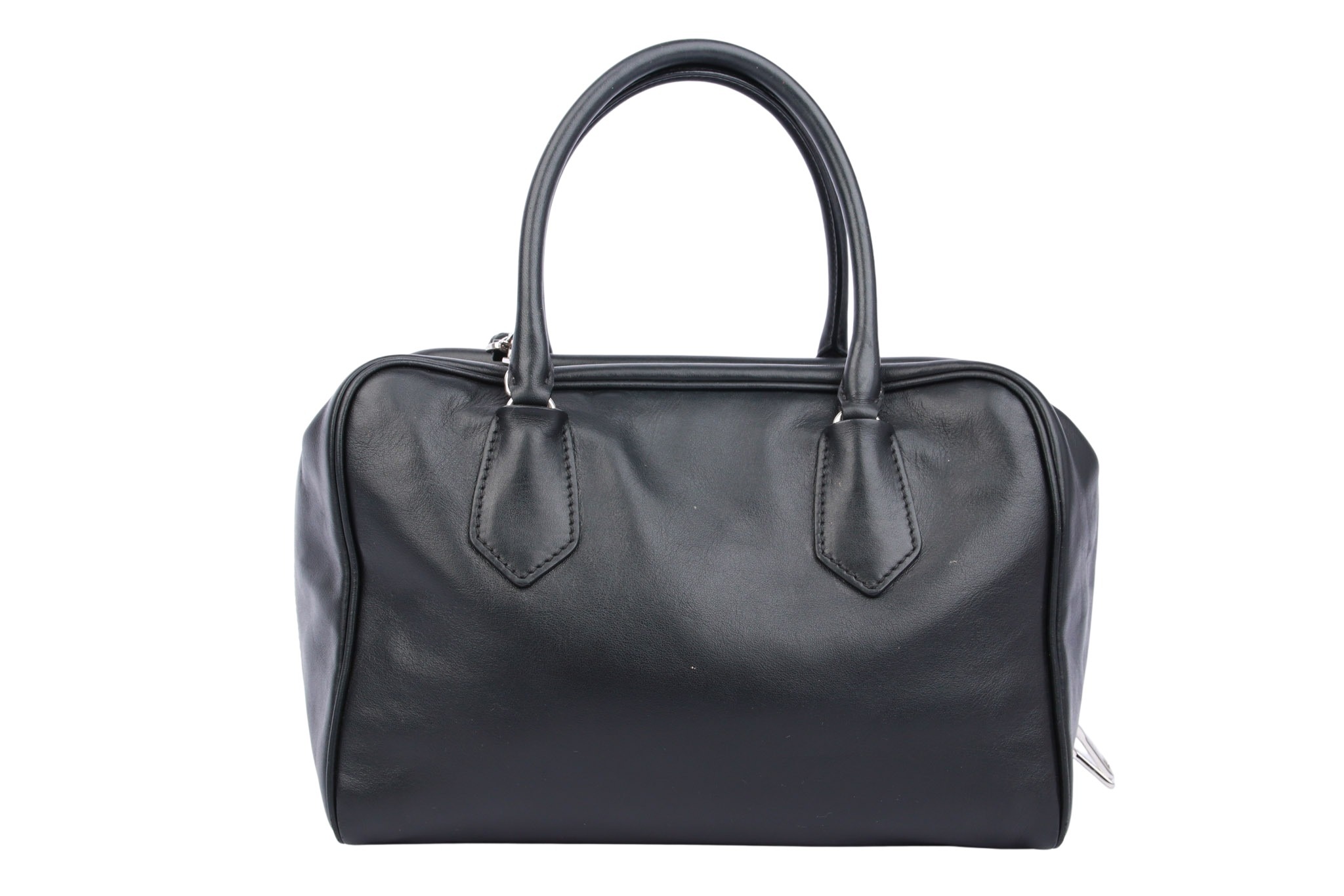 Die Tasche ist in elegantem Schwarz gehalten und weist eine strukturierte Leder‑Außenseite mit dezentem Logo‑Detail auf, was ihr eine ruhige und hochwertige Ausstrahlung verleiht. Sie verfügt über einen verstellbaren Schulterriemen, sodass sie sowohl über der Schulter als auch quer über den Körper getragen werden kann, und bietet damit vielseitige Tragemöglichkeiten. Innen erwartet Sie ein gut organisiertes Fach mit Reißverschluss‑ oder Steckfach sowie ein Innenfutter, das typischerweise in Leder oder hochwertigem Textil ausgeführt ist. Dieses Modell verbindet cleanes Design mit praktischer Alltagstauglichkeit und passt ebenso gut zu Business‑Outfits wie zu entspannten Looks.
