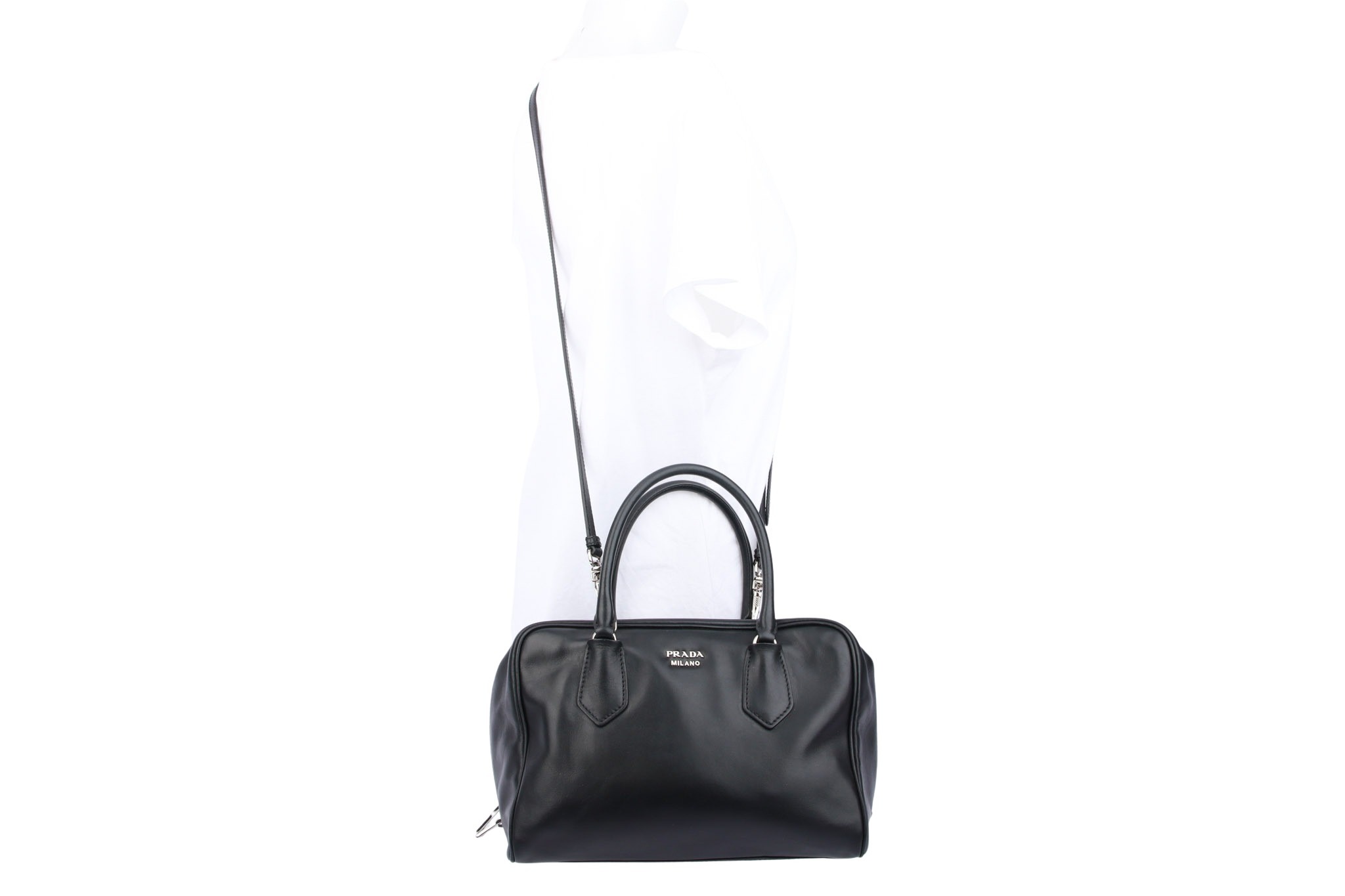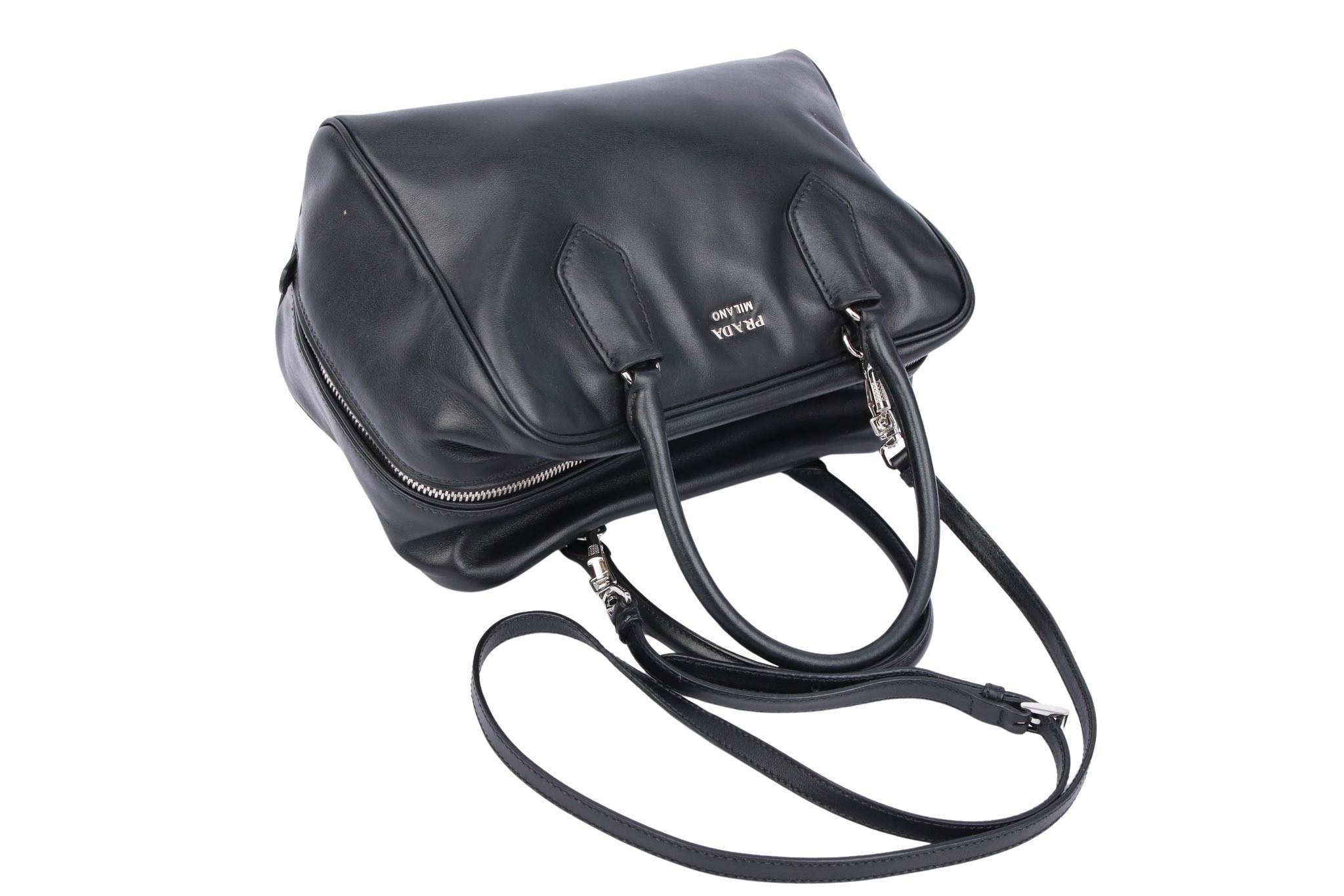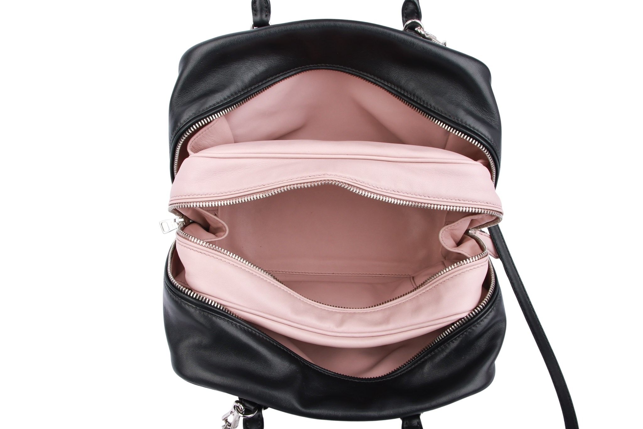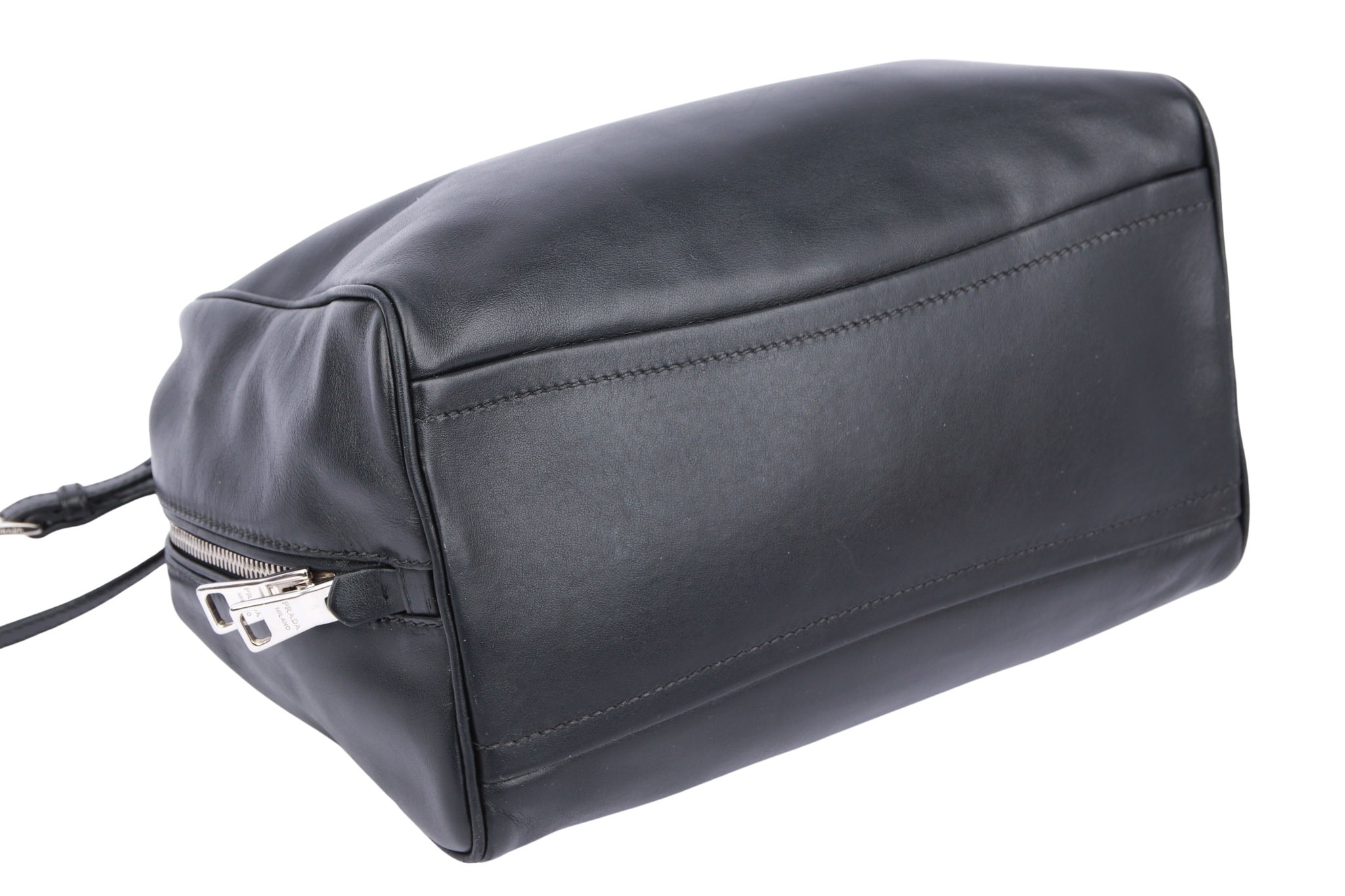 Die Tasche ist in elegantem Schwarz gehalten und weist eine strukturierte Leder‑Außenseite mit dezentem Logo‑Detail auf, was ihr eine ruhige und hochwertige Ausstrahlung verleiht. Sie verfügt über einen verstellbaren Schulterriemen, sodass sie sowohl über der Schulter als auch quer über den Körper getragen werden kann, und bietet damit vielseitige Tragemöglichkeiten. Innen erwartet Sie ein gut organisiertes Fach mit Reißverschluss‑ oder Steckfach sowie ein Innenfutter, das typischerweise in Leder oder hochwertigem Textil ausgeführt ist. Dieses Modell verbindet cleanes Design mit praktischer Alltagstauglichkeit und passt ebenso gut zu Business‑Outfits wie zu entspannten Looks.