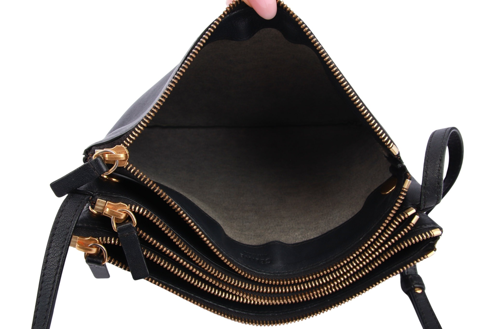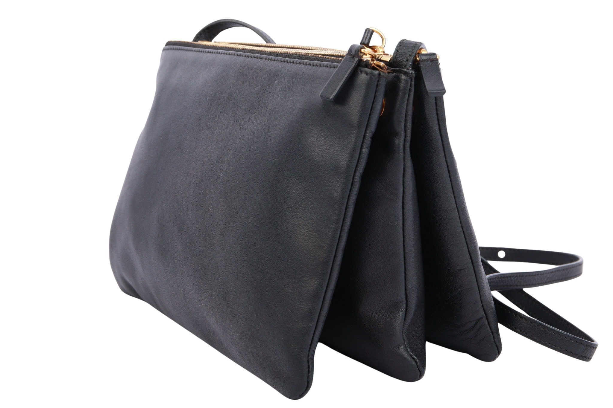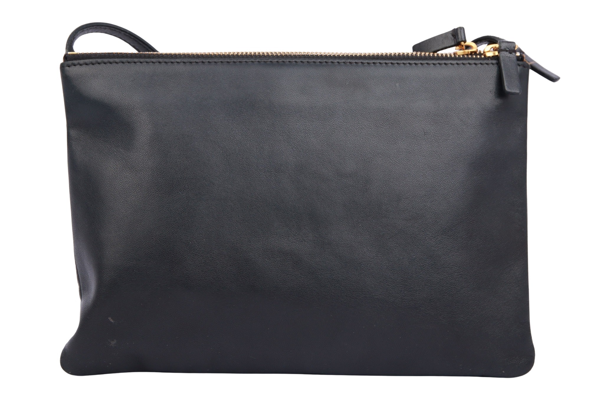 Die Céline Trio Large verkörpert schlichte Eleganz und zeitlose Raffinesse. Hergestellt aus hochwertigem Leder strahlt sie eine unaufdringliche Schönheit aus. Ihre minimalistische Silhouette wird durch die sauberen Linien und das diskrete Céline-Logo auf der Vorderseite betont. Mit ihren drei separaten Taschen bietet sie eine praktische und dennoch stilvolle Möglichkeit, Ihre persönlichen Gegenstände zu organisieren. Der verstellbare Riemen ermöglicht es Ihnen, die Tasche bequem über der Schulter oder Crossbody zu tragen. Die Céline Trio Large ist eine zeitlose Ergänzung für jede Garderobe und verleiht jedem Outfit eine subtile Eleganz.