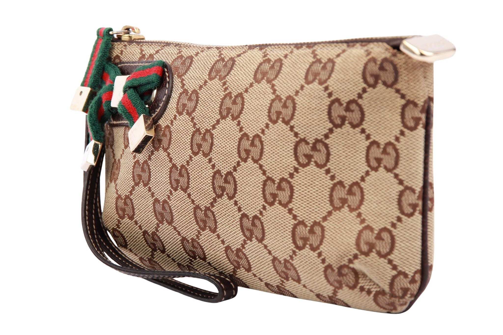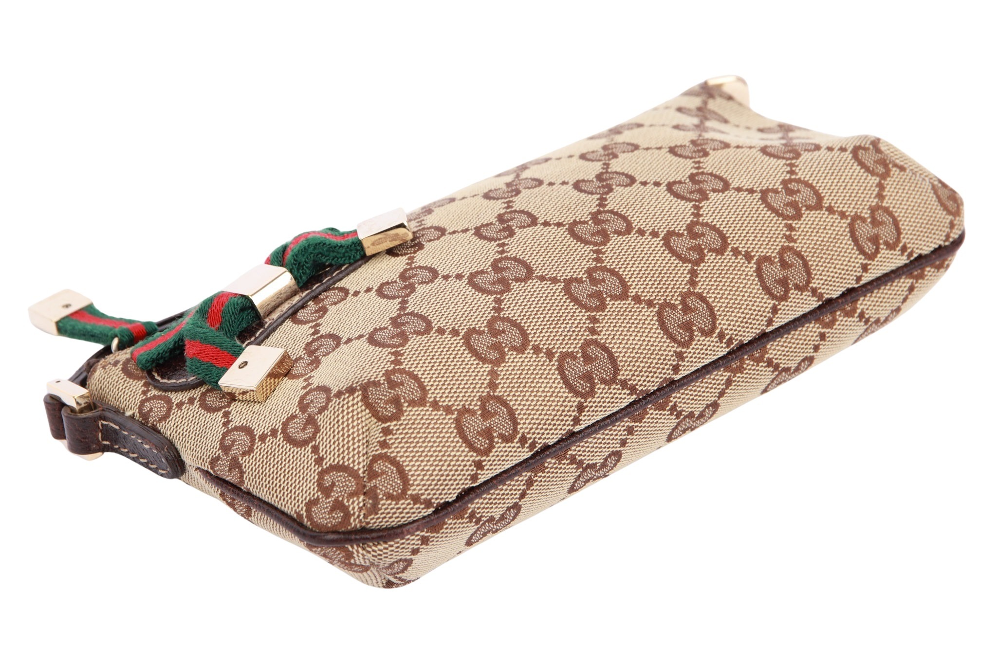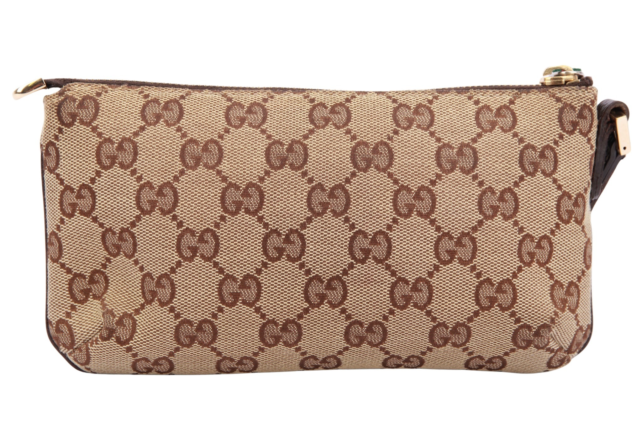 Die Gucci Pochette aus Guccissima Canvas ist ein elegantes Accessoire, das mit ihrem markanten Design und der hochwertigen Verarbeitung besticht. Der elegante Guccissima-Canvas, ein fein geprägtes Monogramm, verleiht der Tasche einen subtilen, aber unverkennbaren Luxus-Look. Diese Pochette bietet ausreichend Platz für die wesentlichen Essentials und lässt sich sowohl als Clutch als auch als Schultertasche tragen.