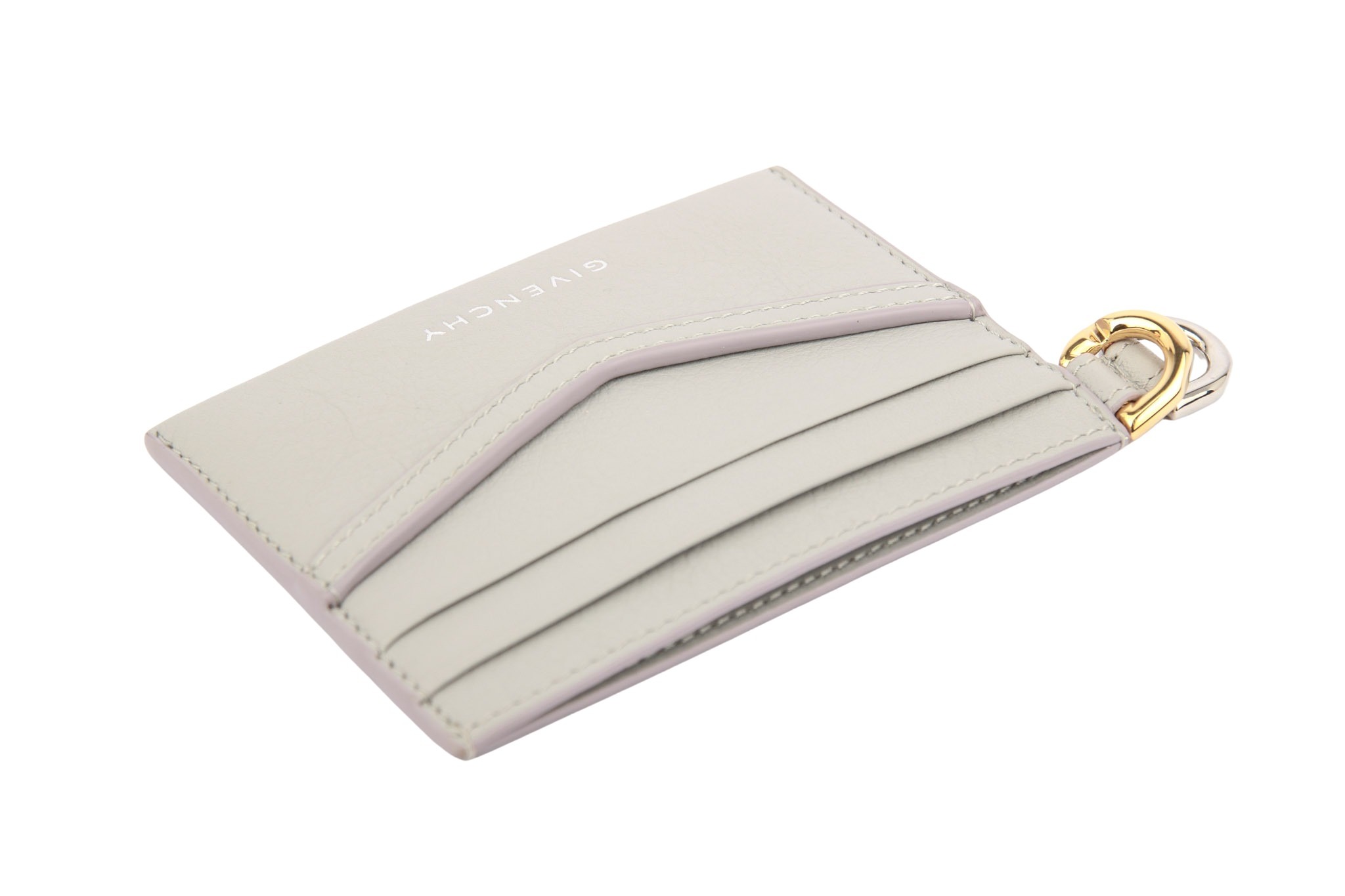 Dieses edle Givenchy Kartenetui aus hochwertigem, grauem Leder vereint modernes Design mit klassischer Eleganz. Die feine Narbung und der kühle Grauton verleihen dem Etui eine stilvolle, zeitlose Ausstrahlung – ideal für den täglichen Gebrauch oder besondere Anlässe.