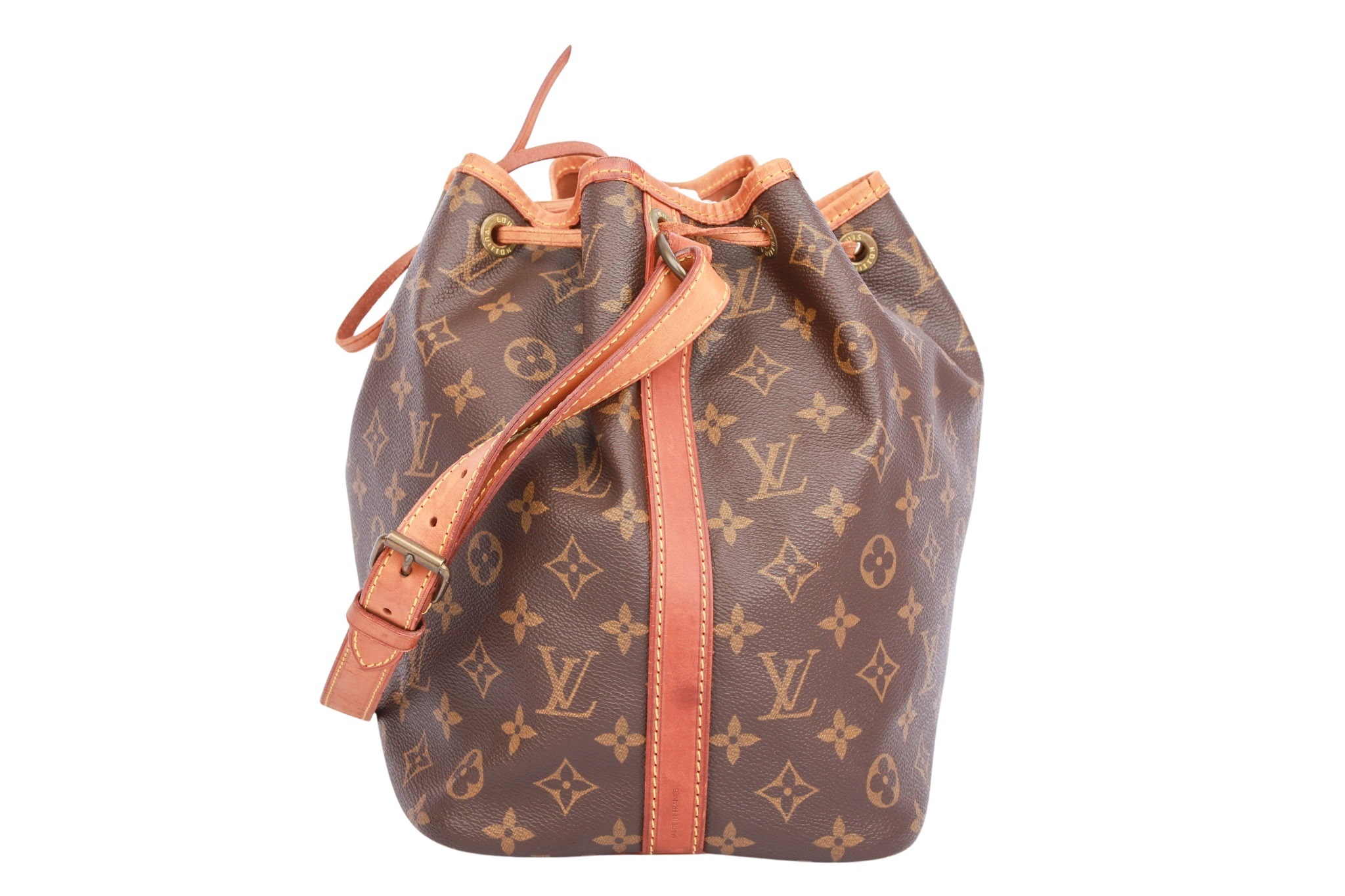 Die Louis  Vuitton Petit  Noé  Monogram  Canvas präsentiert sich in klassischem Monogram-Canvas und interpretiert das legendäre Beuteldesign aus dem Jahr 1932 in einem handlicheren Format.  Sie überzeugt mit einem verstellbaren Schulterriemen und einem Zugbandverschluss, der für einen leger-eleganten Look sorgt.  Die Tasche verbindet Alltagstauglichkeit mit ikonischem Luxus-Stil – sie eignet sich hervorragend für den täglichen Einsatz und stilbewusste Outfits gleichermaßen. Und dank ihrer kompakten Maße bleibt sie praktisch, ohne auf das markante Design der Marke zu verzichten.