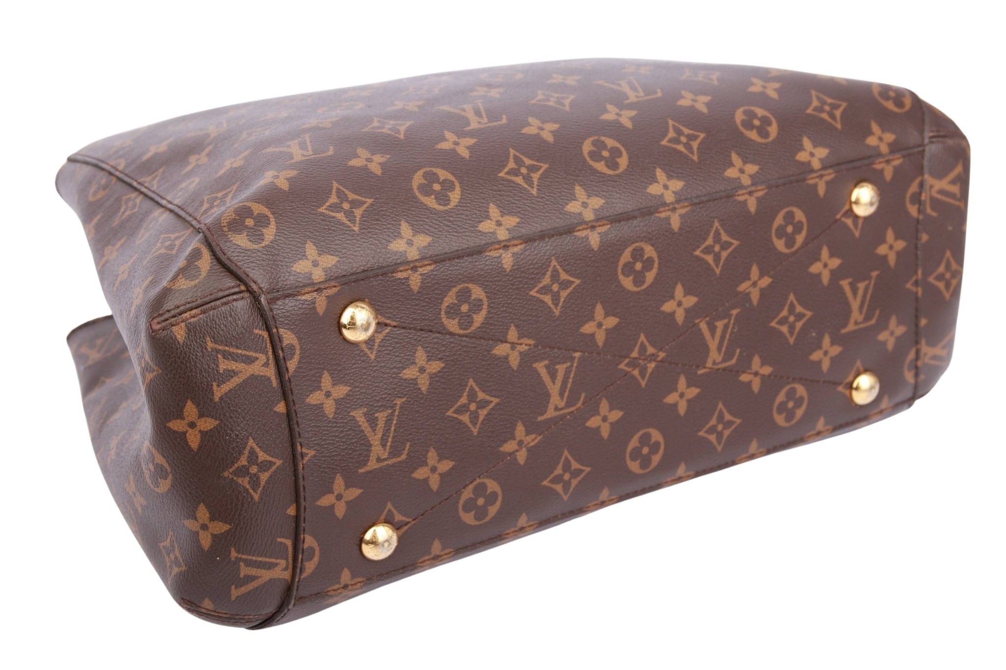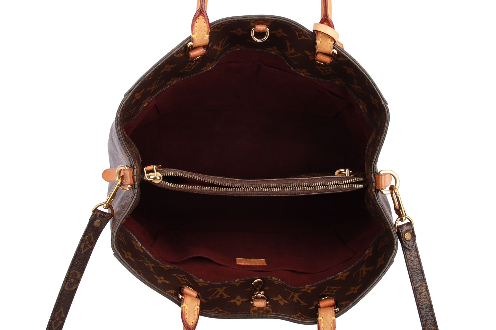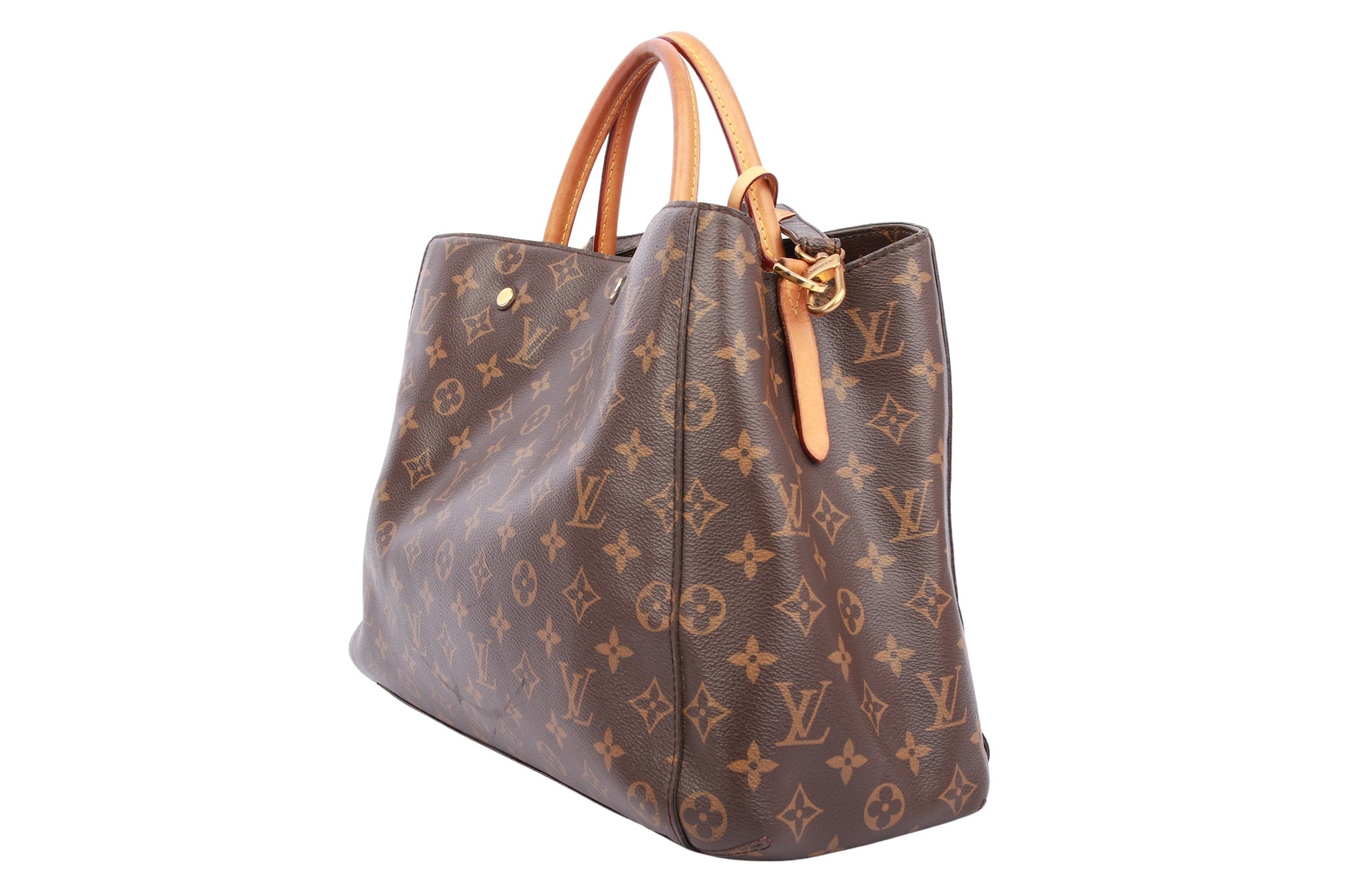 Die Louis Vuitton Montaigne GM Monogram Canvas ist eine luxuriöse Handtasche, die Eleganz und Funktionalität vereint. Gefertigt aus dem ikonischen Monogram Canvas, besticht sie durch ihr zeitloses Design und die hohe Handwerkskunst, die typisch für Louis Vuitton ist. Die Tasche bietet großzügigen Stauraum und ist ideal für den täglichen Gebrauch sowie für besondere Anlässe. Sie verfügt über mehrere Fächer, darunter ein zentrales Reißverschlussfach, und kommt mit zwei Tragegriffen sowie einem abnehmbaren Schulterriemen, was vielseitige Tragemöglichkeiten ermöglicht. Die goldfarbenen Beschläge und das hochwertige Innenfutter aus Mikrofaser unterstreichen die exquisite Verarbeitung und den luxuriösen Charakter der Tasche.