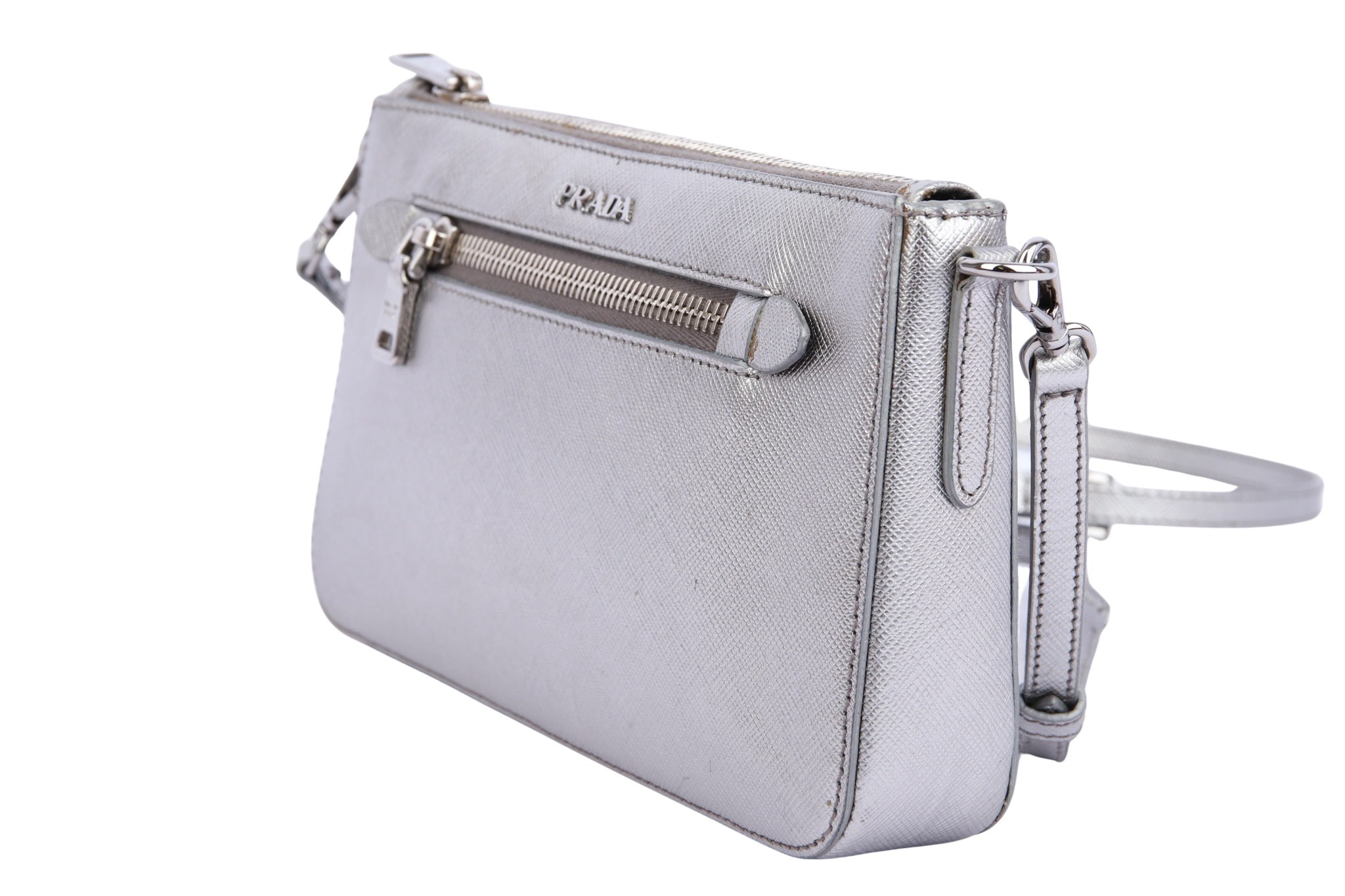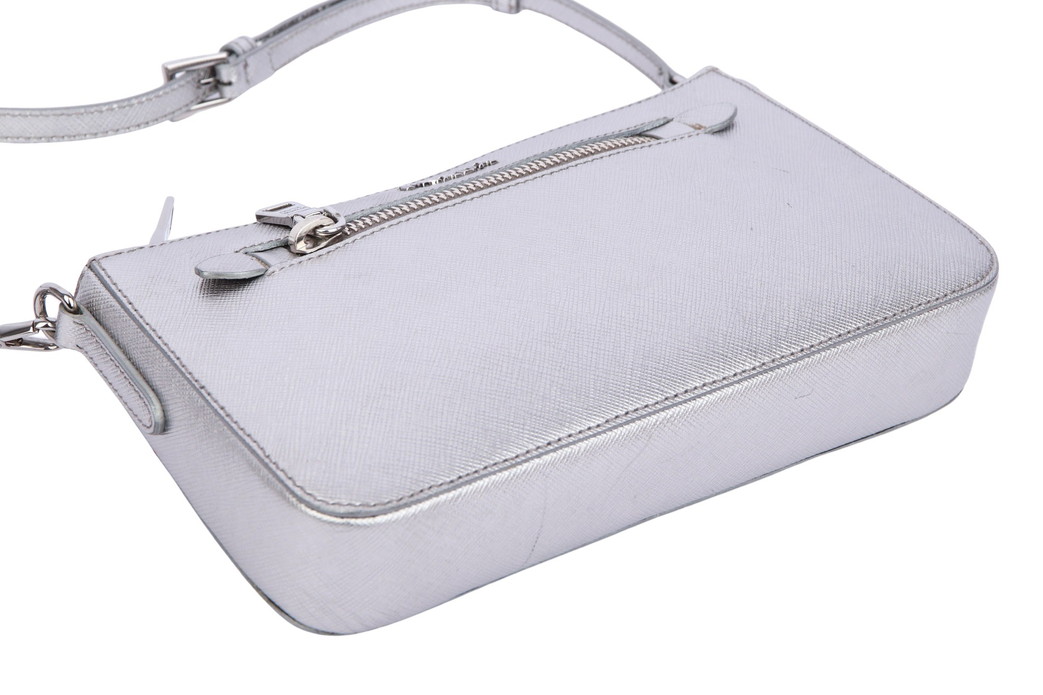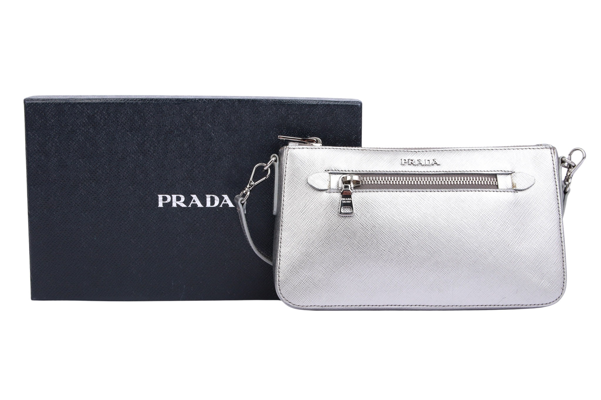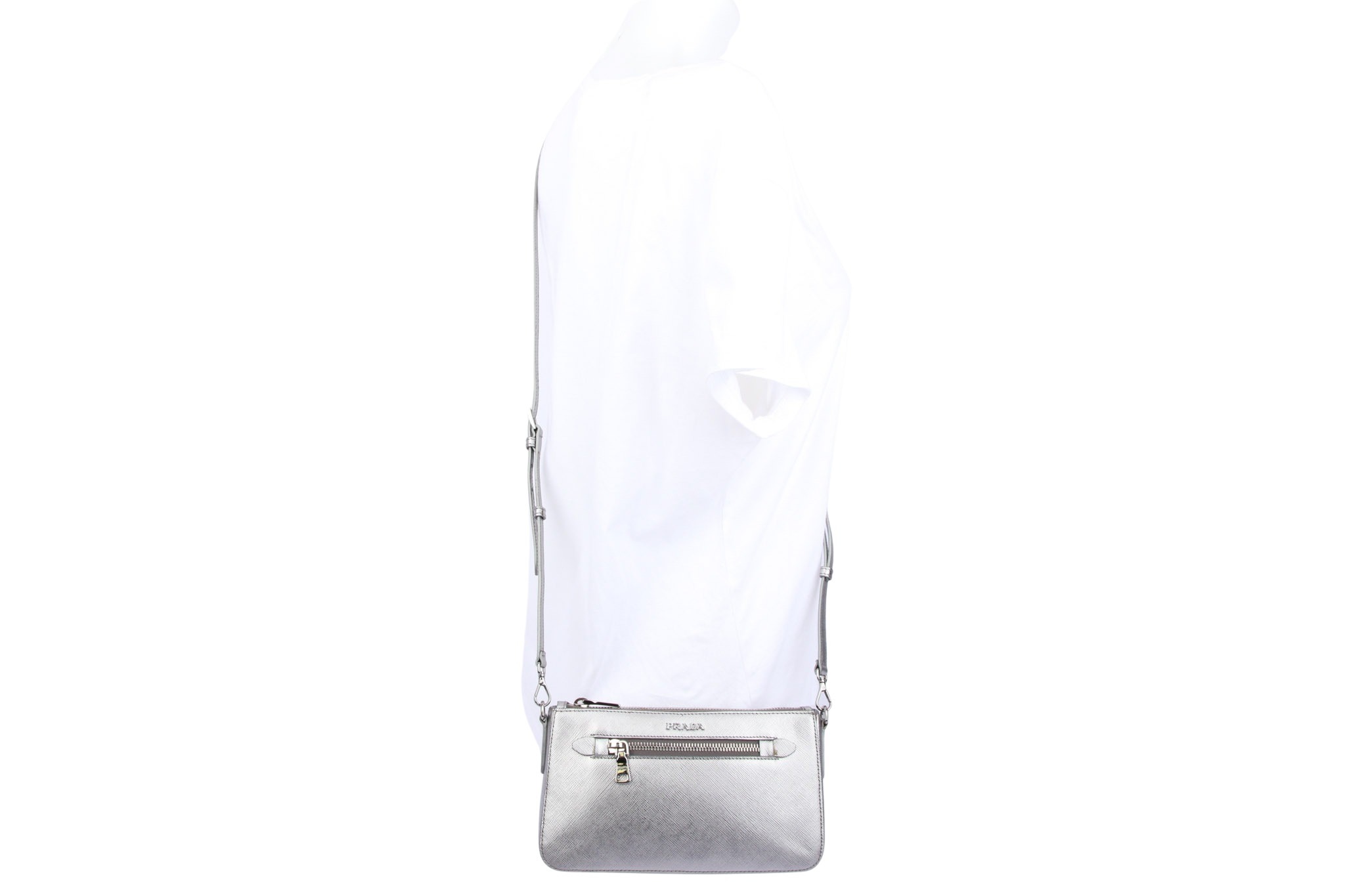 Prada Clutch Metallic Silber Inkl. Schultergurt