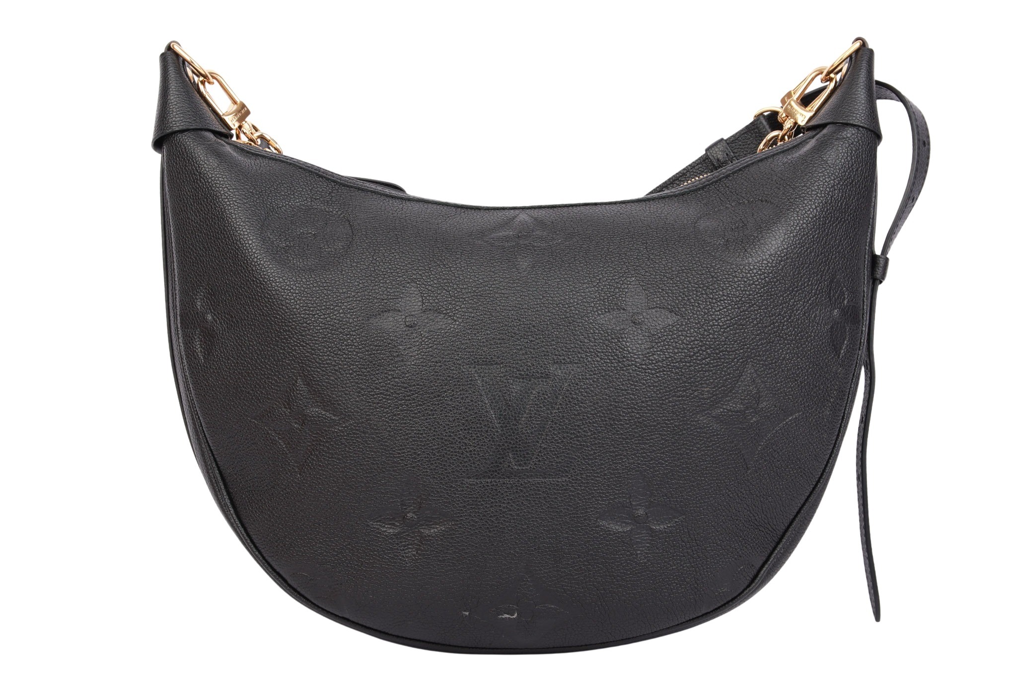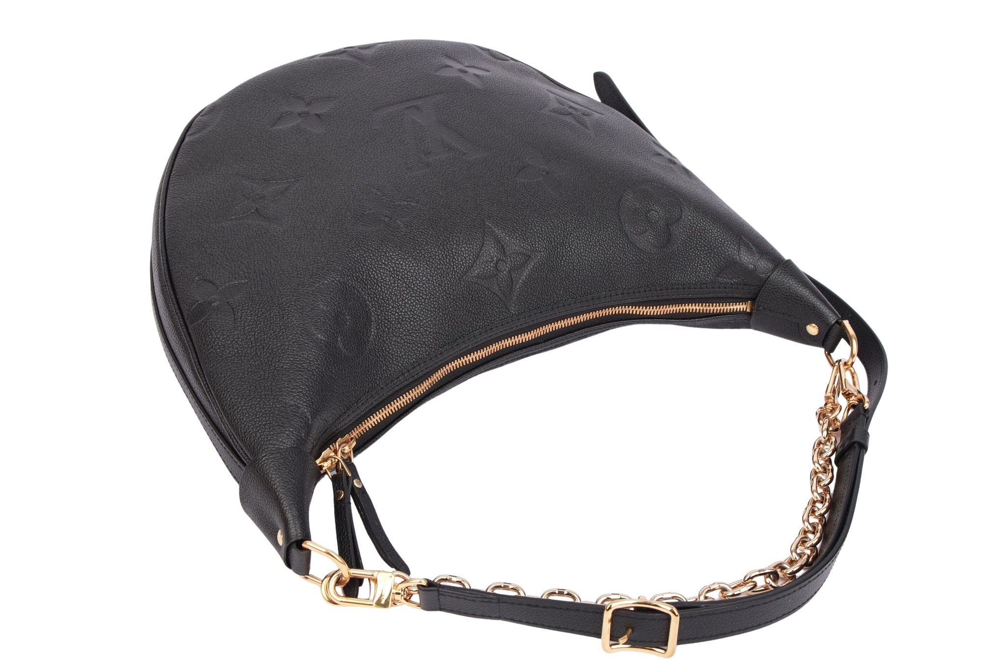 Die Louis Vuitton Loop Hobo aus schwarzem Monogram Empreinte-Leder kombiniert eine moderne Hobo-Silhouette mit luxuriöser, geprägter Optik. Dank verstellbarem Riemen und abnehmbarer Kette lässt sie sich vielseitig tragen. Hochwertige goldfarbene Details und eine praktische Innenaufteilung runden das elegante Design ab.