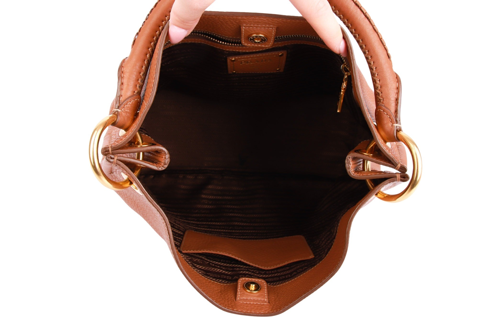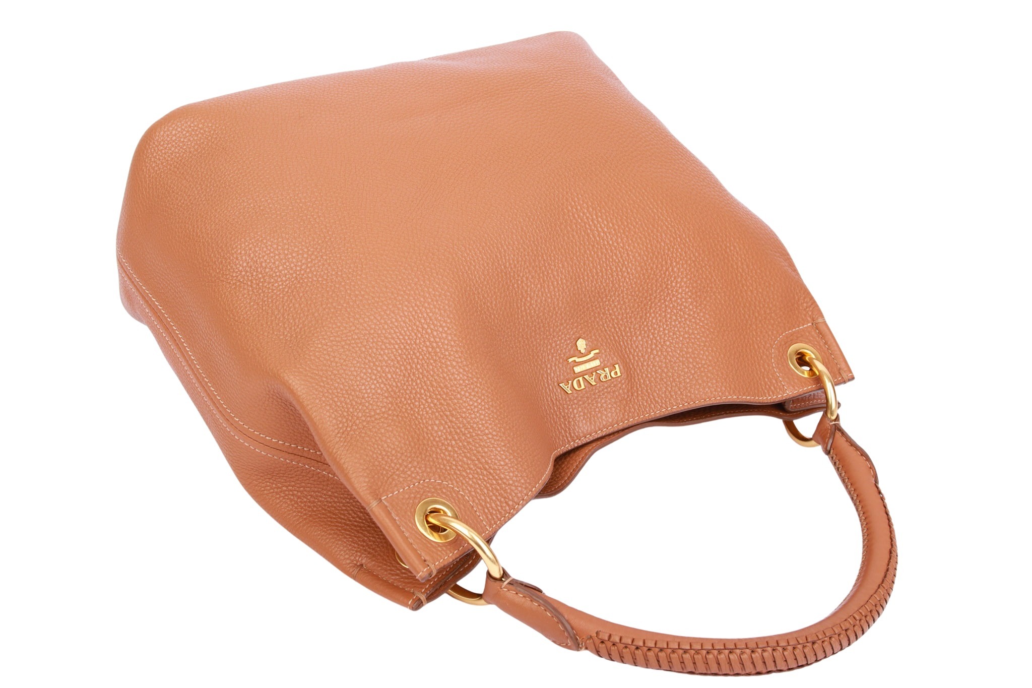 Die Prada Vitello Daino ist eine luxuriöse, zeitlose Ledertasche aus weichem, hochwertigem Kalbsleder. Sie besticht durch elegantes Design, dezente Metallakzente und einen geräumigen Innenraum. Ideal für stilbewusste Alltags- und Business-Looks.