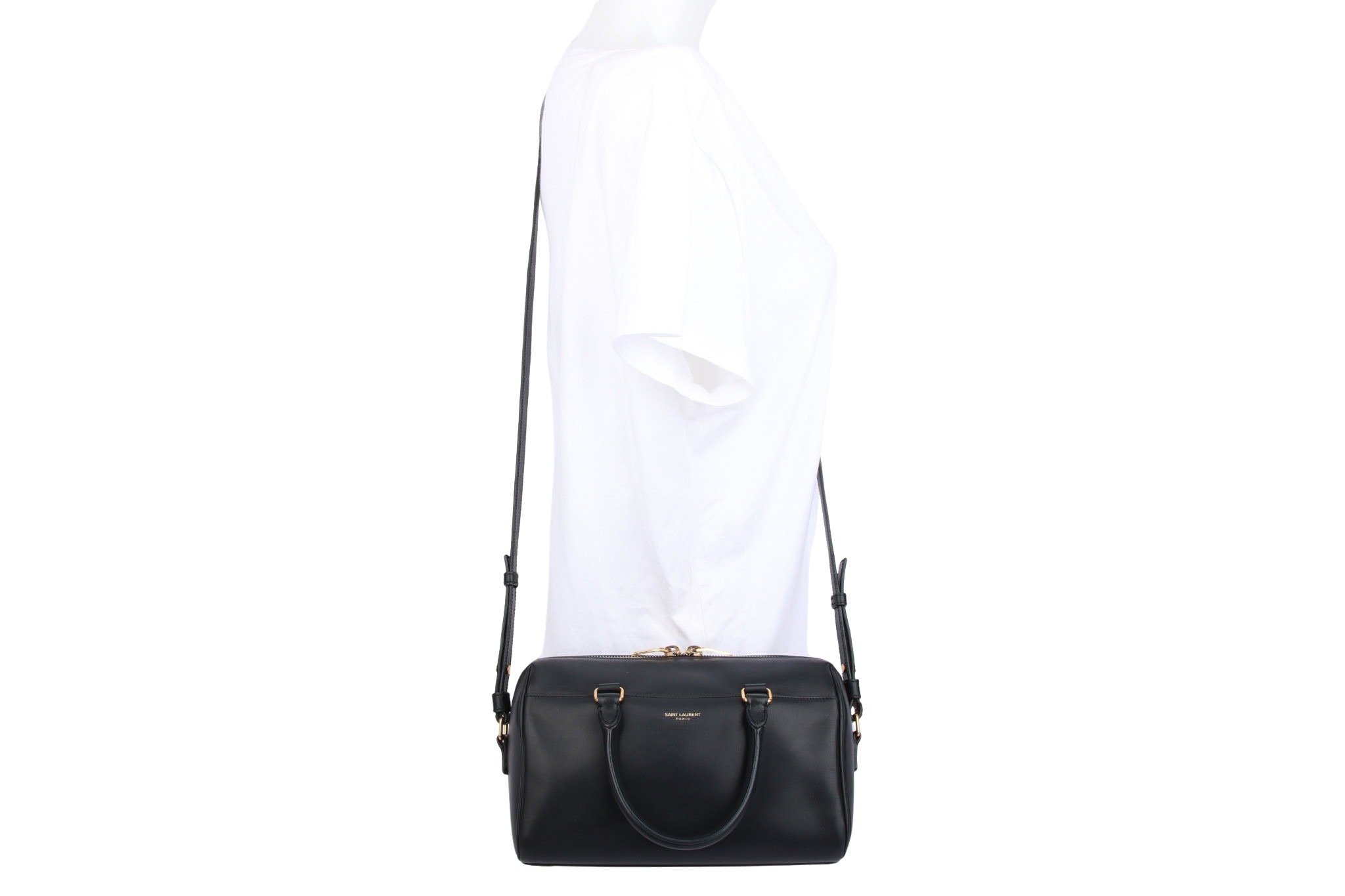 Die Saint Laurent Baby Duffle Bag vereint ikonisches Pariser Design mit zeitloser Eleganz. Gefertigt aus hochwertigem, geschmeidigem Leder präsentiert sich die Tasche in einem schlanken, strukturierten Look, der sowohl luxuriös als auch alltagstauglich ist.