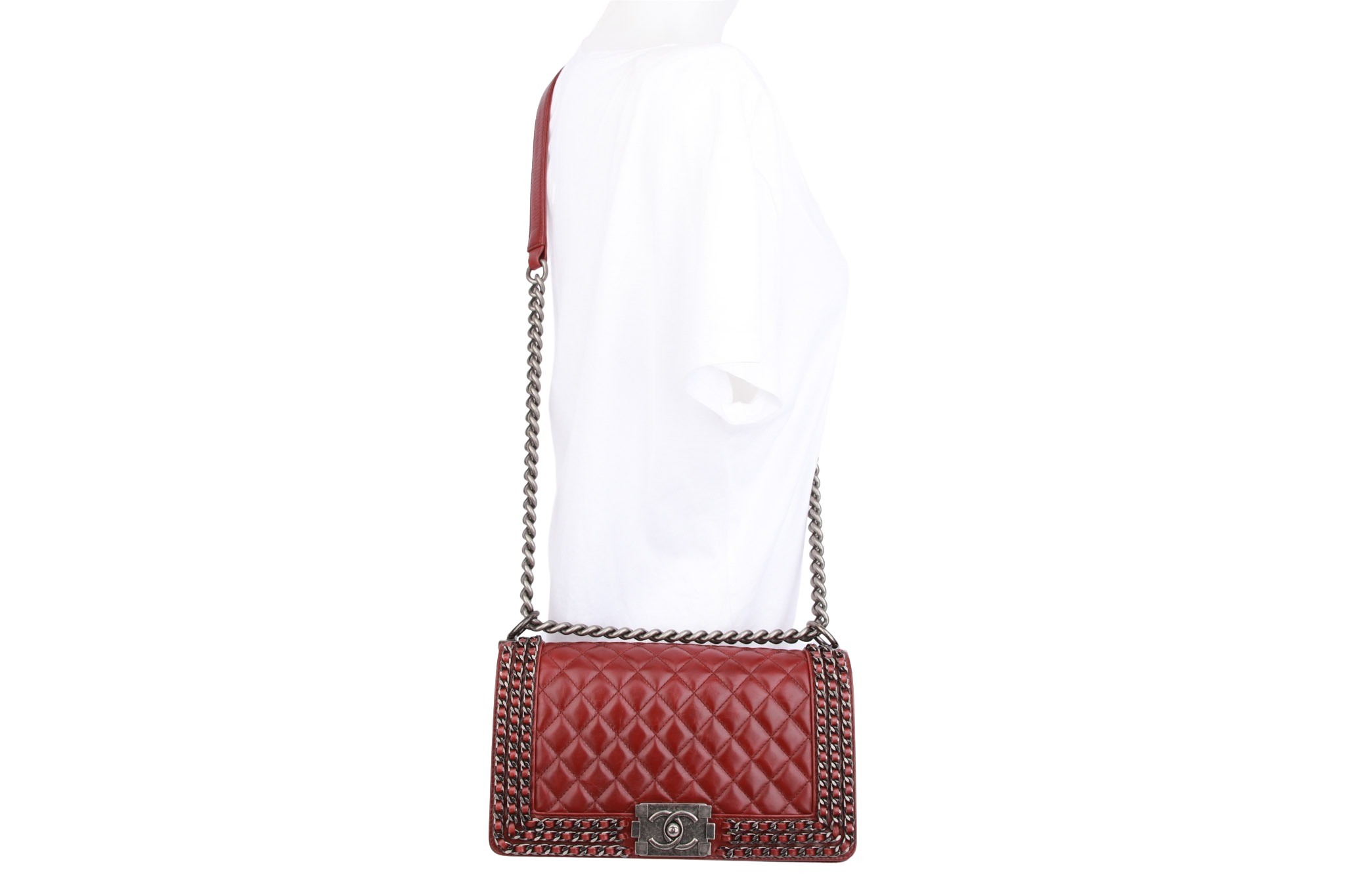 Chanel Boy Bag Old Medium Dunkelrot