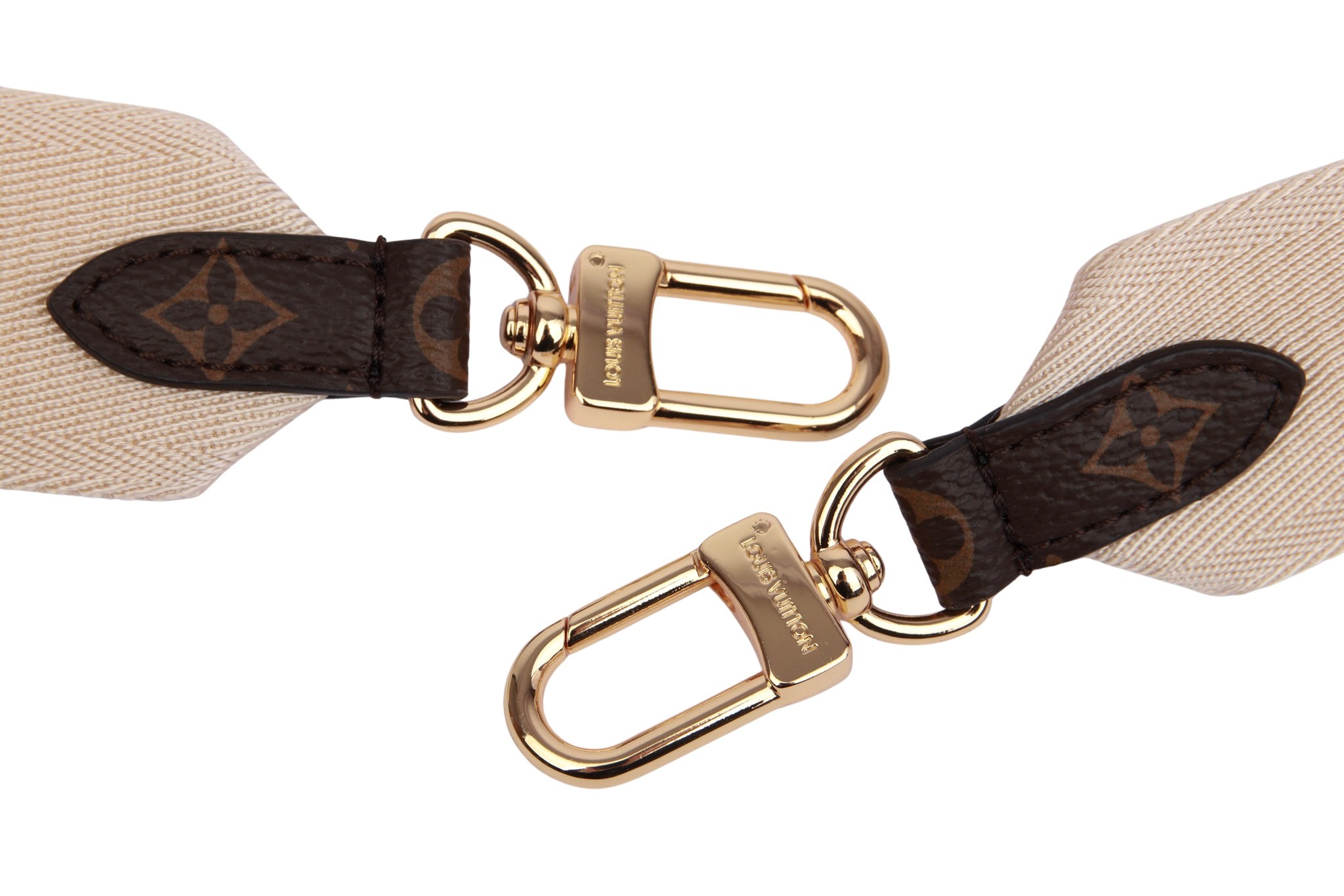 Der Louis Vuitton Schultergurt ist ein stilvolles Accessoire, das Taschen einen individuellen und femininen Touch verleiht. Aus hochwertigem Material gefertigt, bietet der Gurt nicht nur hohen Tragekomfort, sondern auch eine einfache Anpassung der Länge. Mit goldfarbenen Karabinerhaken lässt er sich mühelos an verschiedenen Taschenmodellen befestigen. Ein elegantes und vielseitiges Detail, das jedem Outfit einen Hauch von Farbe und Luxus verleiht.