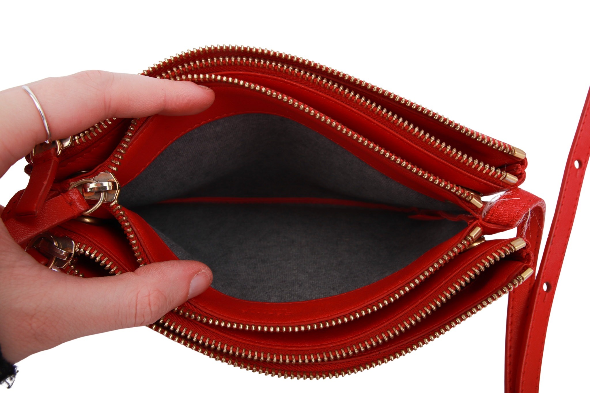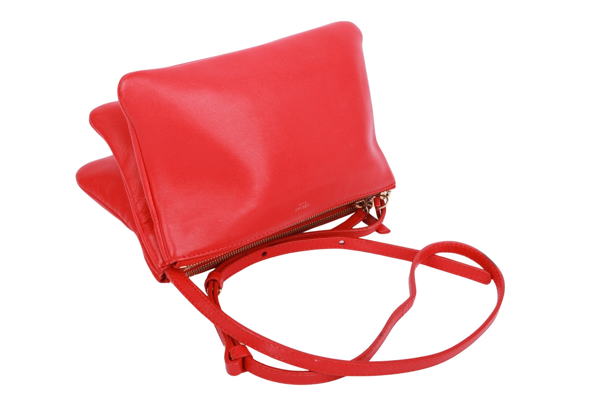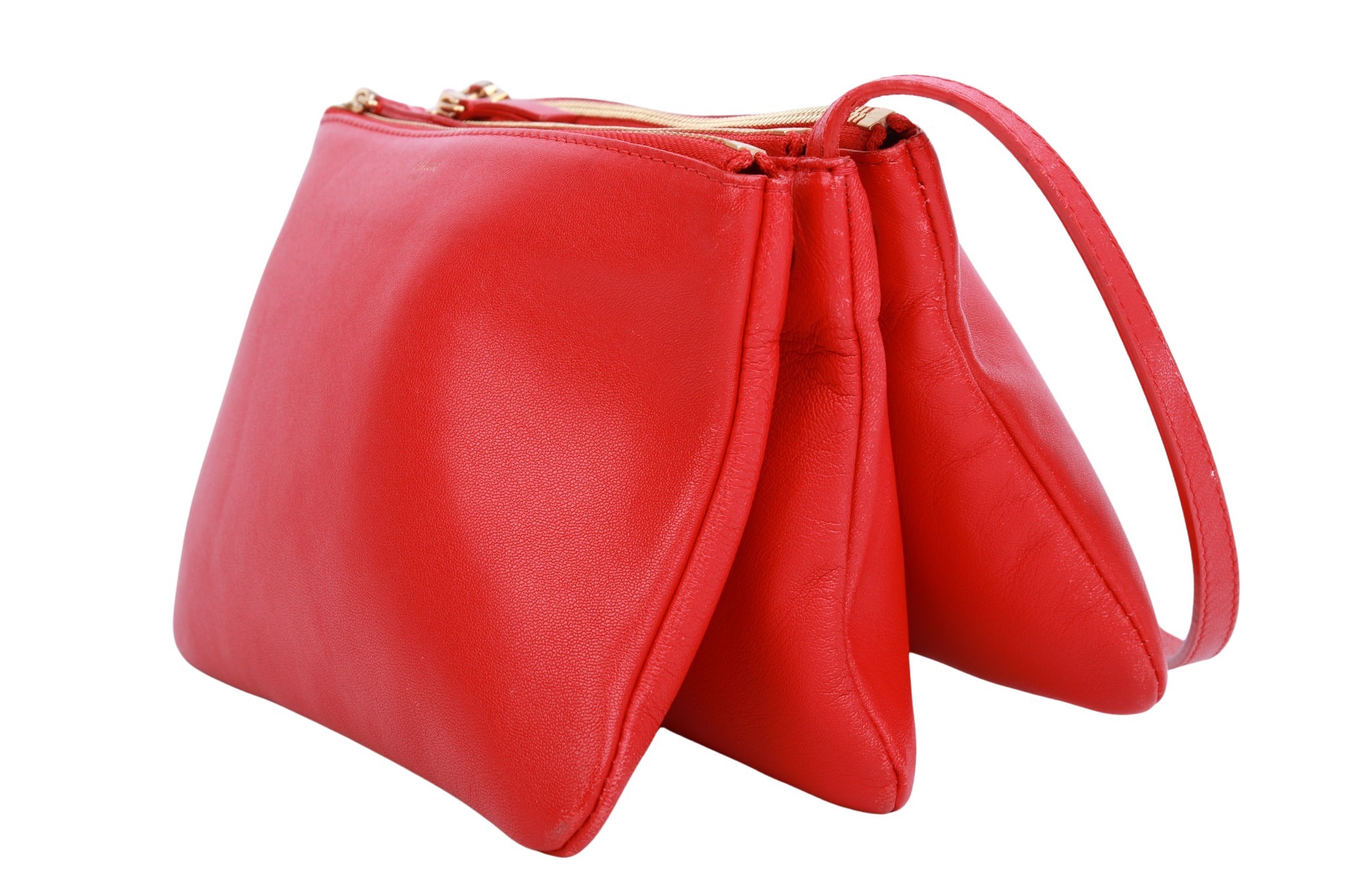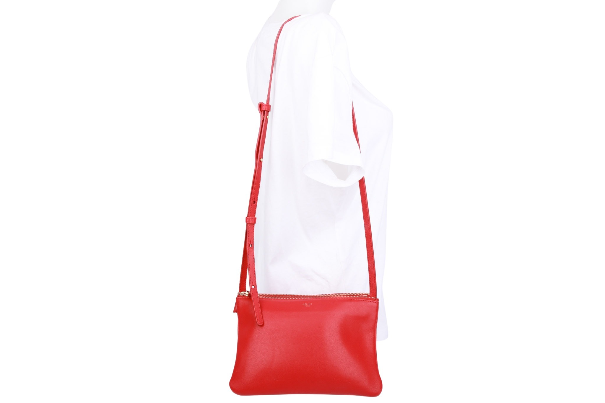 Die Céline Trio Large verkörpert schlichte Eleganz und zeitlose Raffinesse. Hergestellt aus hochwertigem Leder strahlt sie eine unaufdringliche Schönheit aus. Ihre minimalistische Silhouette wird durch die sauberen Linien und das diskrete Céline-Logo auf der Vorderseite betont. Mit ihren drei separaten Taschen bietet sie eine praktische und dennoch stilvolle Möglichkeit, Ihre persönlichen Gegenstände zu organisieren. Der verstellbare Riemen ermöglicht es Ihnen, die Tasche bequem über der Schulter oder Crossbody zu tragen. Die Céline Trio Large ist eine zeitlose Ergänzung für jede Garderobe und verleiht jedem Outfit eine subtile Eleganz.