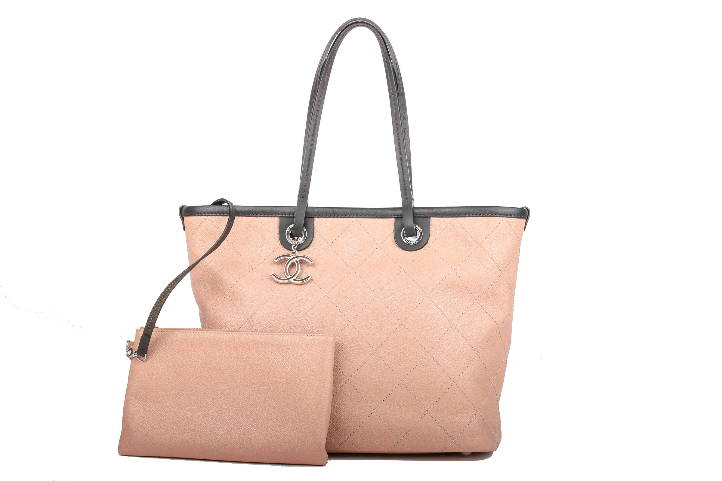 Toller klassischer Shopper mit abnehmbarer Pochette. Eleganter Chanel Shopper aus edlem Kaviarleder in zeitlosem Nude. Die strukturierte Oberfläche sorgt für Langlebigkeit, während das ikonische Design mit feinen Details den luxuriösen Look unterstreicht. Geräumig, stilvoll und perfekt für Alltag und Business.
