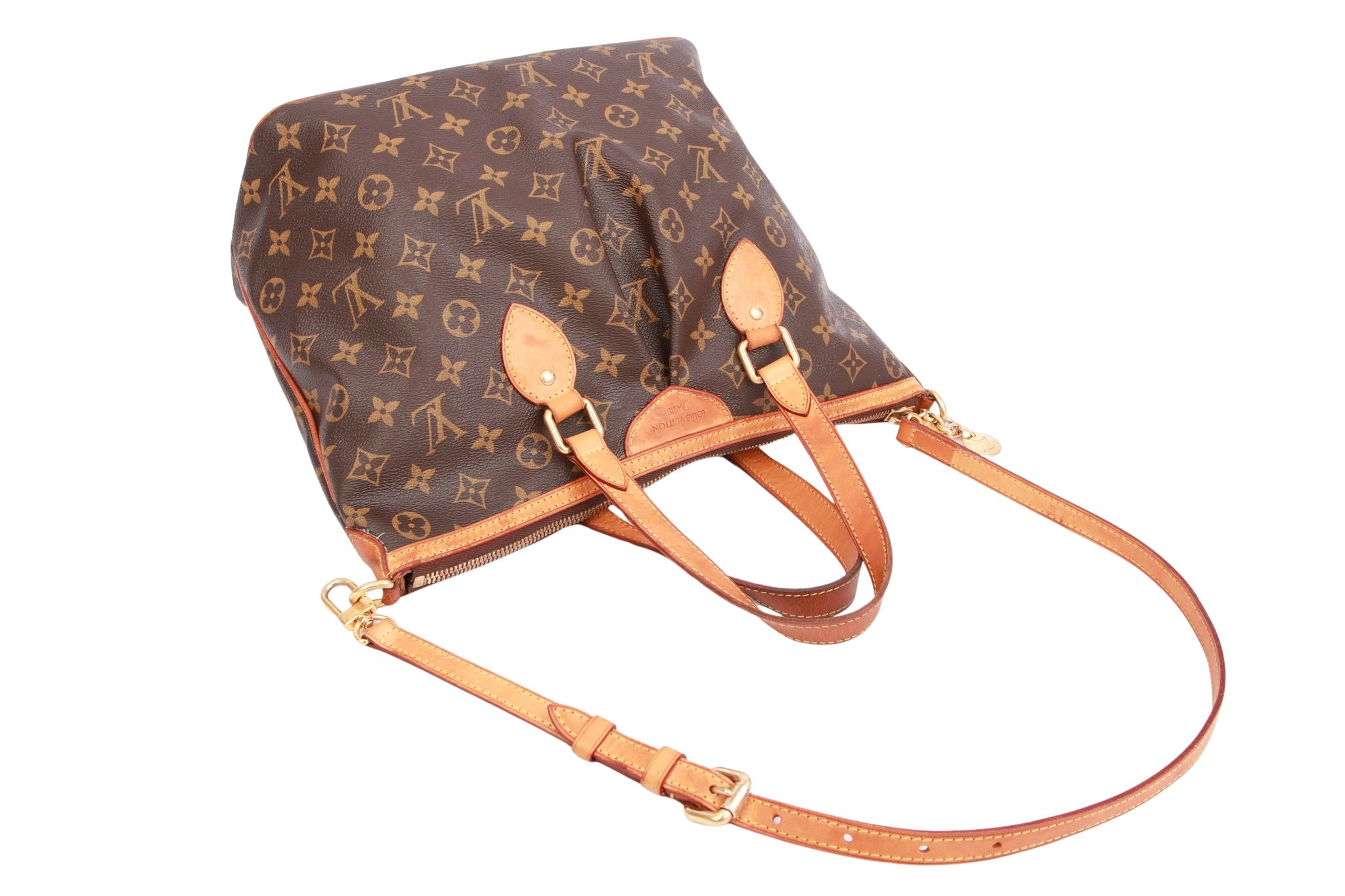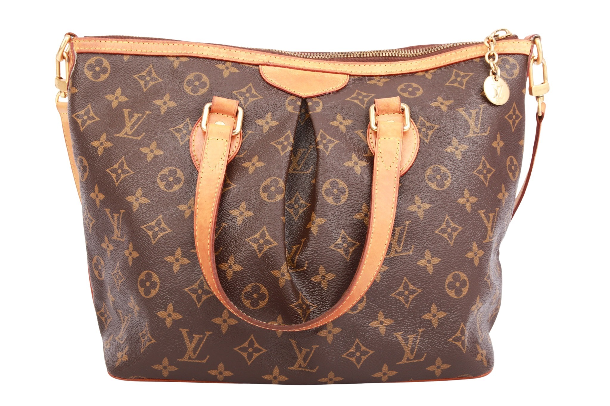 Die Louis Vuitton Palermo PM ist eine elegante Handtasche aus Monogram Canvas mit naturbelassenen Lederbesätzen und goldfarbener Hardware. Sie verfügt über zwei Tragegriffe, einen abnehmbaren Schulterriemen und einen Reißverschluss oben. Das Innenfutter besteht aus Textil mit mehreren Steckfächern. Die Tasche ist geräumig, formstabil und eignet sich ideal für den täglichen Gebrauch.