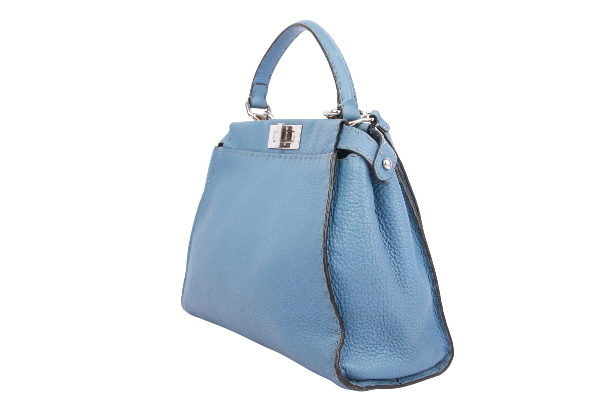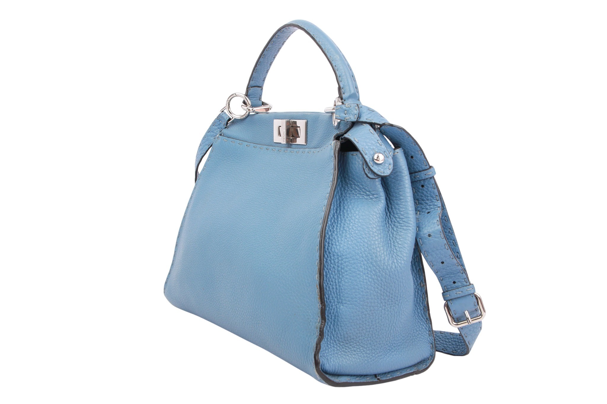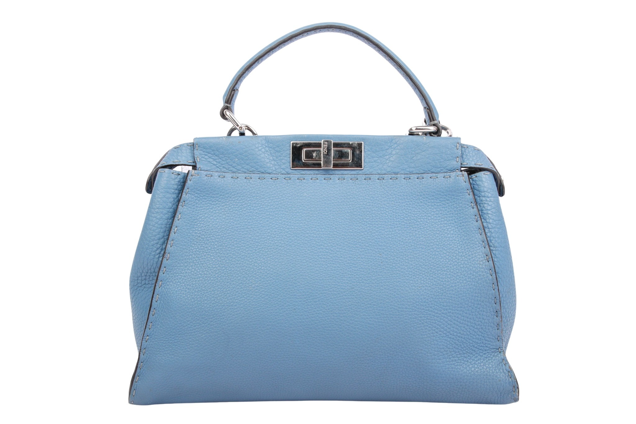 Fendi Peekaboo Medium Leder. Elegante, mittelgroße Handtasche aus Kalbsleder. Innen zwei Hauptfächer mit Trennwand und mindestens einem kleinen Fach für Essentials. Tragevarianten: Handgriff, Schulterriemen oder Crossbody. Typisches Peekaboo-Design mit Drehverschluss, hochwertige Hardware, schlicht, zeitlos und vielseitig für Alltag und Büro.