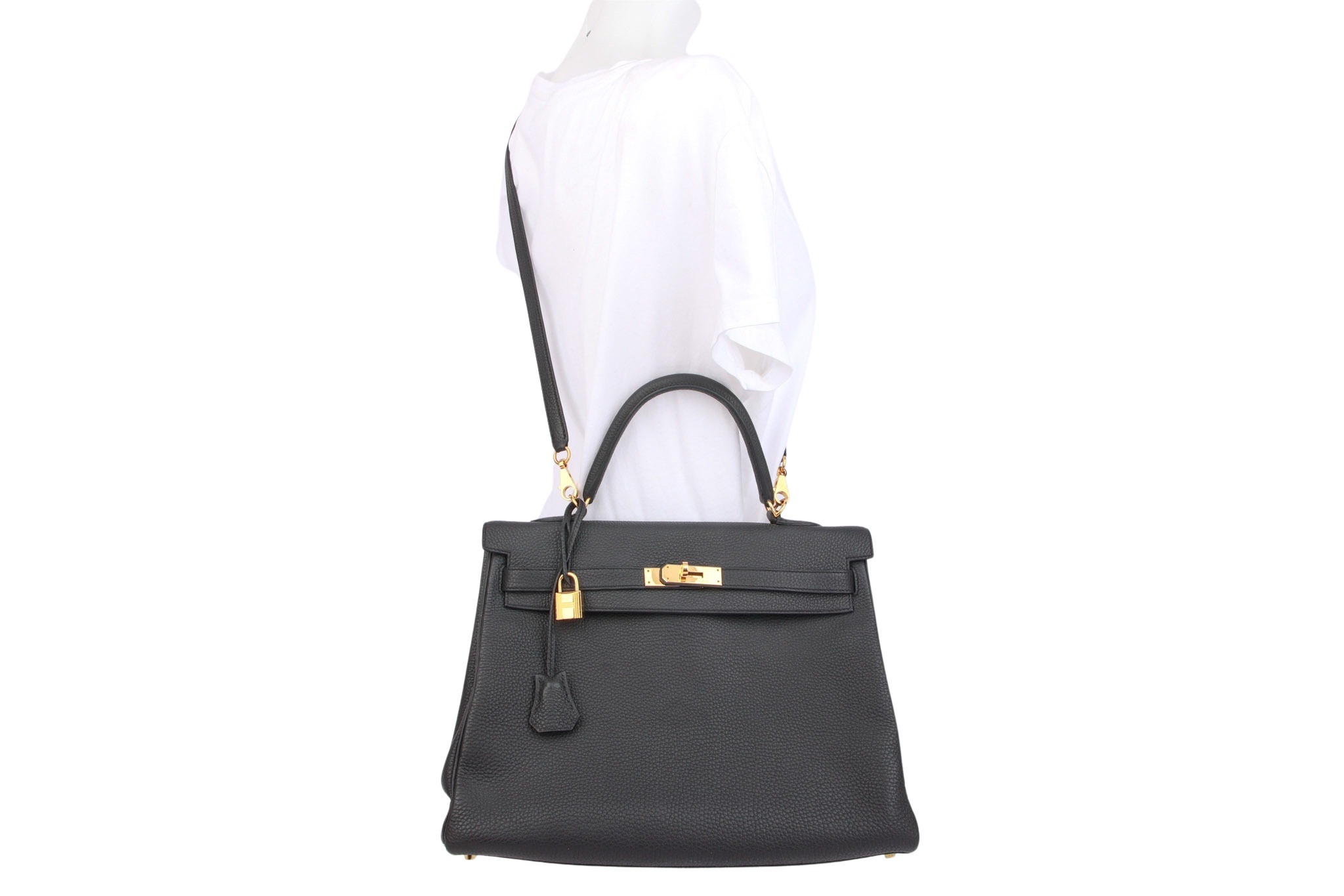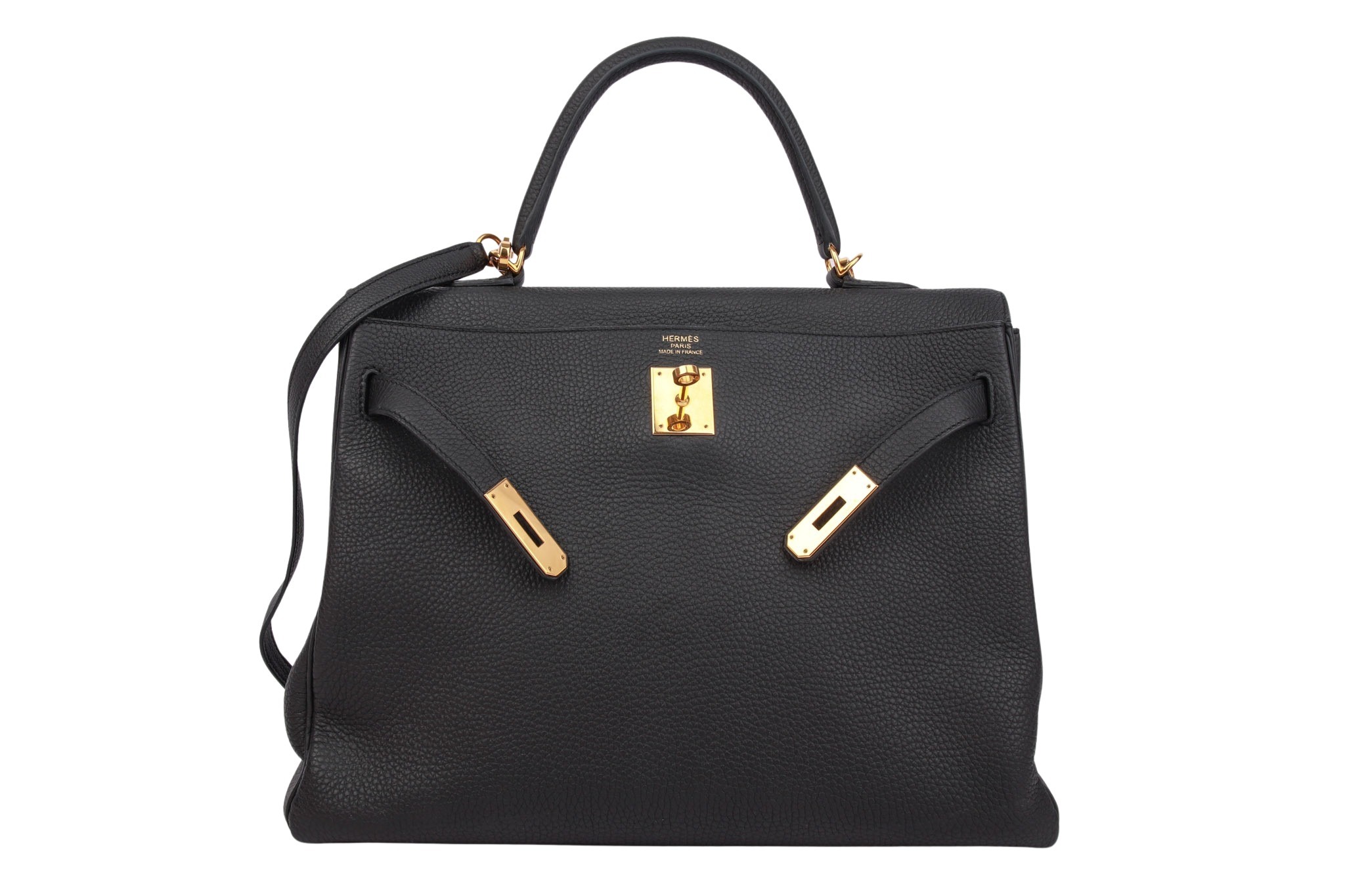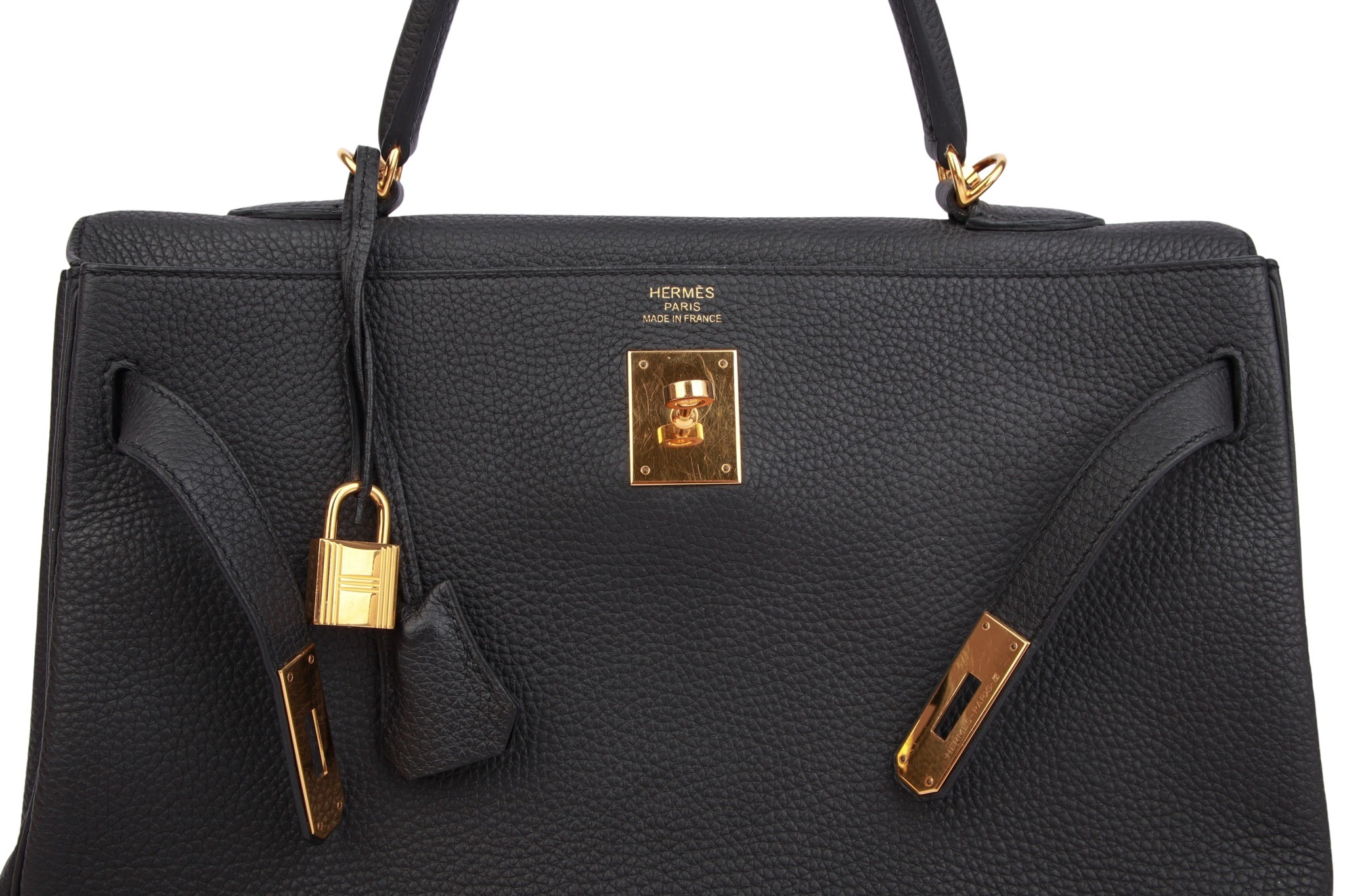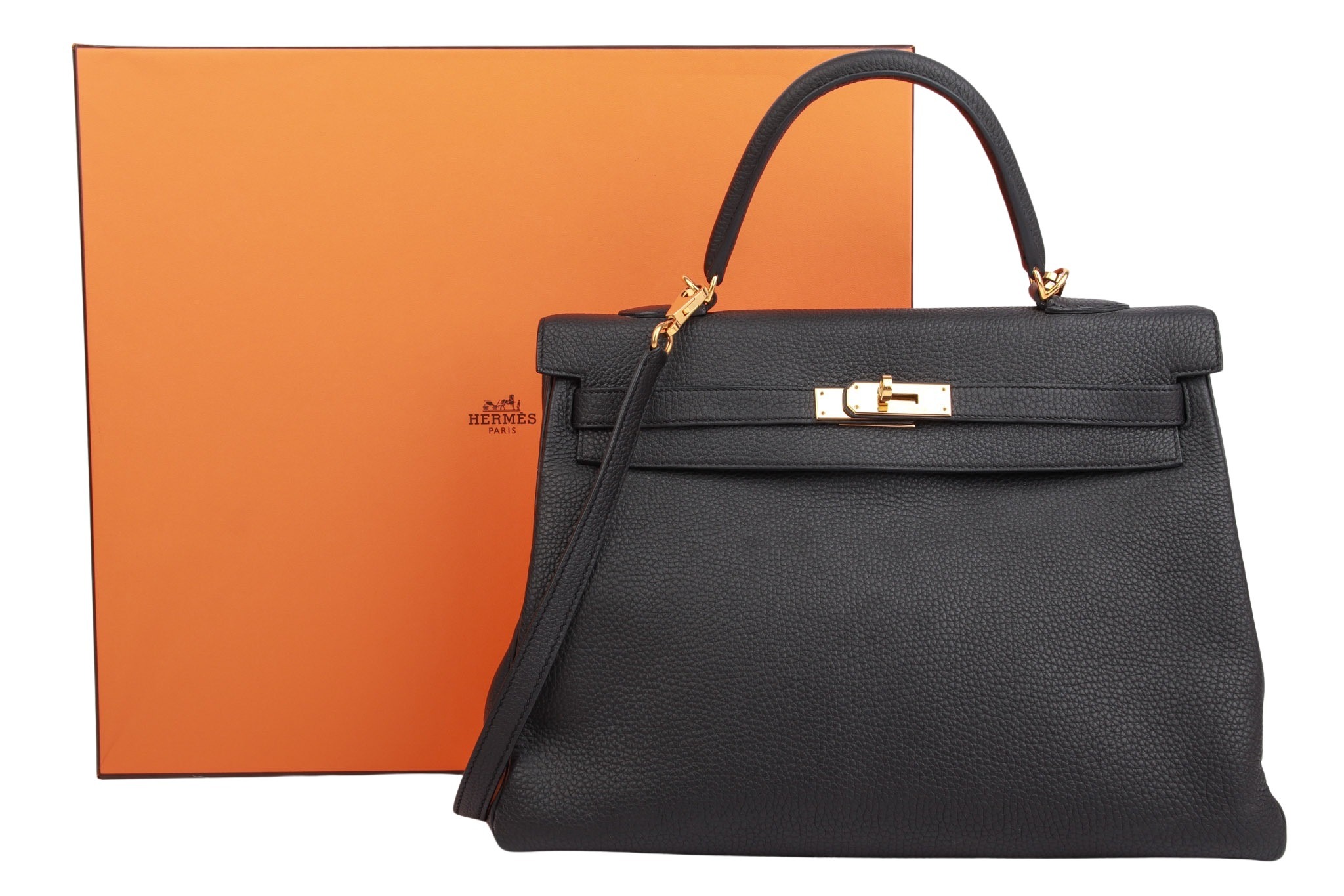 Ein Inbegriff von Luxus und Handwerkskunst: Die Hermès Kelly 35 aus schwarzem Togo-Leder vereint ikonisches Design mit zeitloser Eleganz. Das strukturierte, dennoch weiche Togo-Leder sorgt für Robustheit und eine edle Haptik, während die klare Silhouette, der charakteristische Verschluss und die feinen Metallakzente ein Statement klassischer Raffinesse setzen. Mit ihrer mittelgroßen Größe ist sie perfekt für stilbewusste Trägerinnen, die Funktionalität und höchste Exklusivität gleichermaßen schätzen.