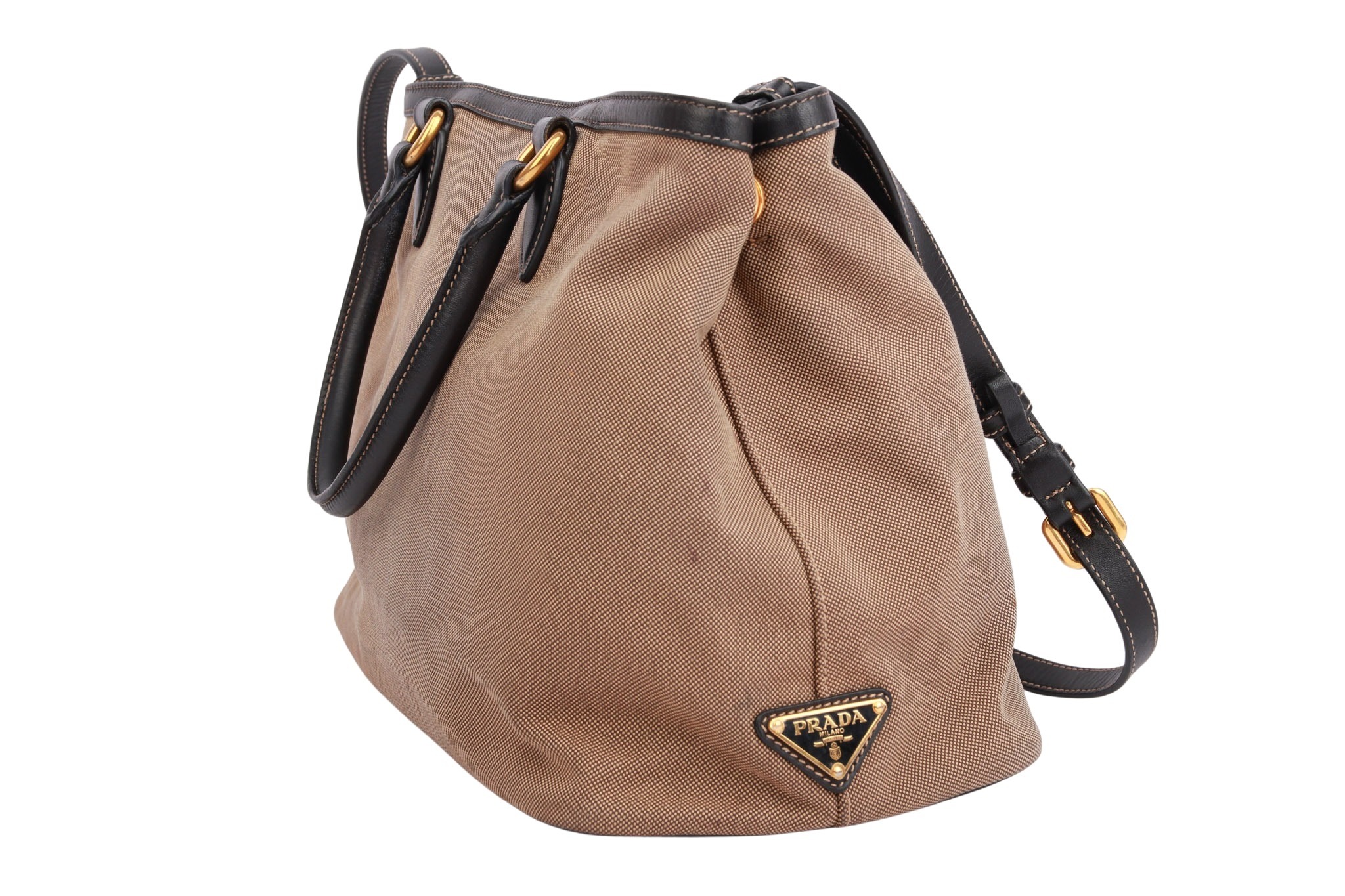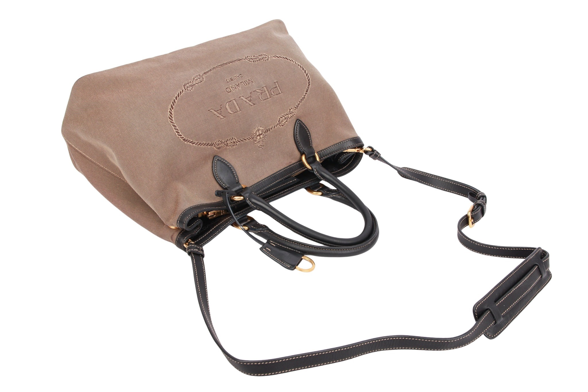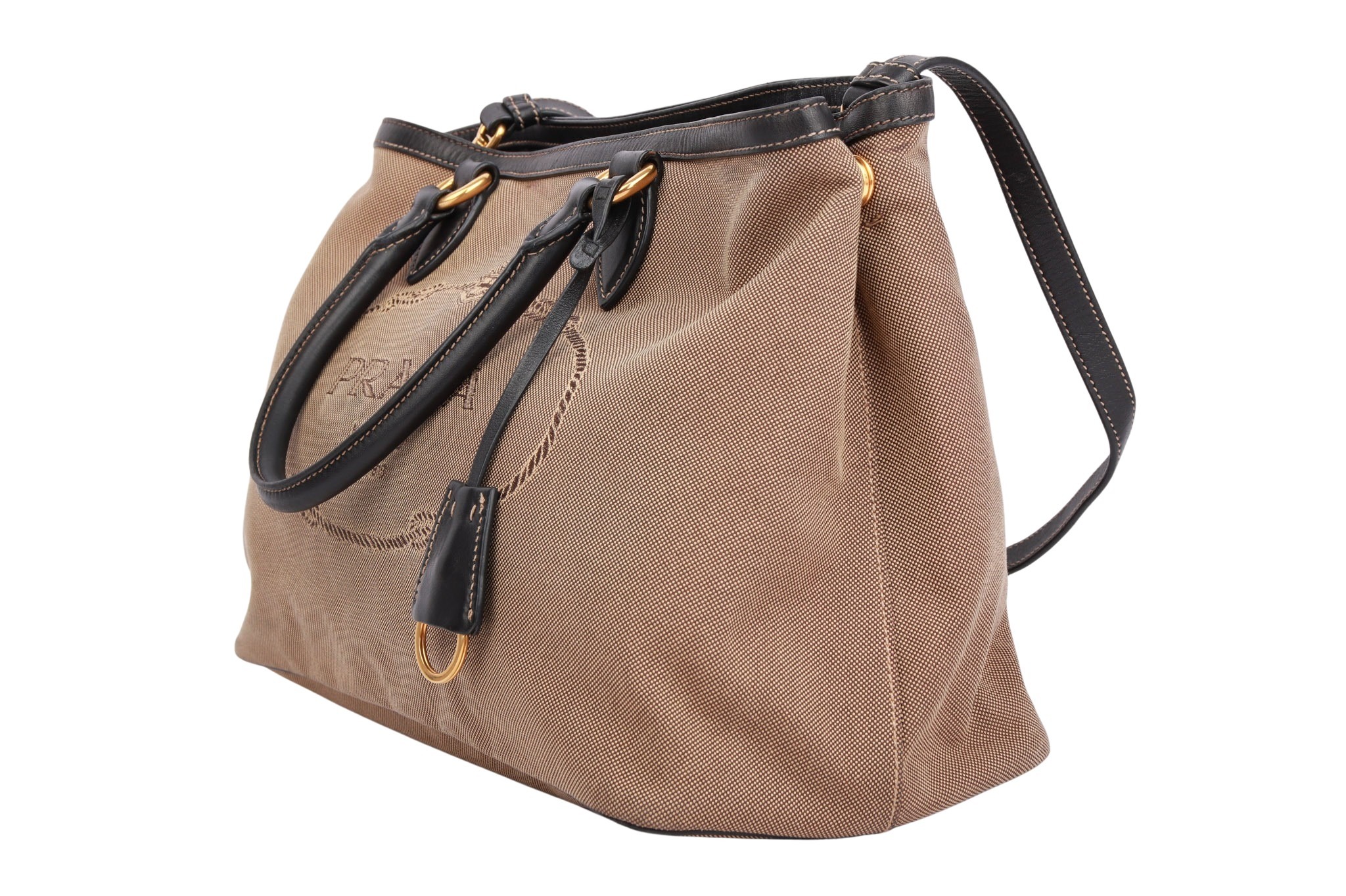 Die Prada Jacquard Canvas Tote Bag in Beige/Braun ist eine stilvolle und praktische Tasche. Sie besteht aus robustem Canvas-Material, das langlebig und leicht zu pflegen ist. Das schlichte, elegante Design in Beige/ Braun macht sie vielseitig kombinierbar für viele Anlässe. Perfekt, um Alltagssachen stilvoll zu transportieren!