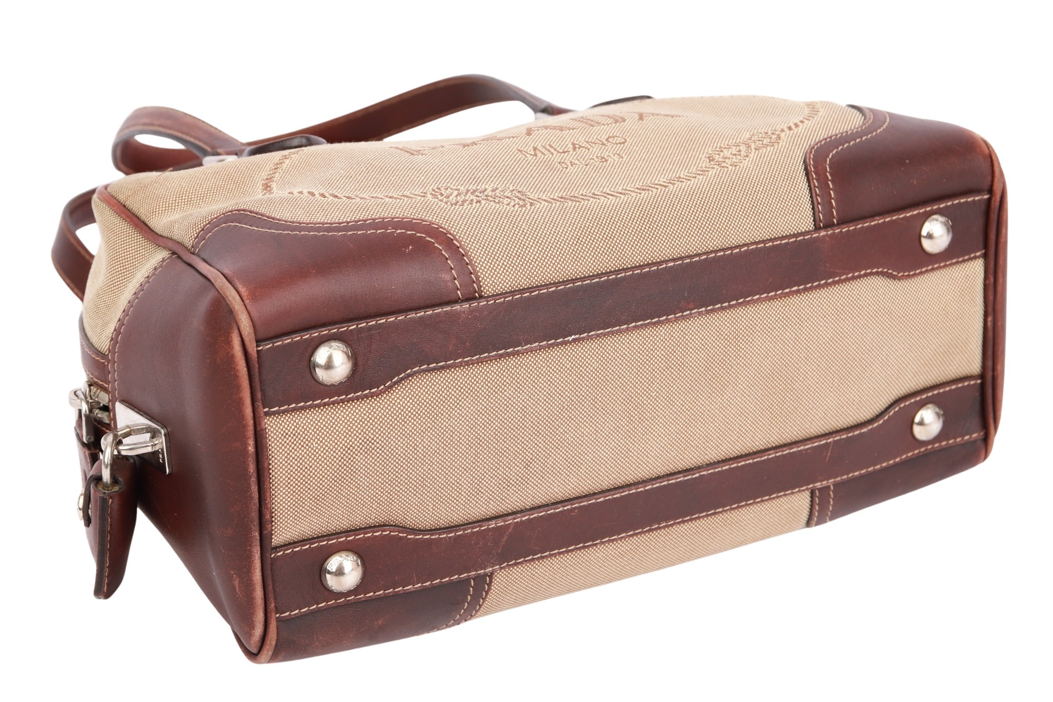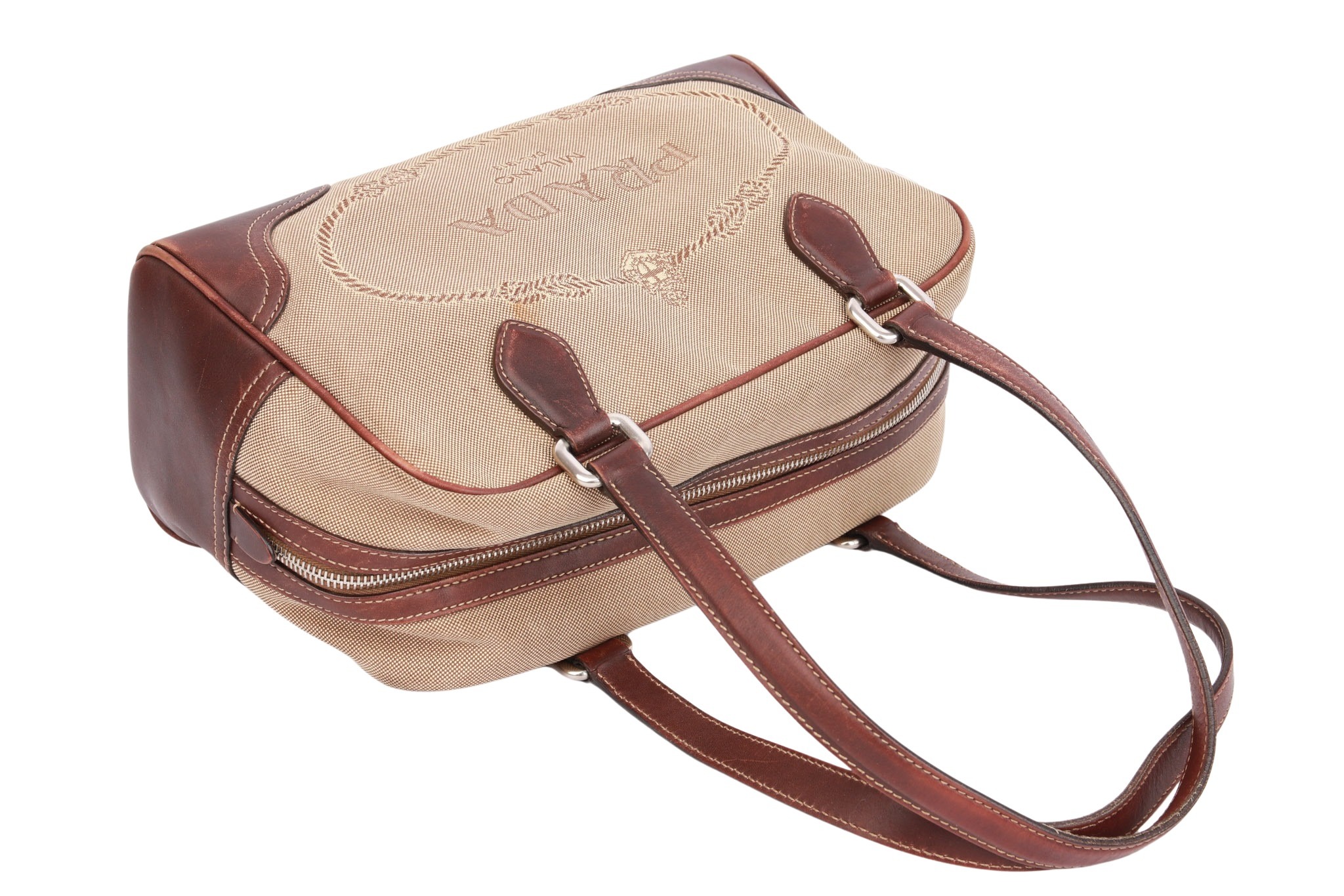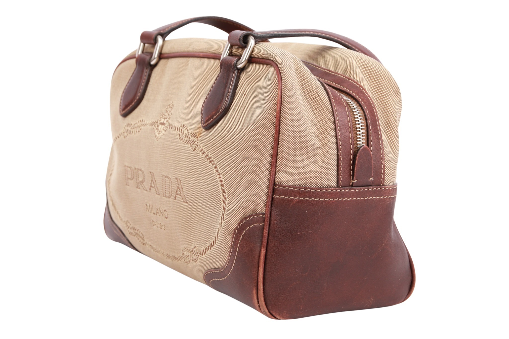 Prada Jacquard Bowling Bag Beige / Braun