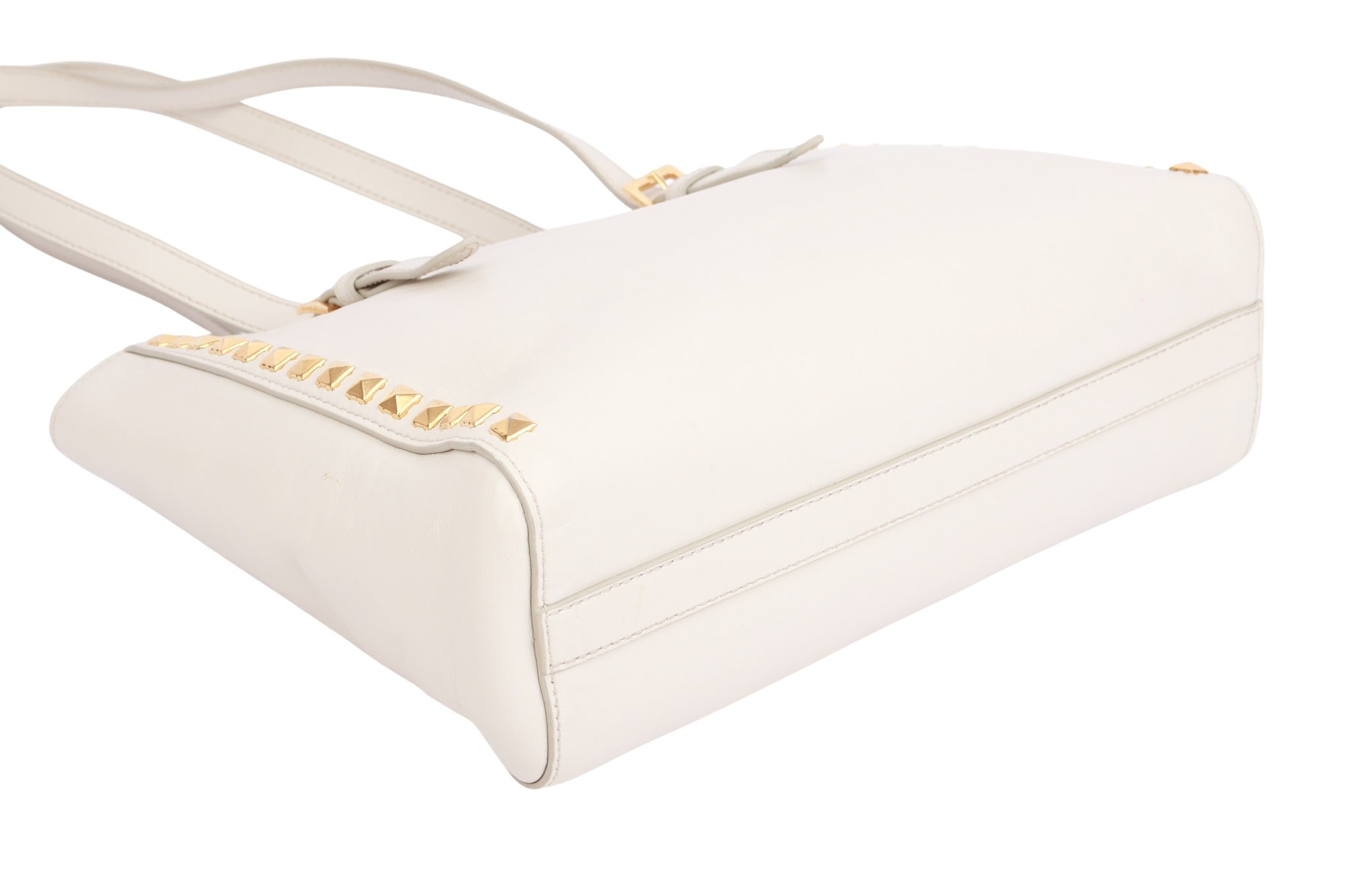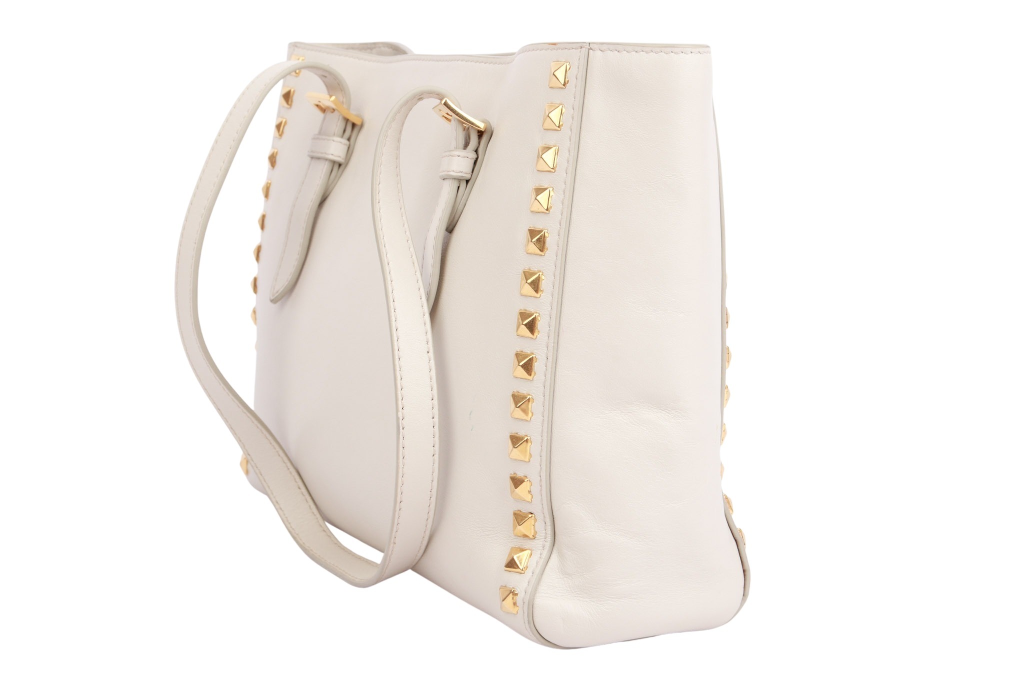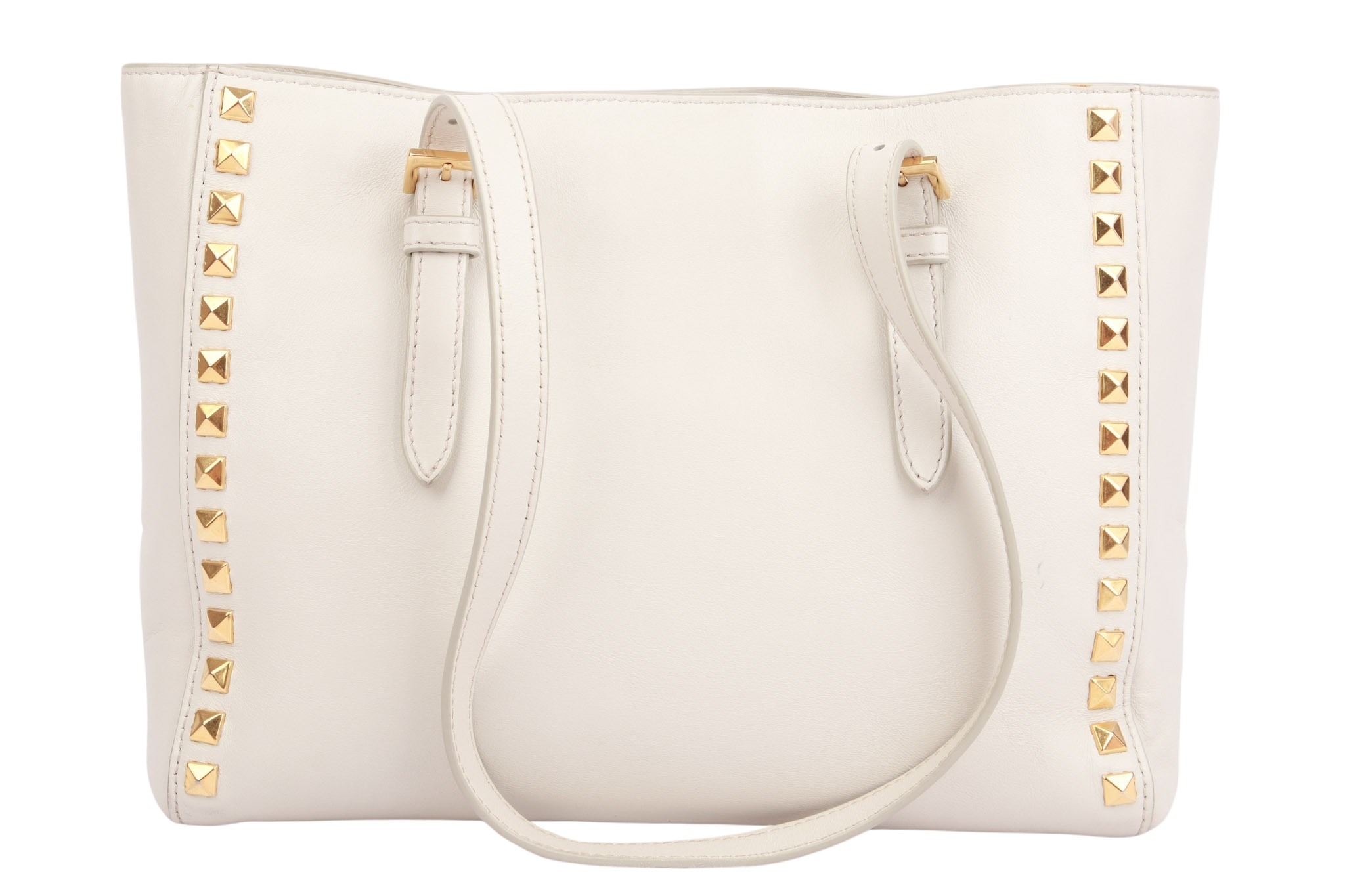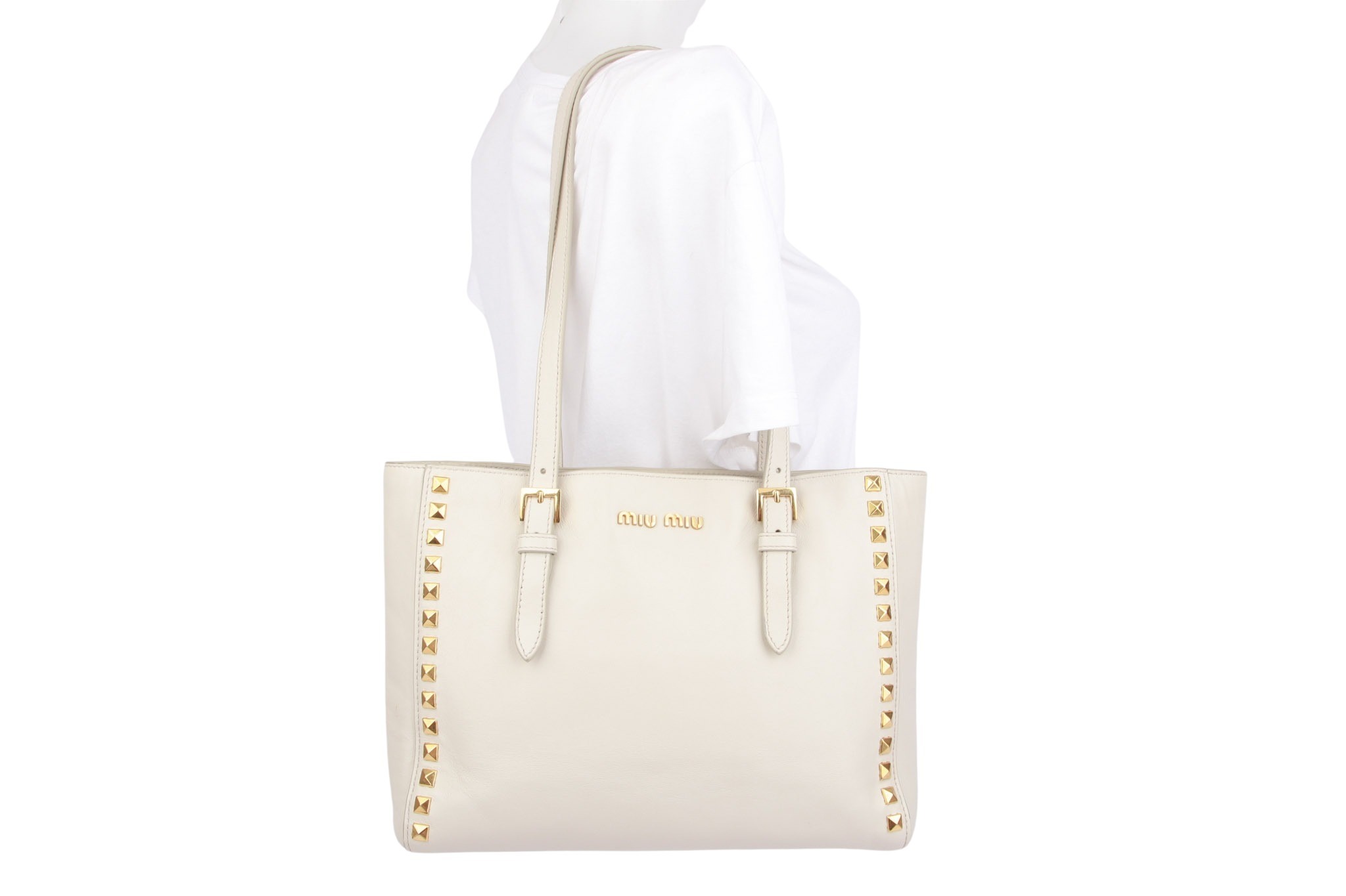 Sehr schöne Handtasche aus weißem Leder aus dem Hause Miu Miu mit goldfarbenen Metallelementen.