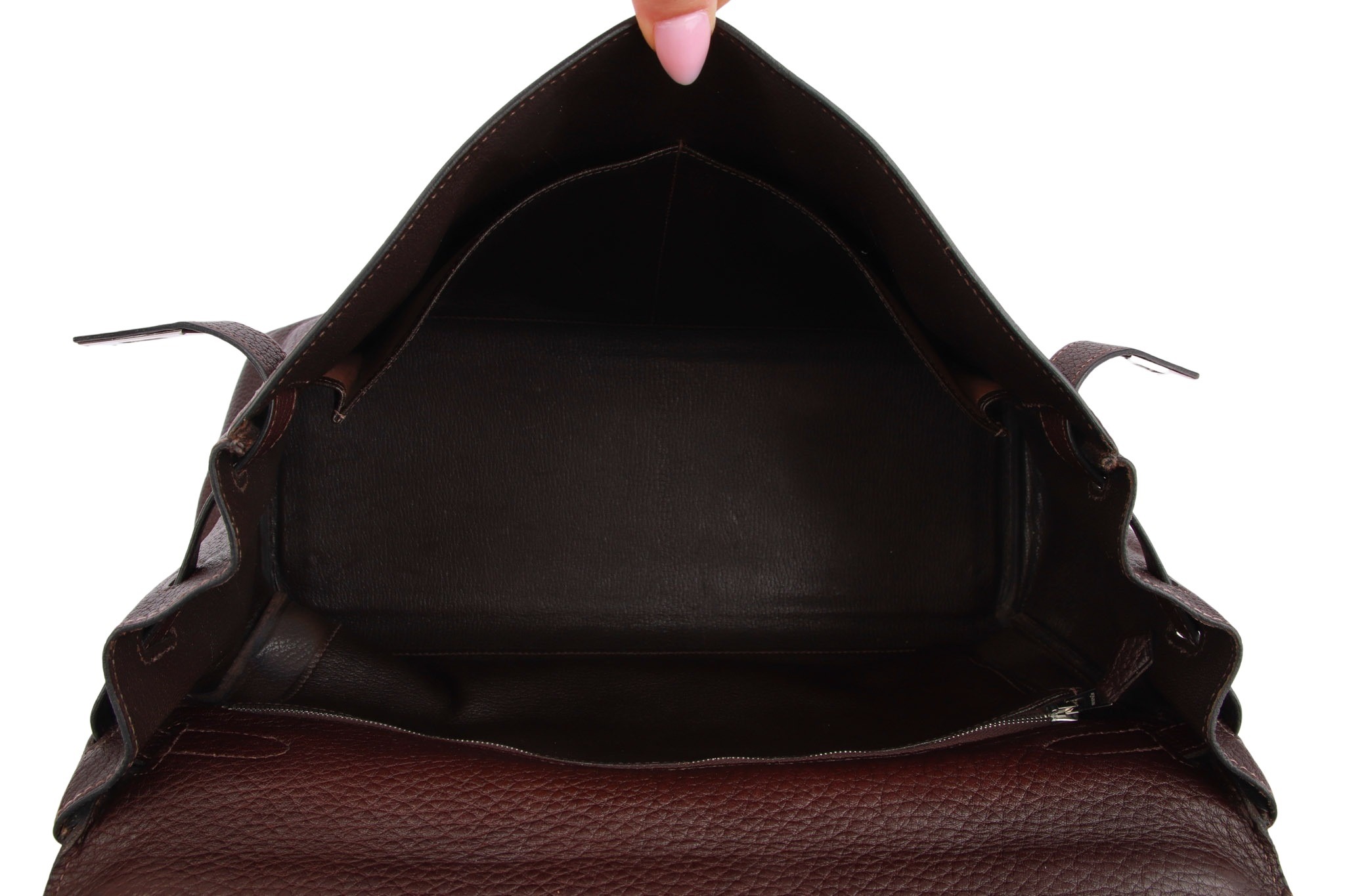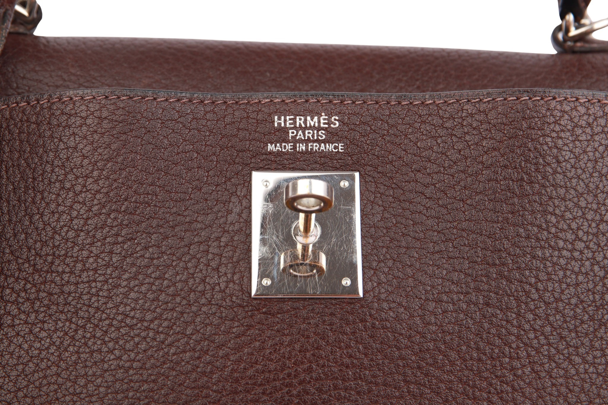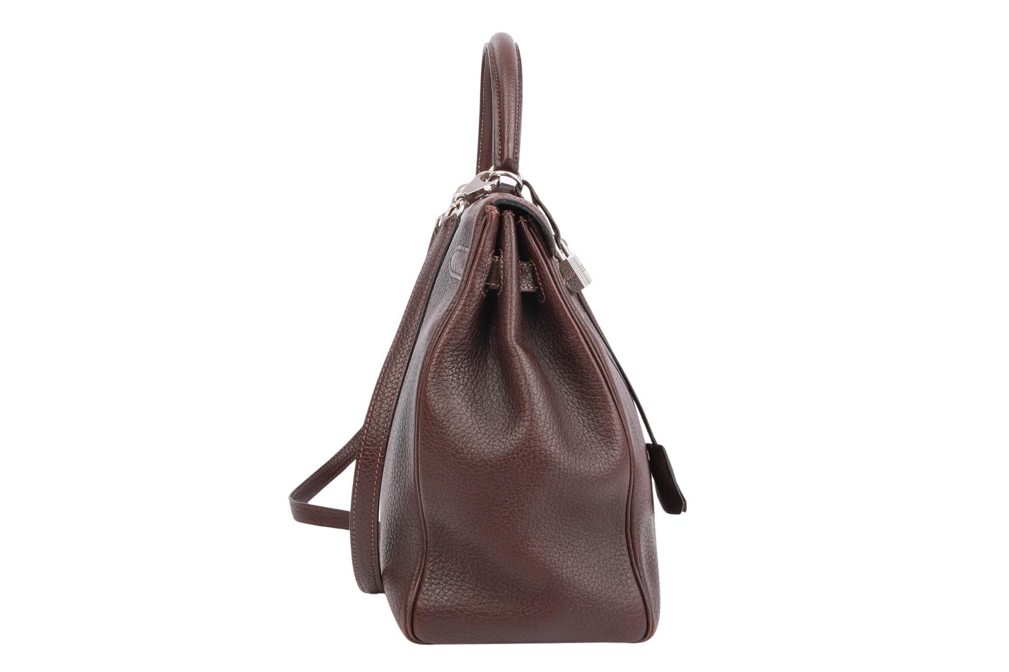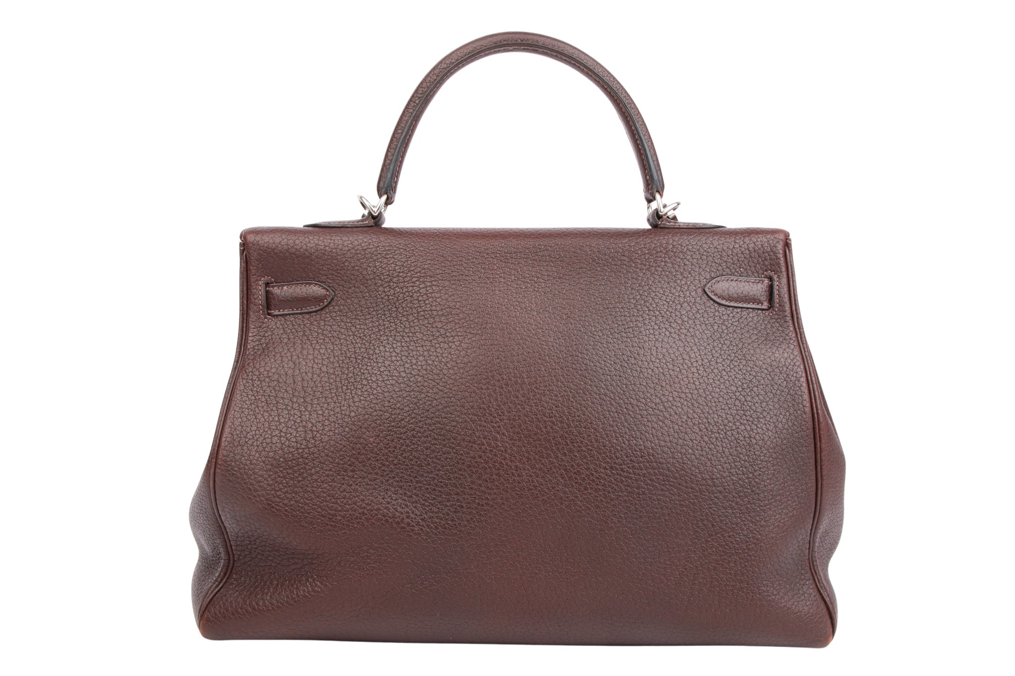 Ein Inbegriff von Luxus und Handwerkskunst: Die Hermès Kelly 35 aus dunkelbraunem Togo-Leder vereint ikonisches Design mit zeitloser Eleganz. Das strukturierte, dennoch weiche Togo-Leder sorgt für Robustheit und eine edle Haptik, während die klare Silhouette, der charakteristische Verschluss und die feinen Metallakzente ein Statement klassischer Raffinesse setzen. Mit ihrer mittelgroßen Größe ist sie perfekt für stilbewusste Trägerinnen, die Funktionalität und höchste Exklusivität gleichermaßen schätzen.