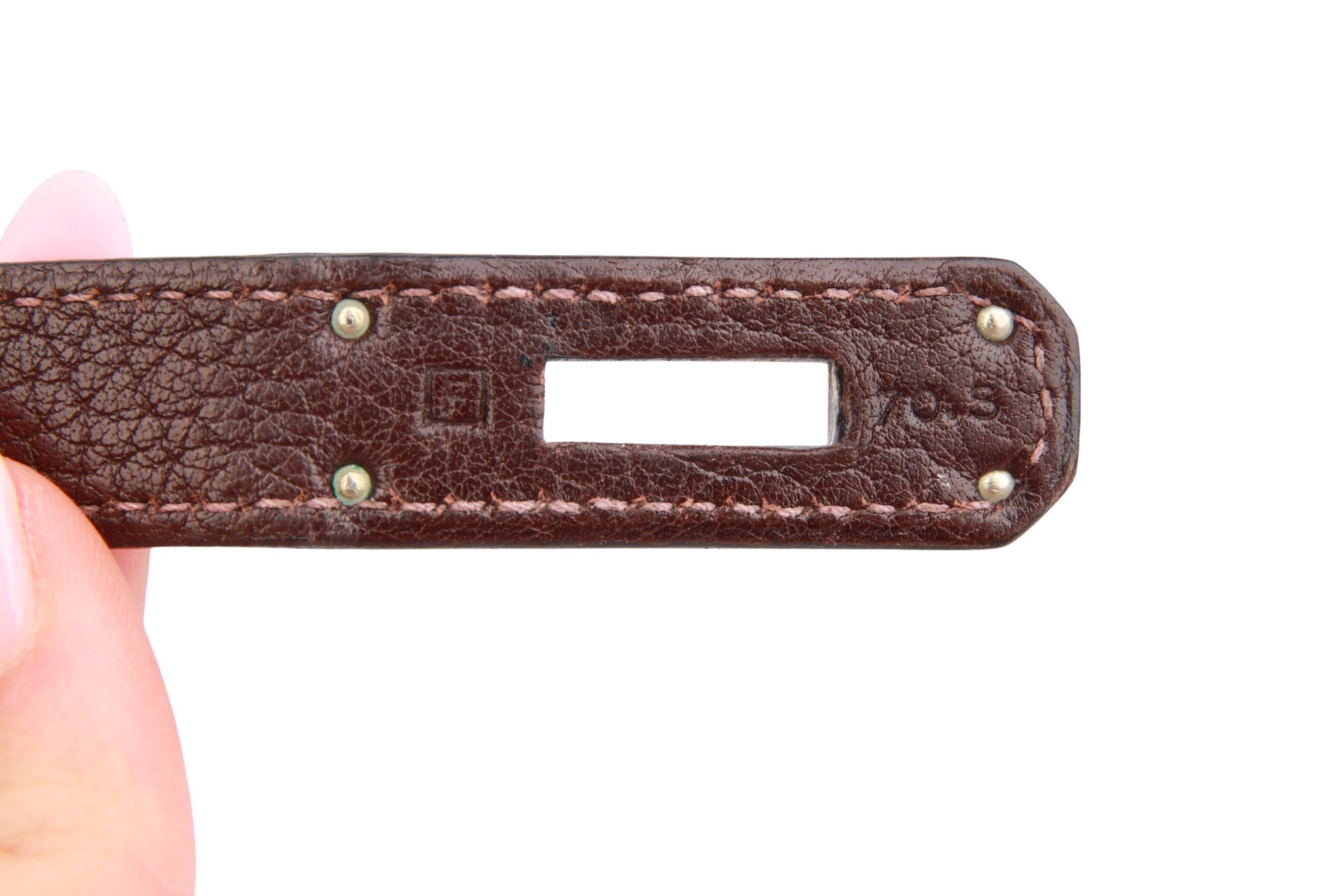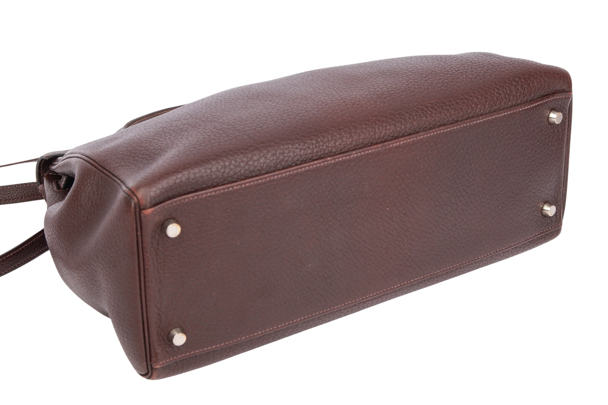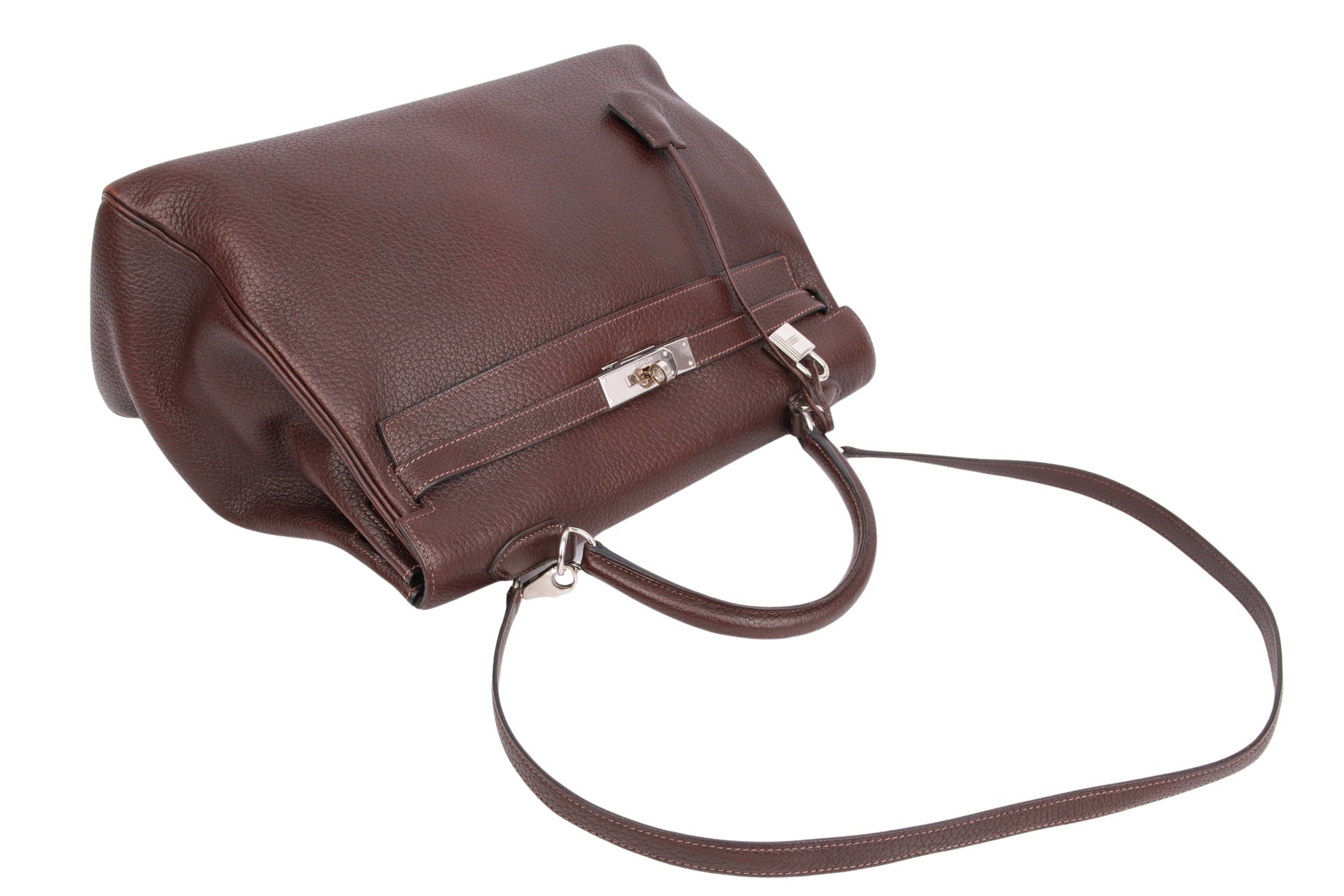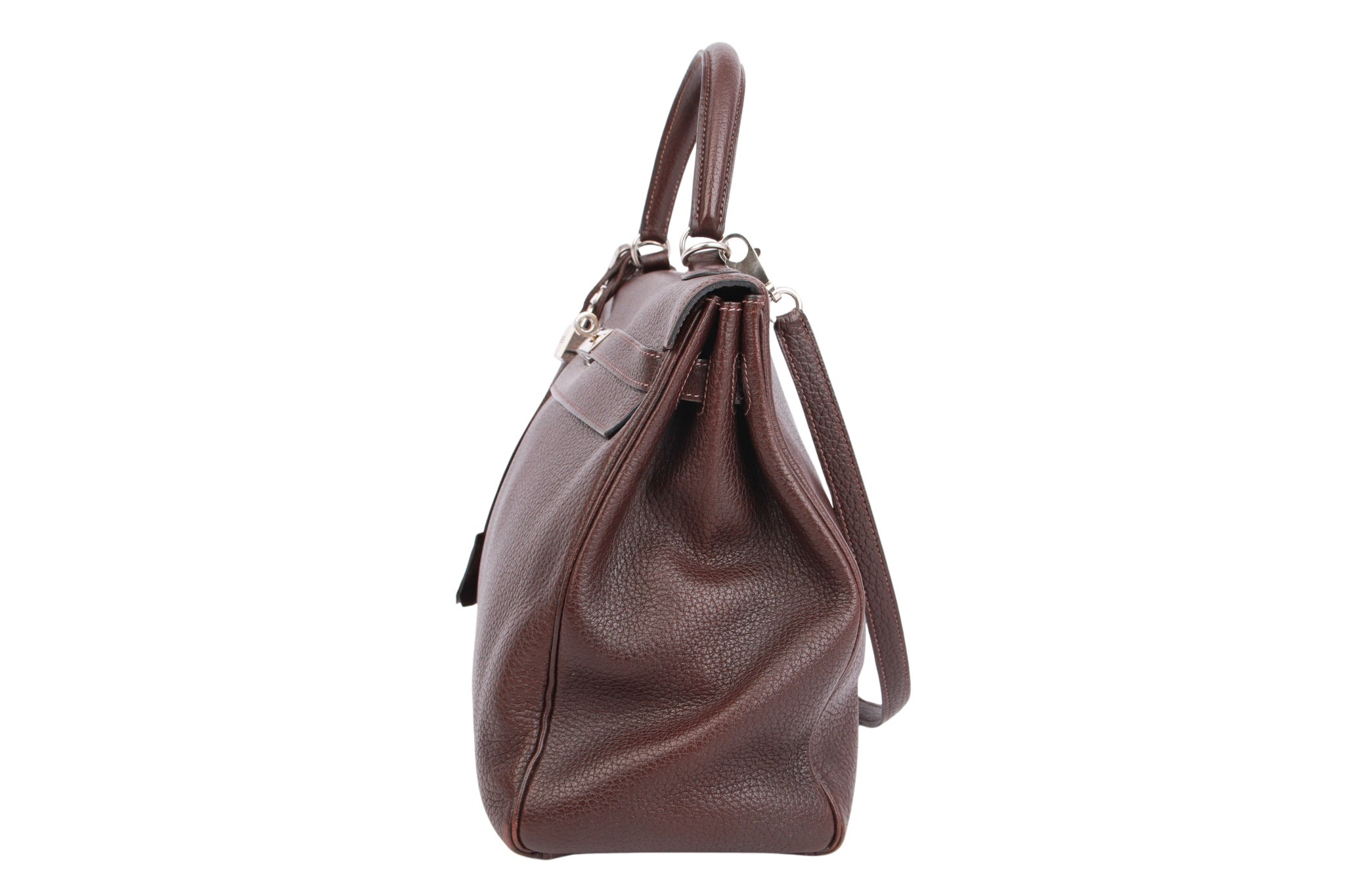 Ein Inbegriff von Luxus und Handwerkskunst: Die Hermès Kelly 35 aus dunkelbraunem Togo-Leder vereint ikonisches Design mit zeitloser Eleganz. Das strukturierte, dennoch weiche Togo-Leder sorgt für Robustheit und eine edle Haptik, während die klare Silhouette, der charakteristische Verschluss und die feinen Metallakzente ein Statement klassischer Raffinesse setzen. Mit ihrer mittelgroßen Größe ist sie perfekt für stilbewusste Trägerinnen, die Funktionalität und höchste Exklusivität gleichermaßen schätzen.