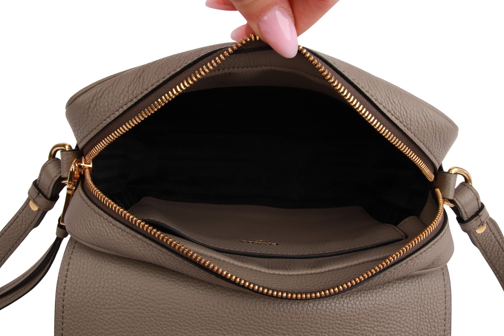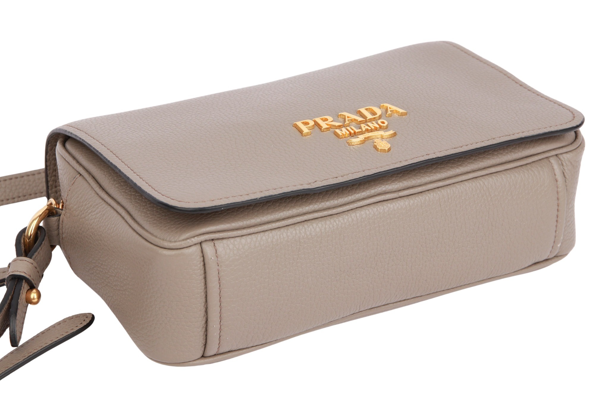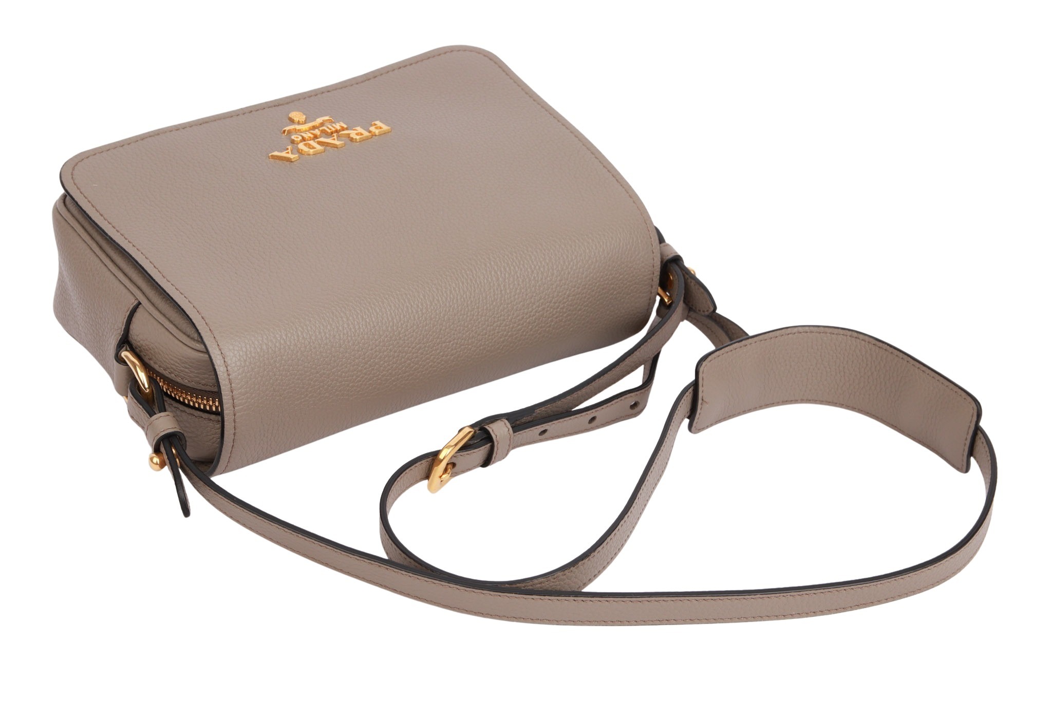 Diese Prada Crossbody Bag in Steingrau vereint zeitlose Eleganz mit moderner Funktionalität. Aus hochwertigem Kalbsleder gefertigt, strahlt sie schlichte Raffinesse aus. Die kompakte Form mit dem ikonischen Logo auf der Front, macht sie zum stilvollen Begleiter – ob tagsüber in der Stadt oder abends zum Ausgehen. Ein verstellbarer Schulterriemen sorgt für optimalen Tragekomfort.