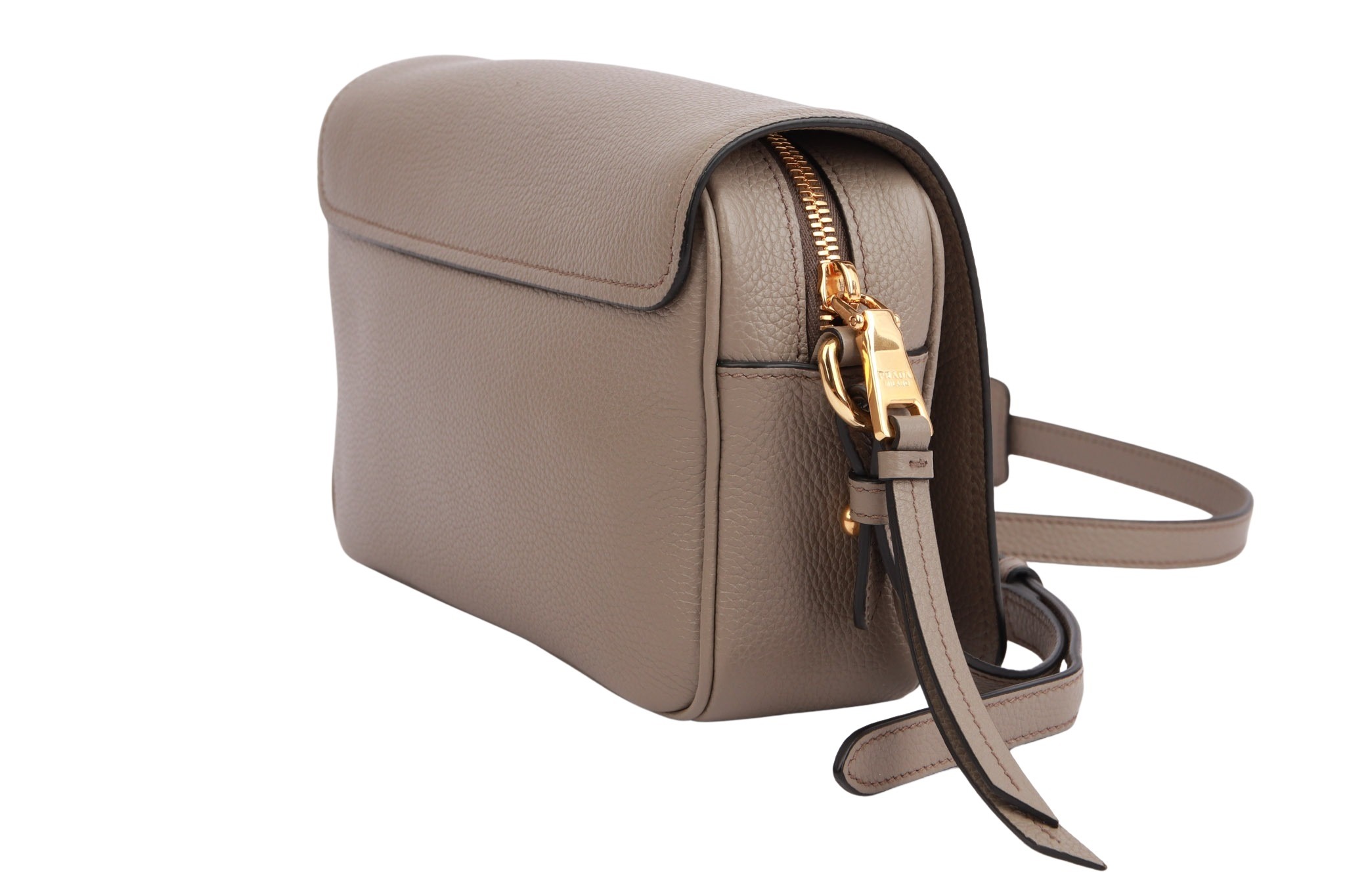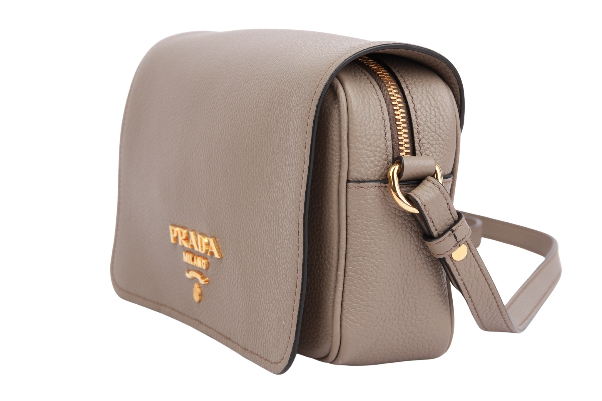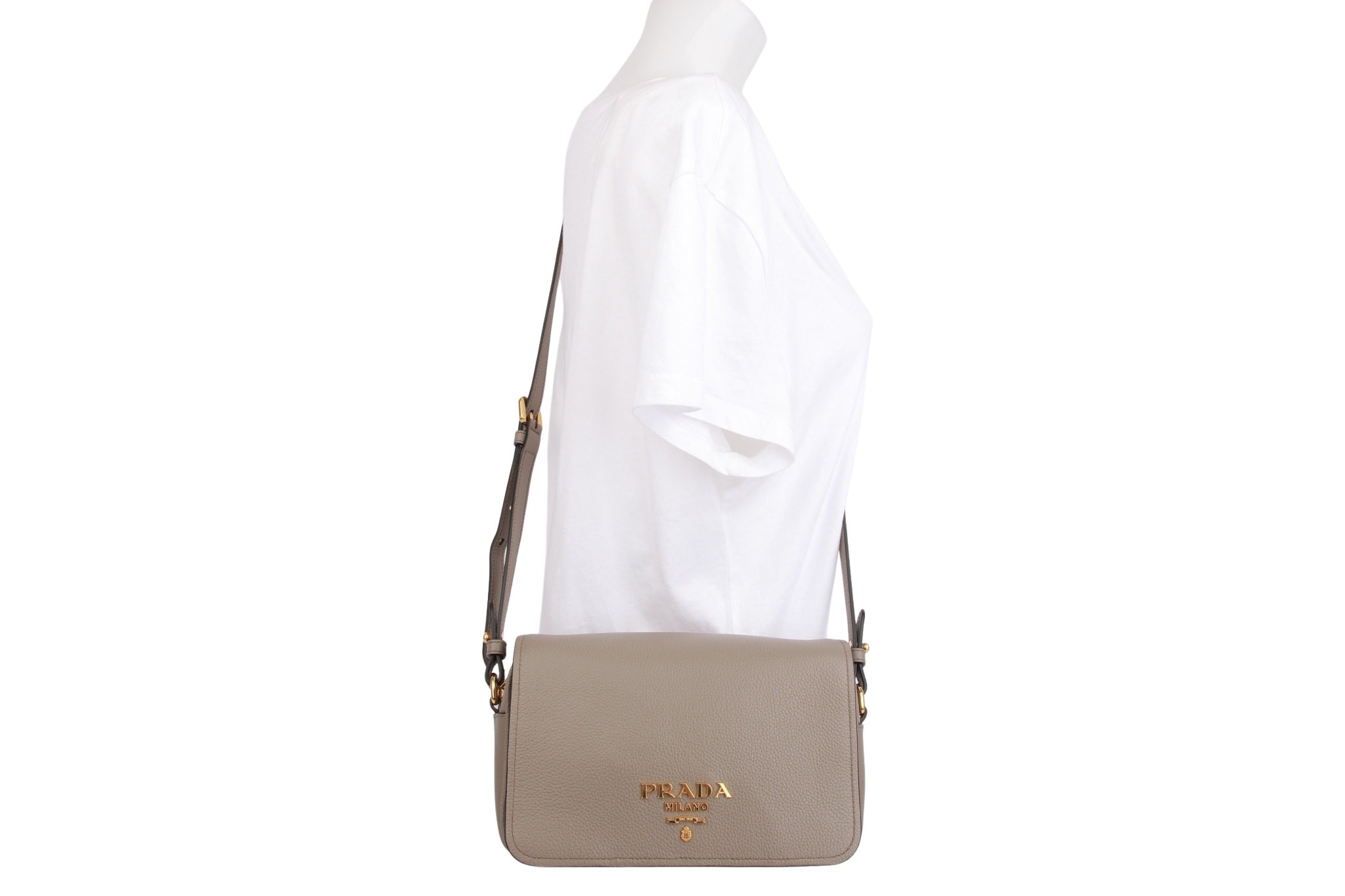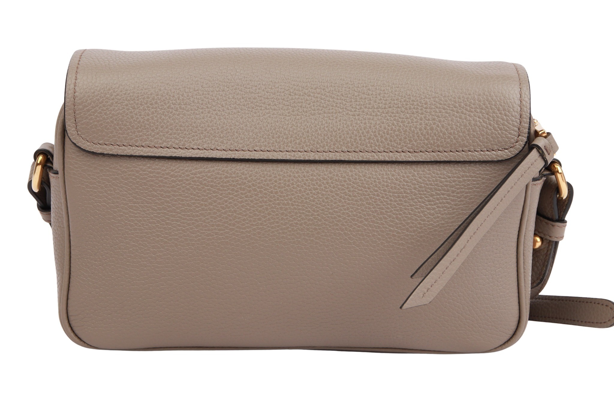 Diese Prada Crossbody Bag in Steingrau vereint zeitlose Eleganz mit moderner Funktionalität. Aus hochwertigem Kalbsleder gefertigt, strahlt sie schlichte Raffinesse aus. Die kompakte Form mit dem ikonischen Logo auf der Front, macht sie zum stilvollen Begleiter – ob tagsüber in der Stadt oder abends zum Ausgehen. Ein verstellbarer Schulterriemen sorgt für optimalen Tragekomfort.
