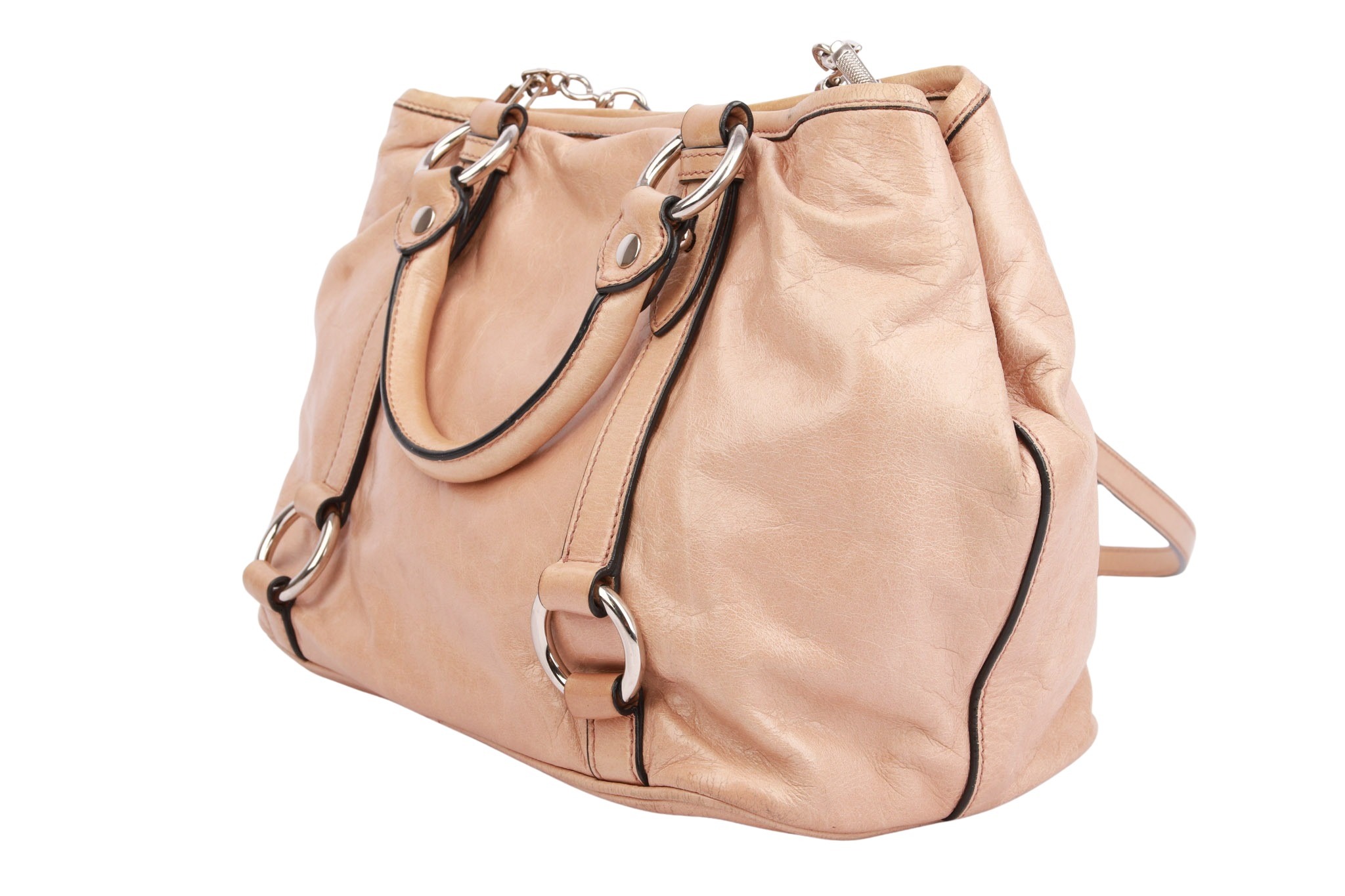 Miu Miu ist eine exquisite Verkörperung von Eleganz und Praktikabilität. Diese luxuriöse Tasche, gefertigt aus weichem, hochwertigem Leder in einem Beige-Ton, strahlt eine zeitlose Schönheit aus. Das minimalistische Design wird durch subtile Details wie dezente Ziernähte und feine, silberfarbene Akzente ergänzt. Mit ihrem geräumigen Innenraum und den vielseitigen Trageoptionen ist die Bow Bag die perfekte Wahl für stilbewusste Frauen, die Wert auf Qualität und Raffinesse legen.