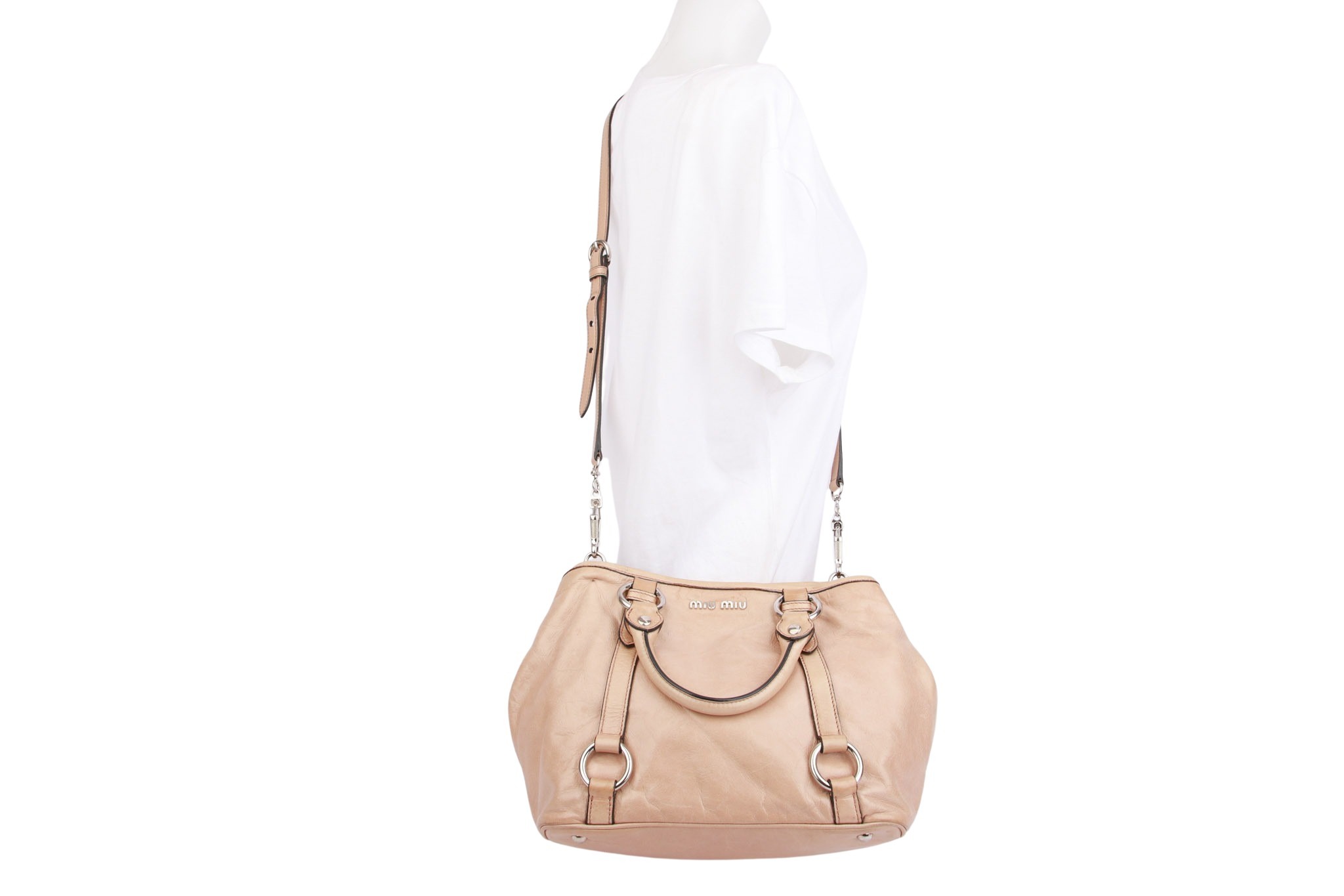 Miu Miu Vitello Lux Bow Bag Beige