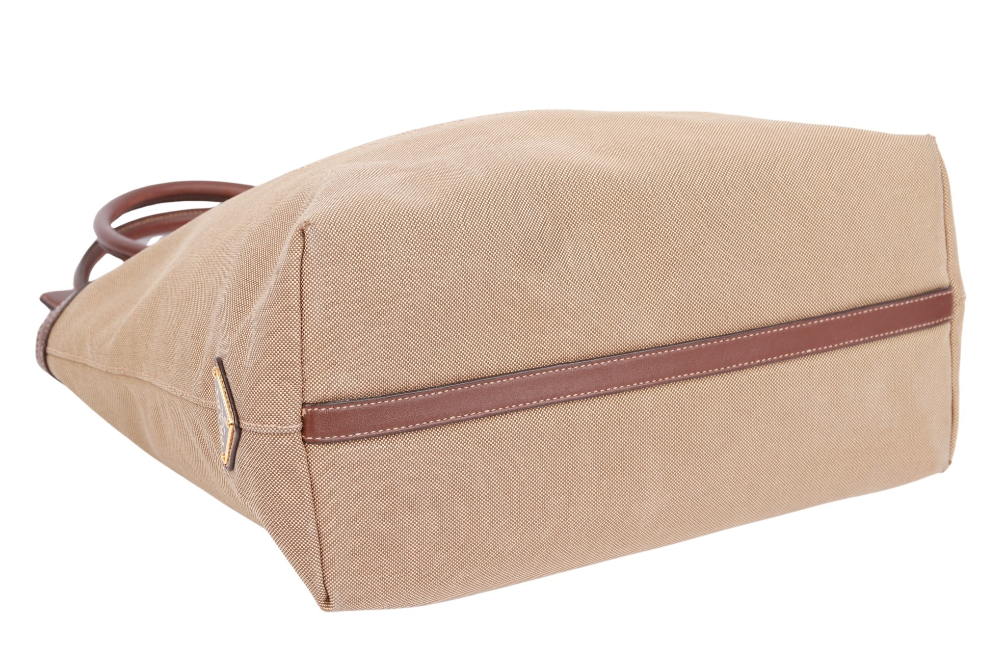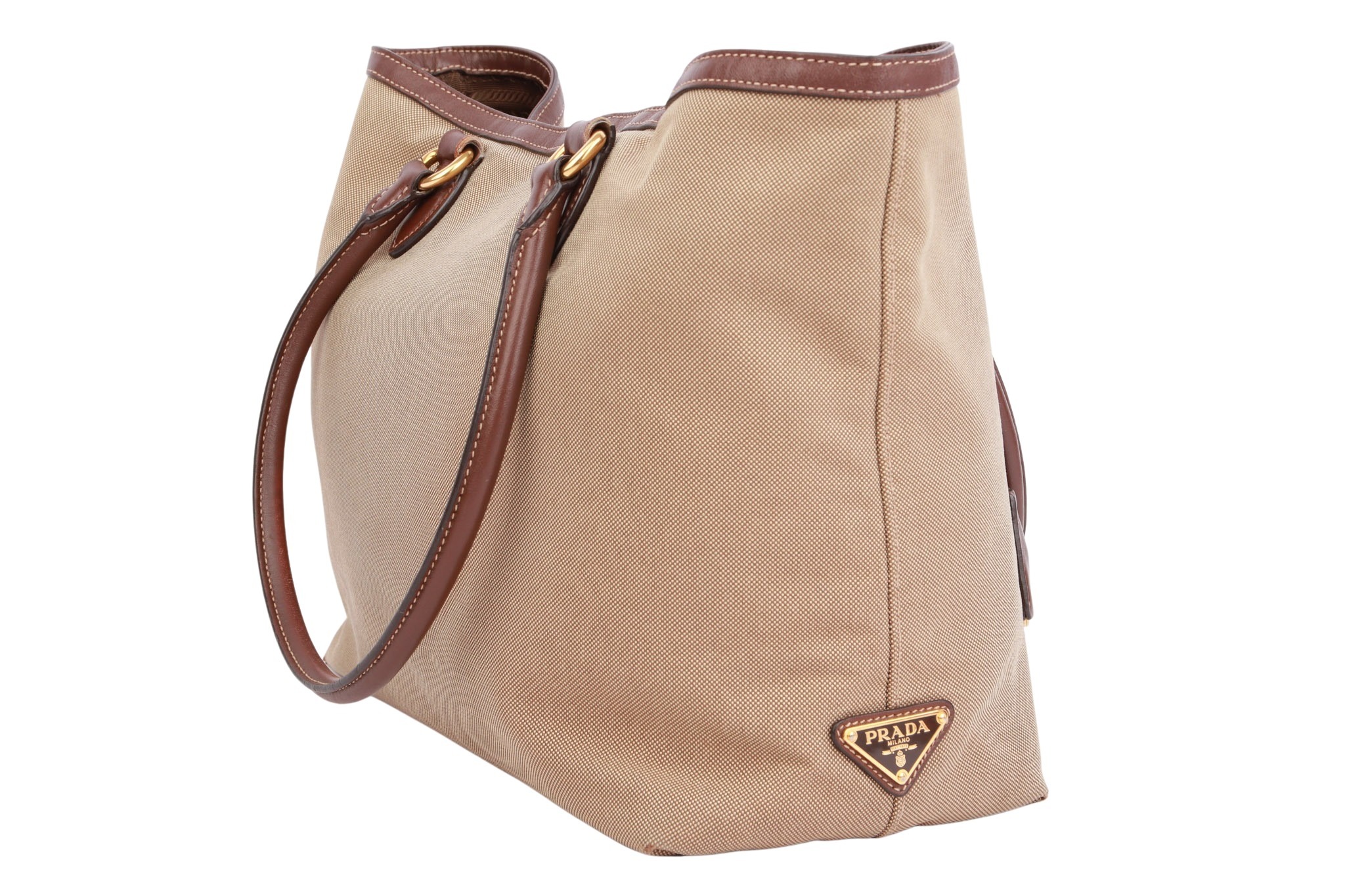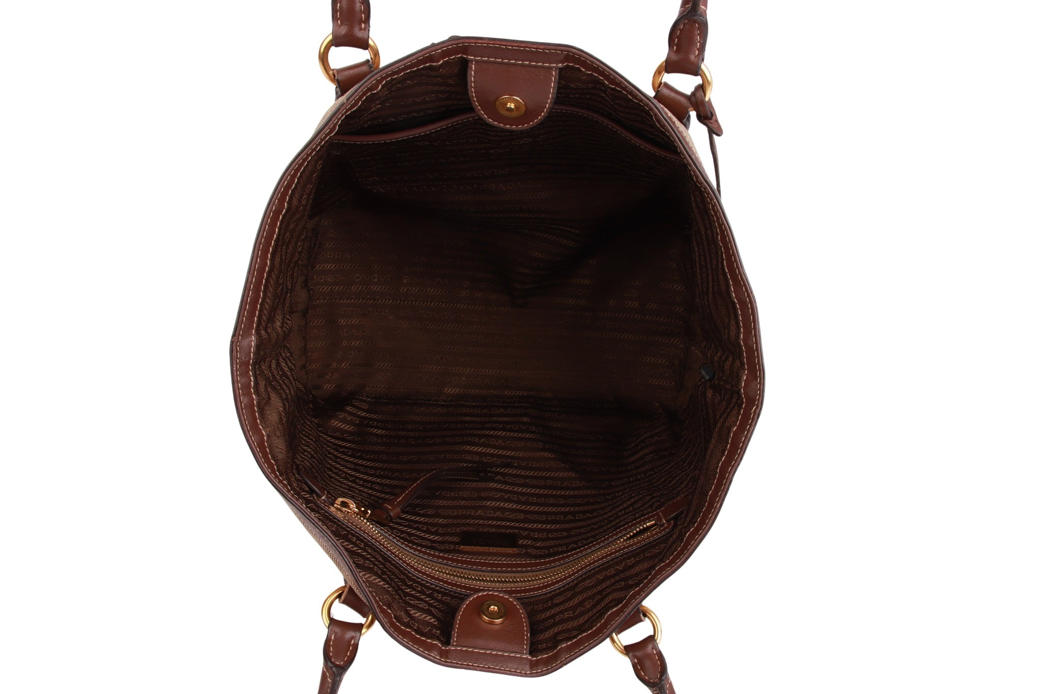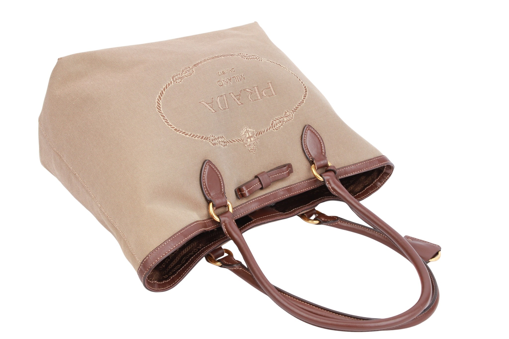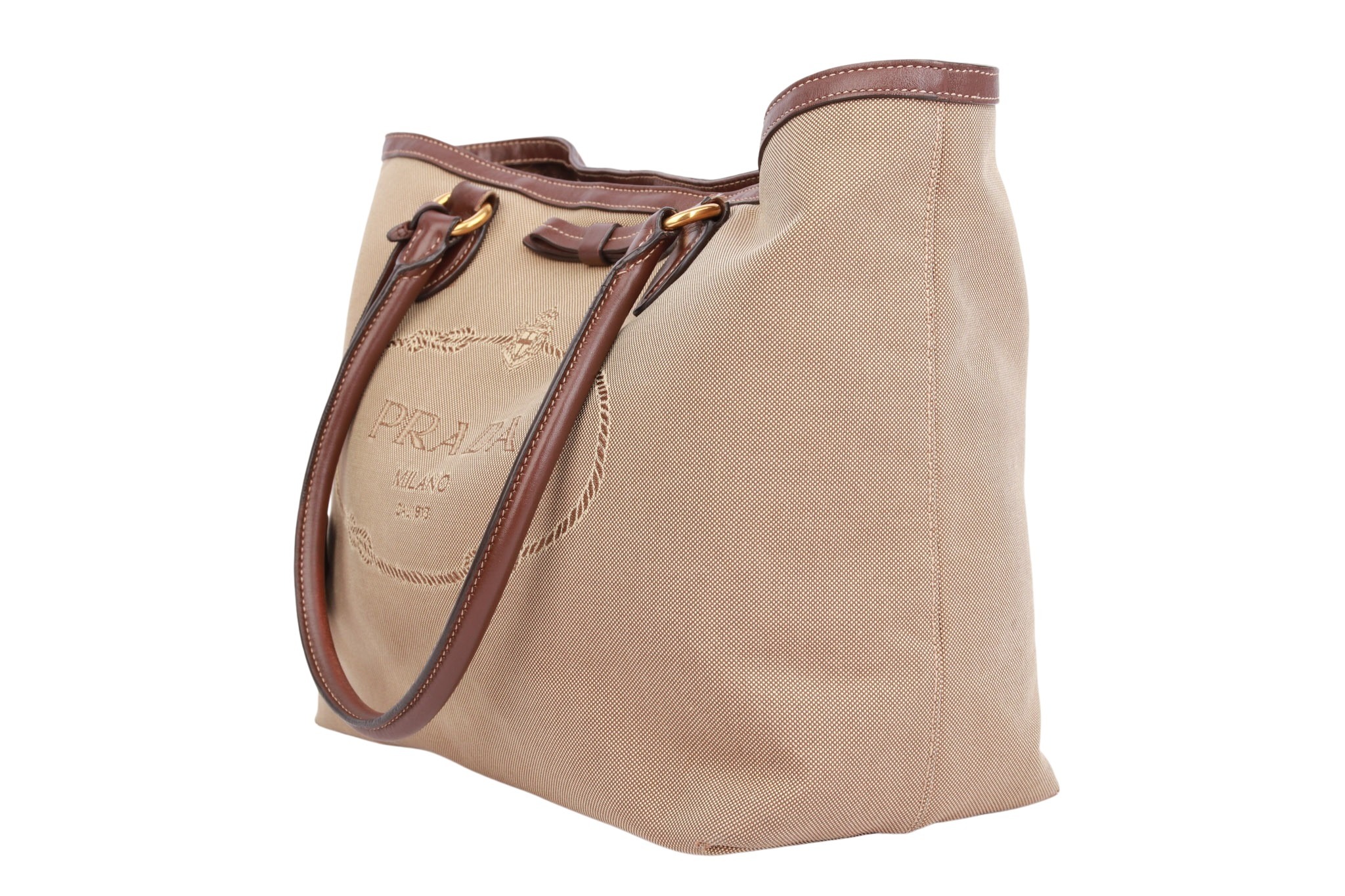 Die Prada Jacquard Canvas Tote Bag in Beige/Braun ist eine stilvolle und praktische Tasche. Sie besteht aus robustem Canvas-Material, das langlebig und leicht zu pflegen ist. Das schlichte, elegante Design in Beige/ Braun macht sie vielseitig kombinierbar für viele Anlässe. Perfekt, um Alltagssachen stilvoll zu transportieren!