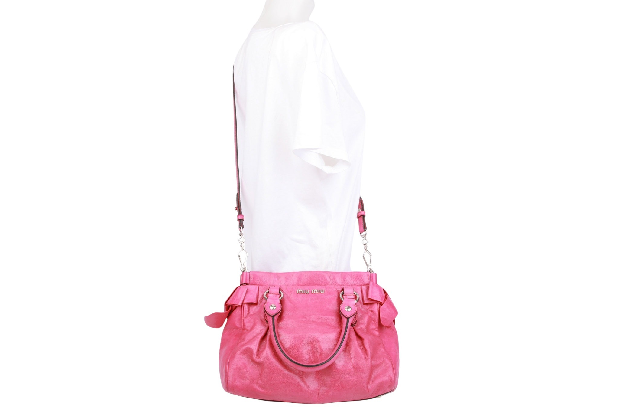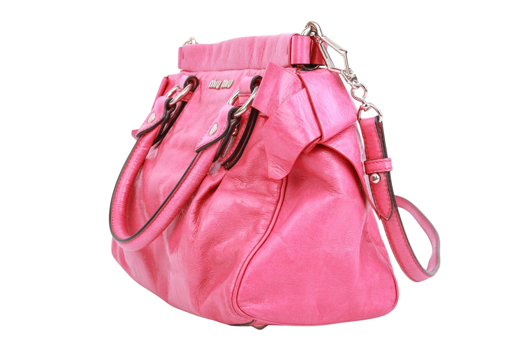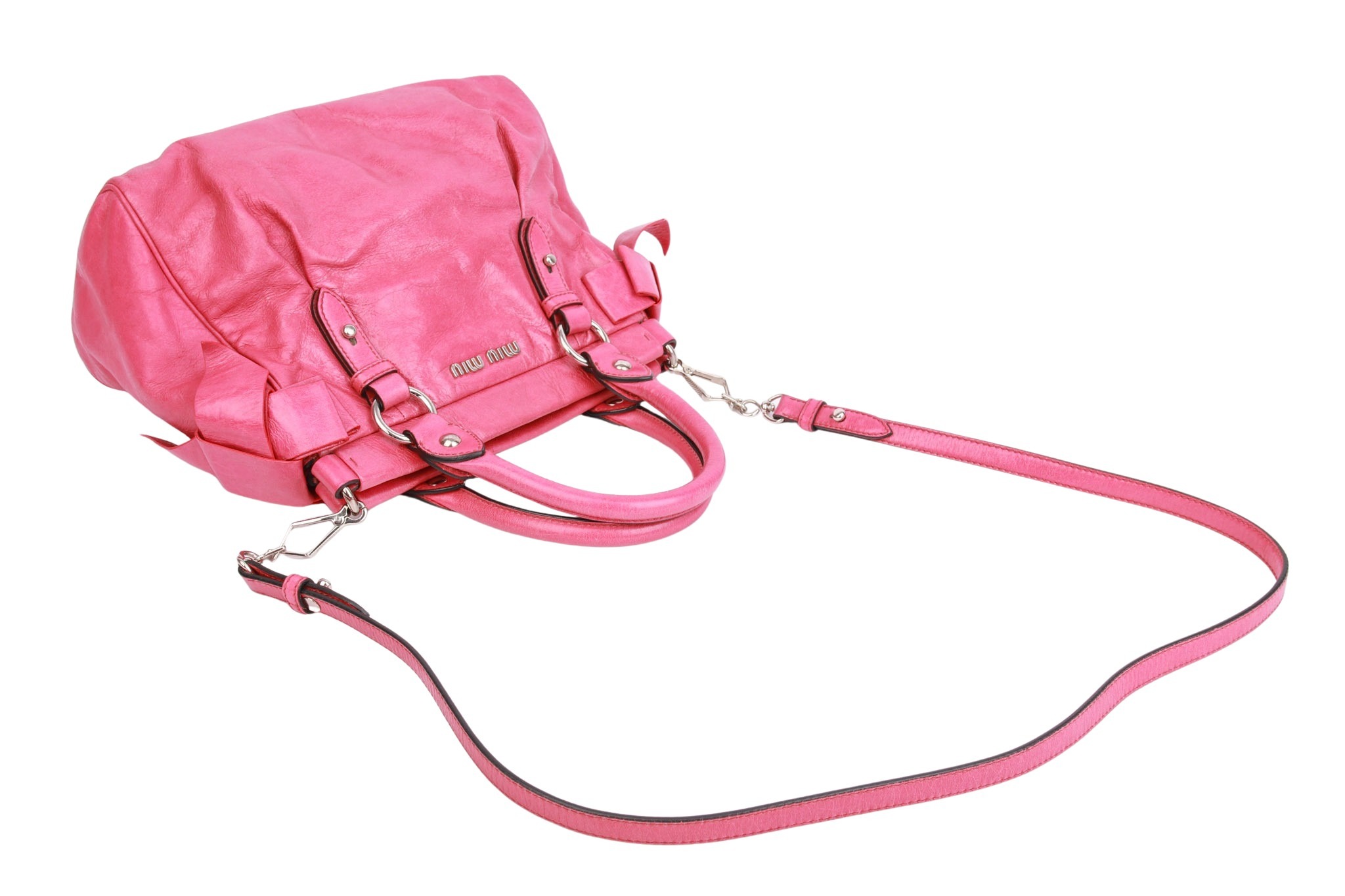 Sehr schöne Handtasche aus Leder aus dem Hause Miu Miu mit silberfarbenen Metallelementen.
