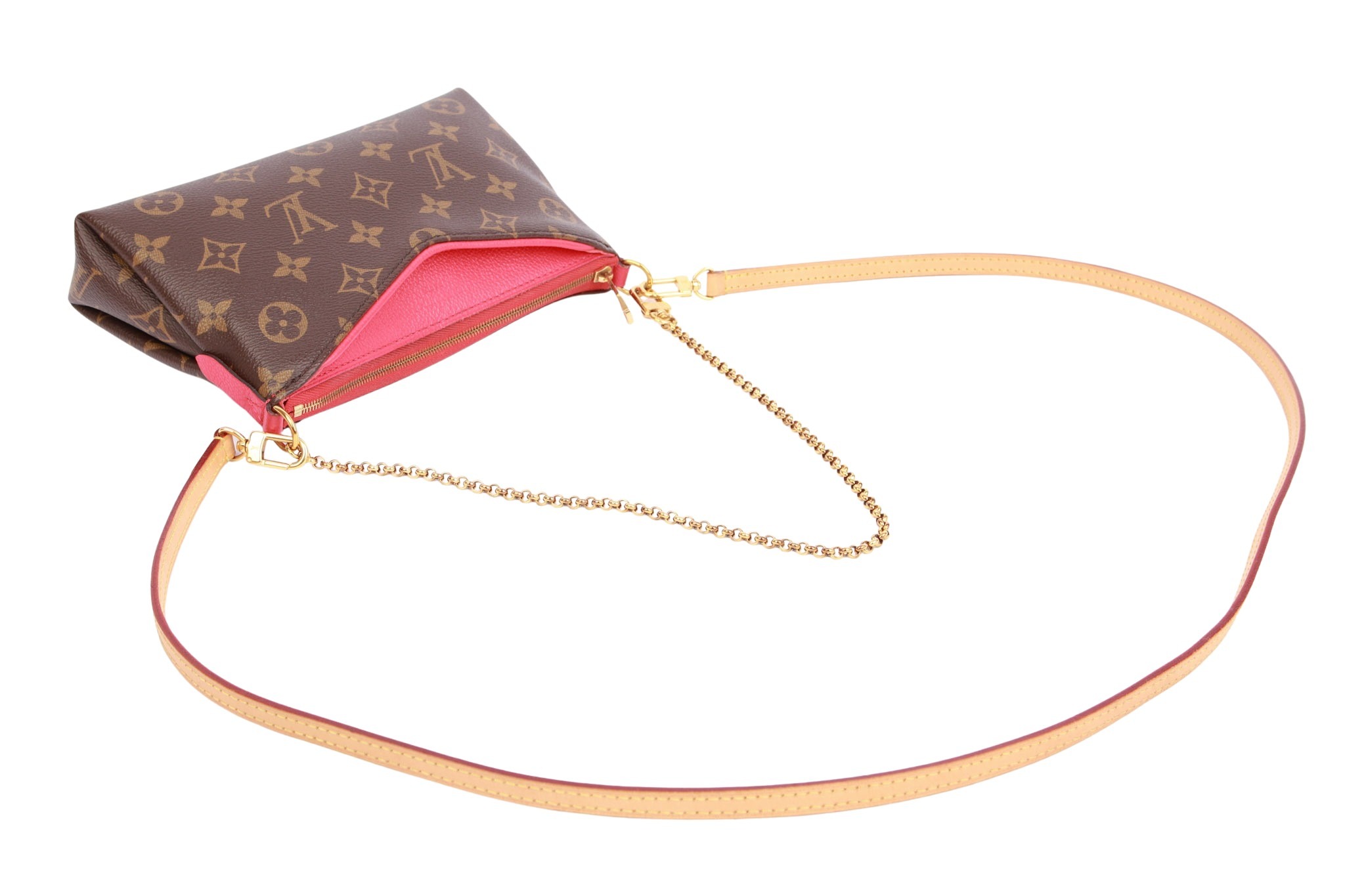 Die Louis Vuitton Pallas Clutch Monogram Canvas vereint ikonisches Design mit femininer Raffinesse. Sie besticht durch das klassische Monogram-Canvas, das mit weichem, rotem Kalbsleder kontrastiert und so ein harmonisches Zusammenspiel aus Tradition und modernen Akzenten schafft.