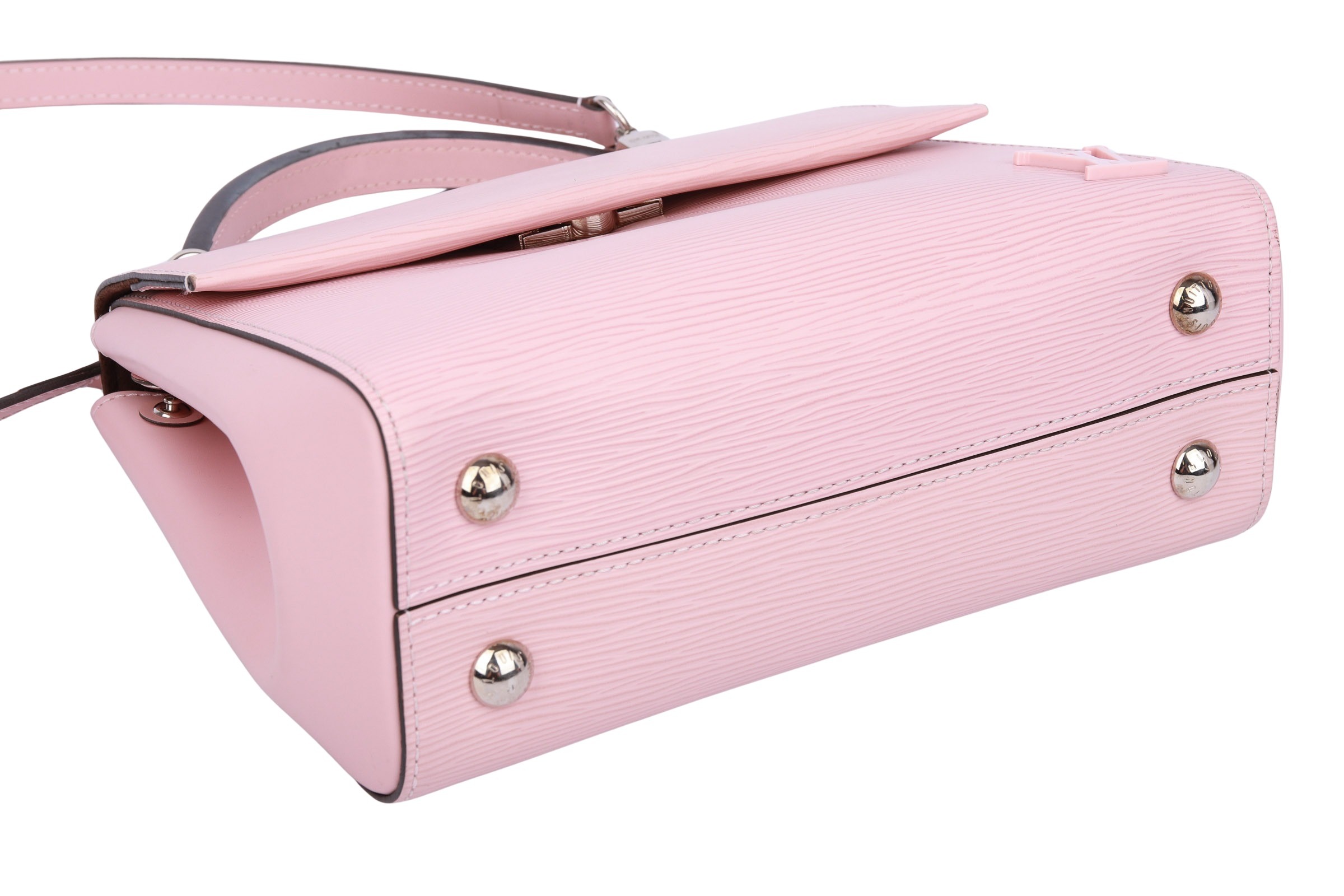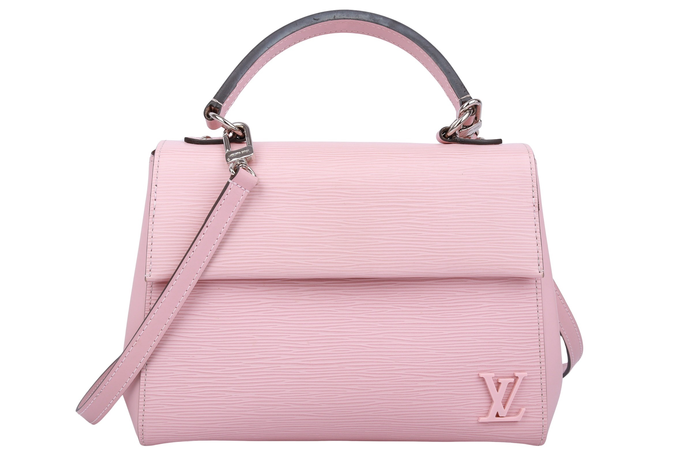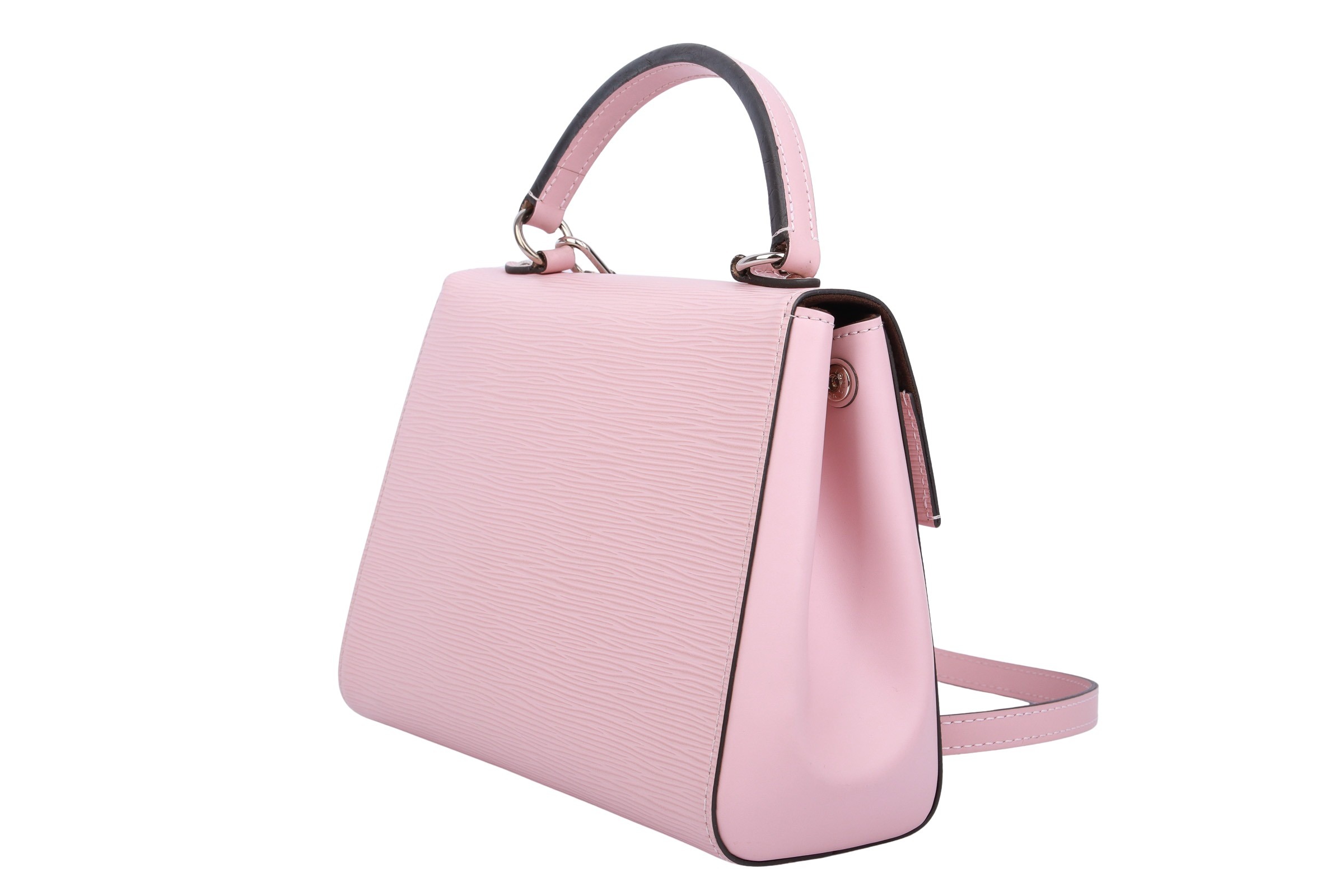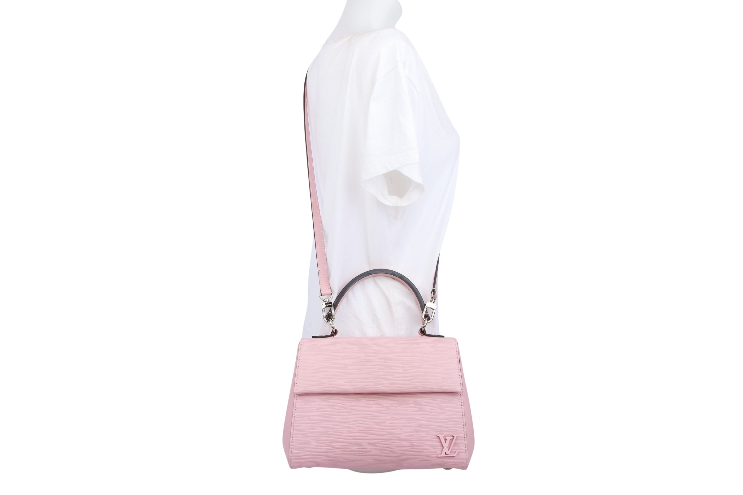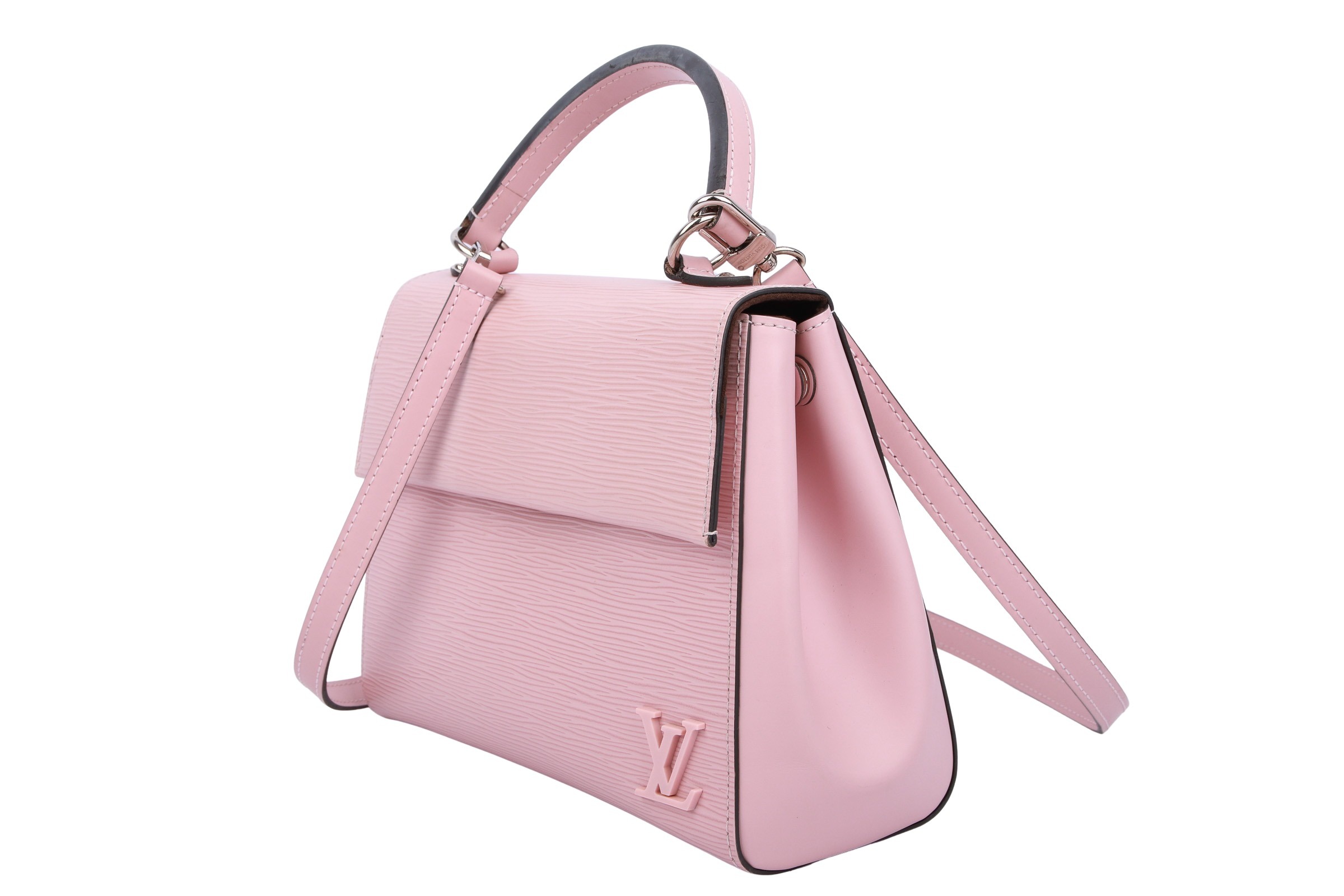 The Cluny BB by Louis Vuitton combines timeless elegance with modern sophistication. Crafted from textured Epi leather in a soft pink, it captivates with its clean lines and subtle LV logo. Its handy cut, detachable shoulder strap, and premium gold-tone details make it the perfect companion for stylish looks—whether day or evening.