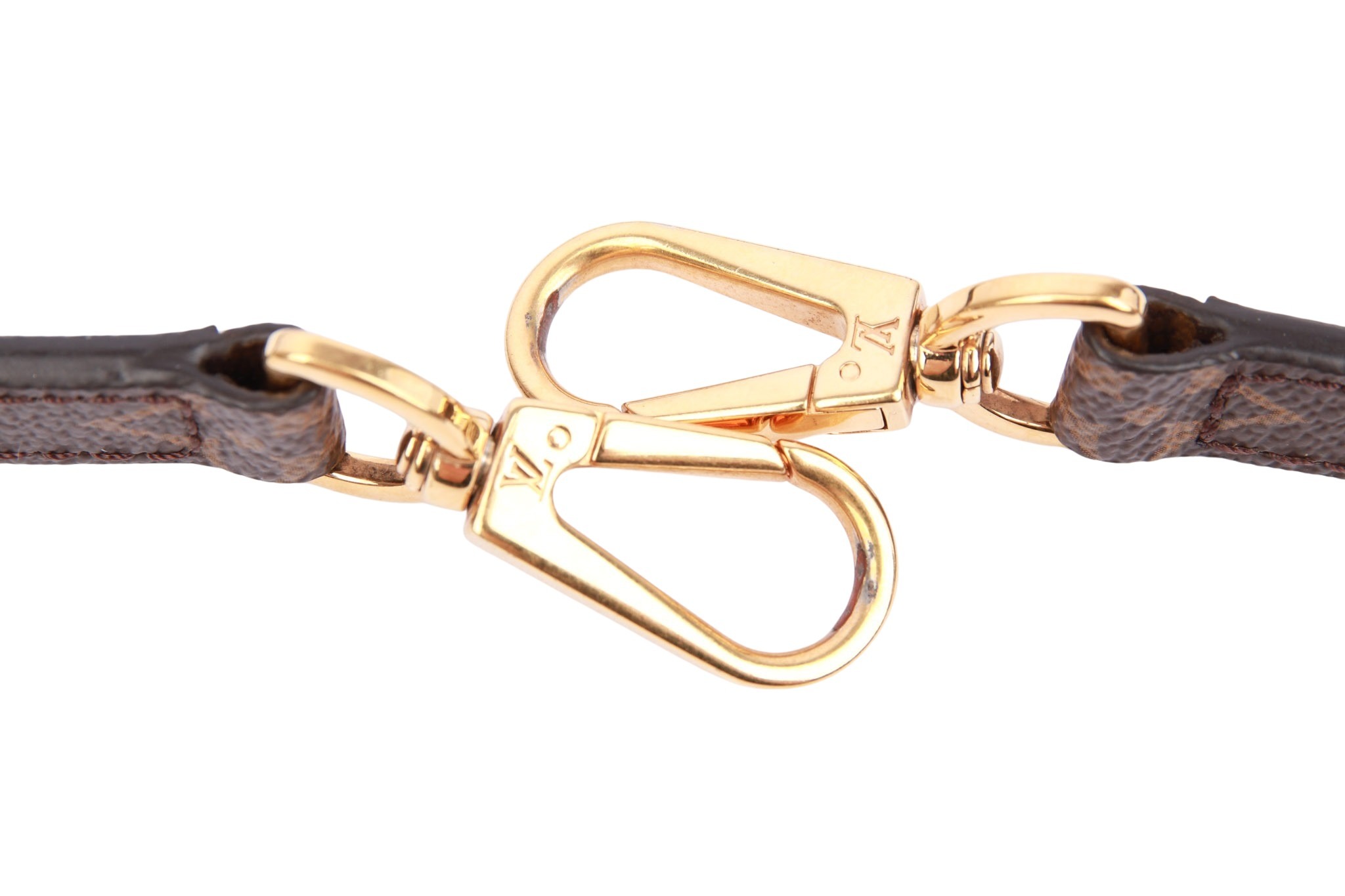 The Louis Vuitton shoulder strap is a stylish accessory that gives bags an individual and feminine touch. Made from high-quality material, the strap is not only very comfortable to wear, but also easy to adjust the length. With gold-colored snap hooks, it can be easily attached to different bag models. An elegant and versatile detail that adds a touch of color and luxury to any outfit.
