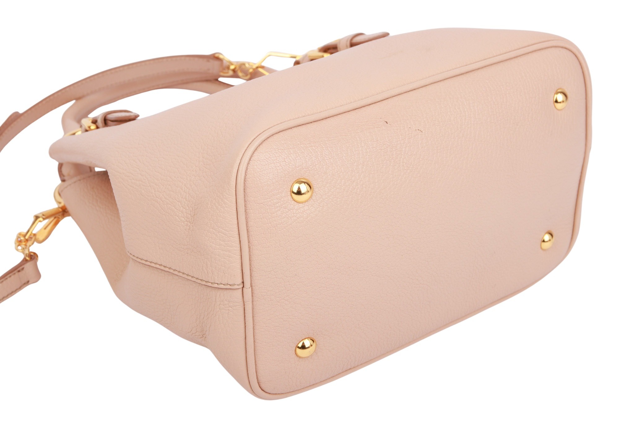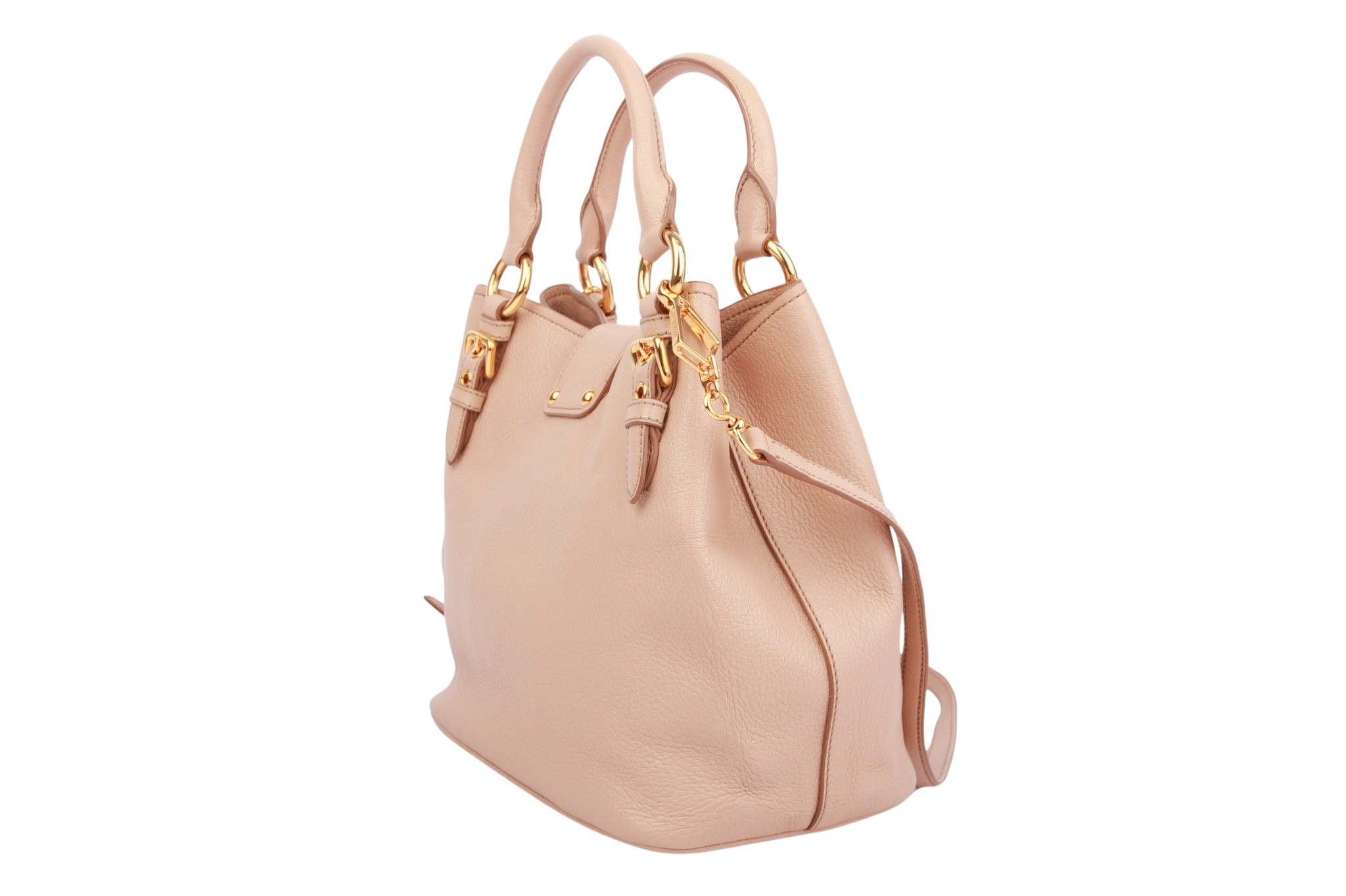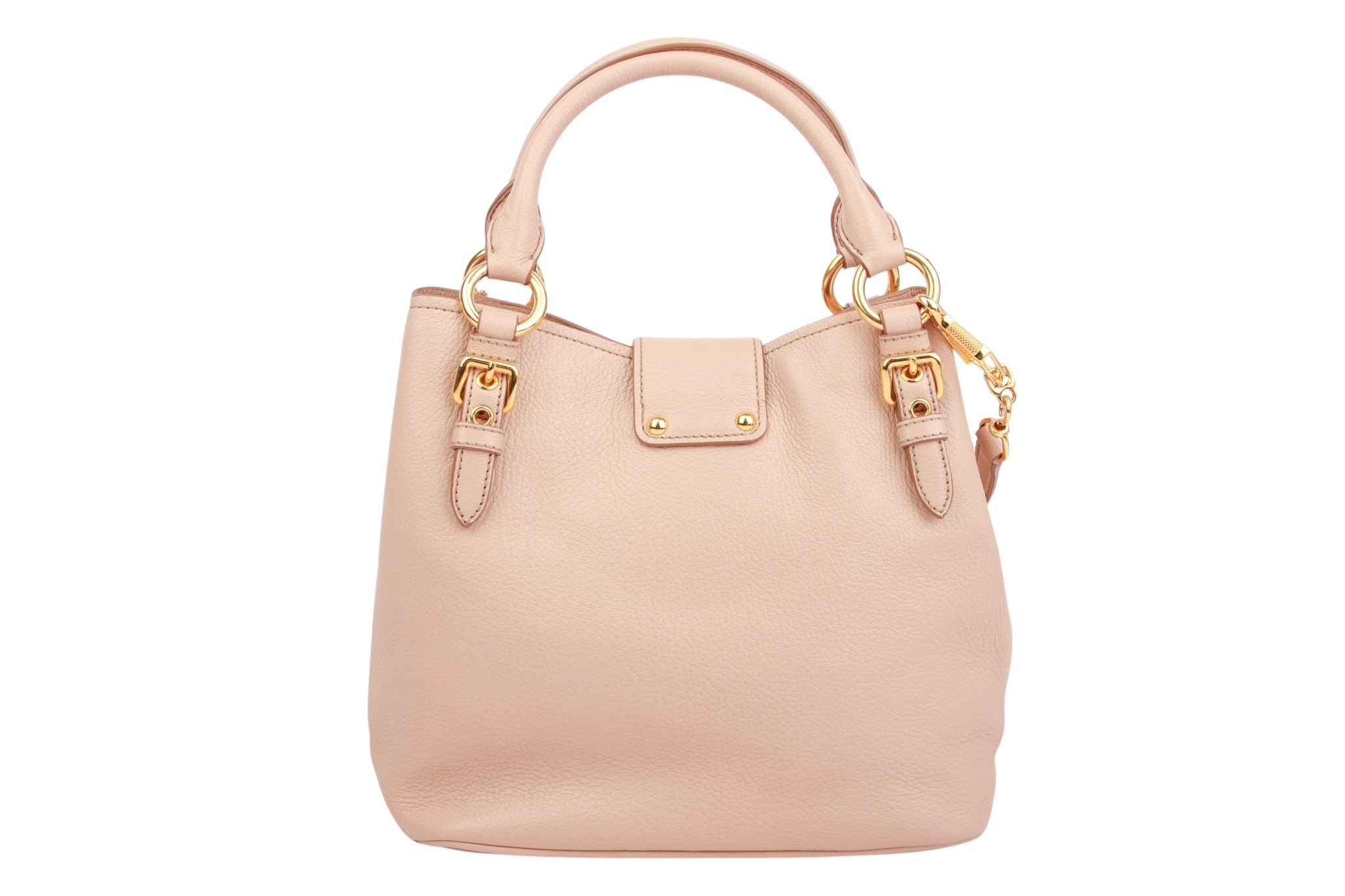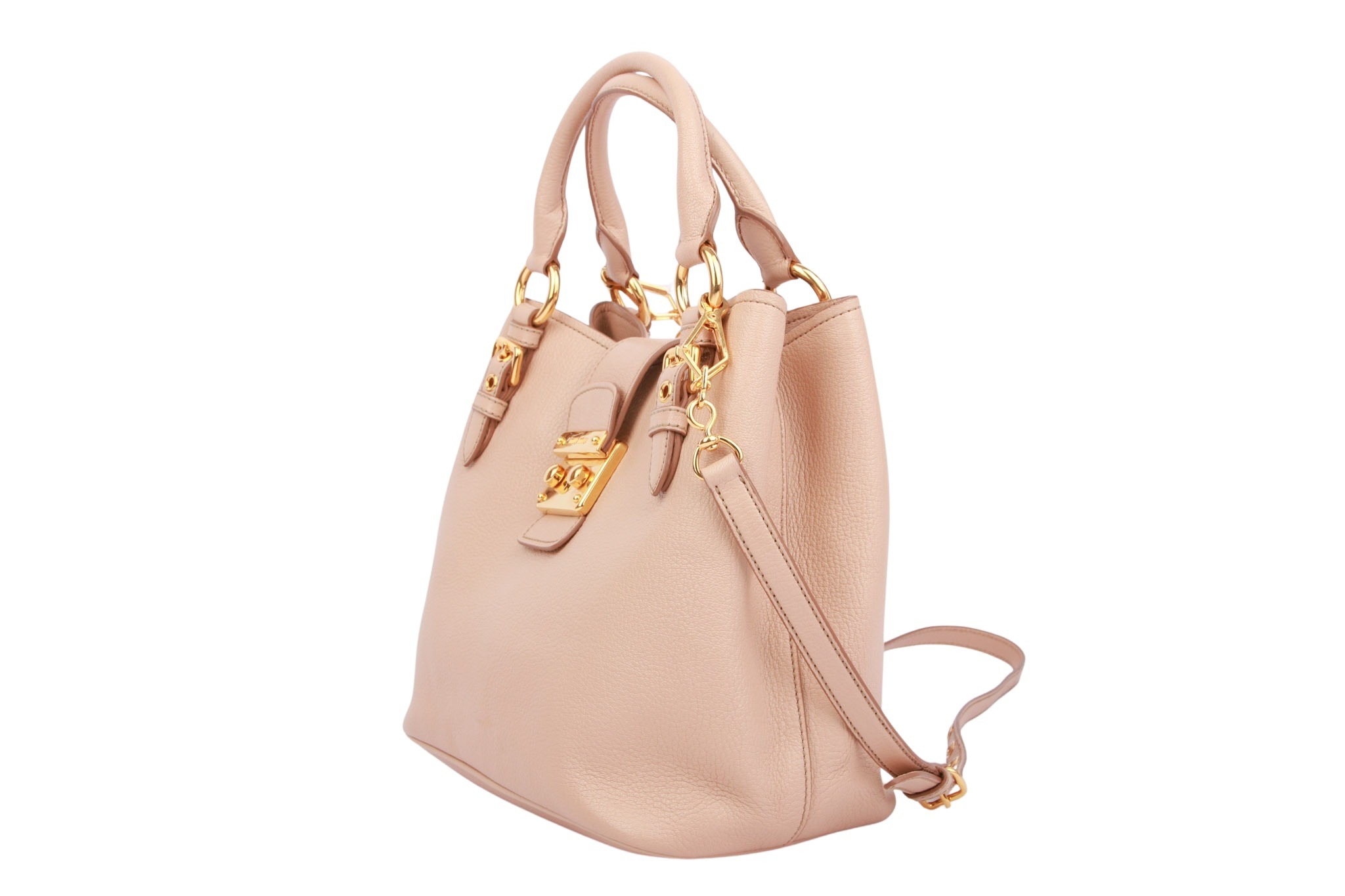An elegant Miu Miu shoulder bag in a sophisticated nude tone, combining timeless elegance with modern design. The bag impresses with its high-quality material and the brand's signature feminine aesthetic. Its neutral color makes it versatile and the perfect companion for everyday life and special occasions.