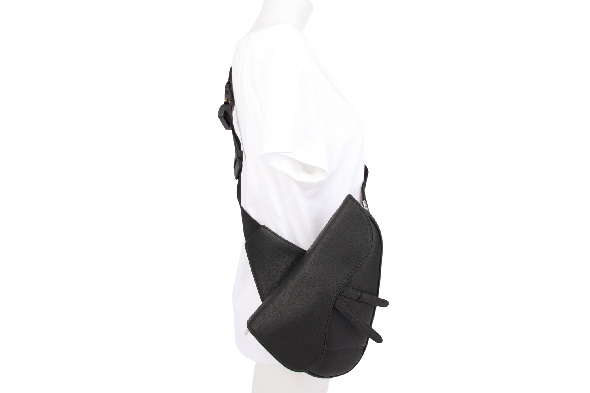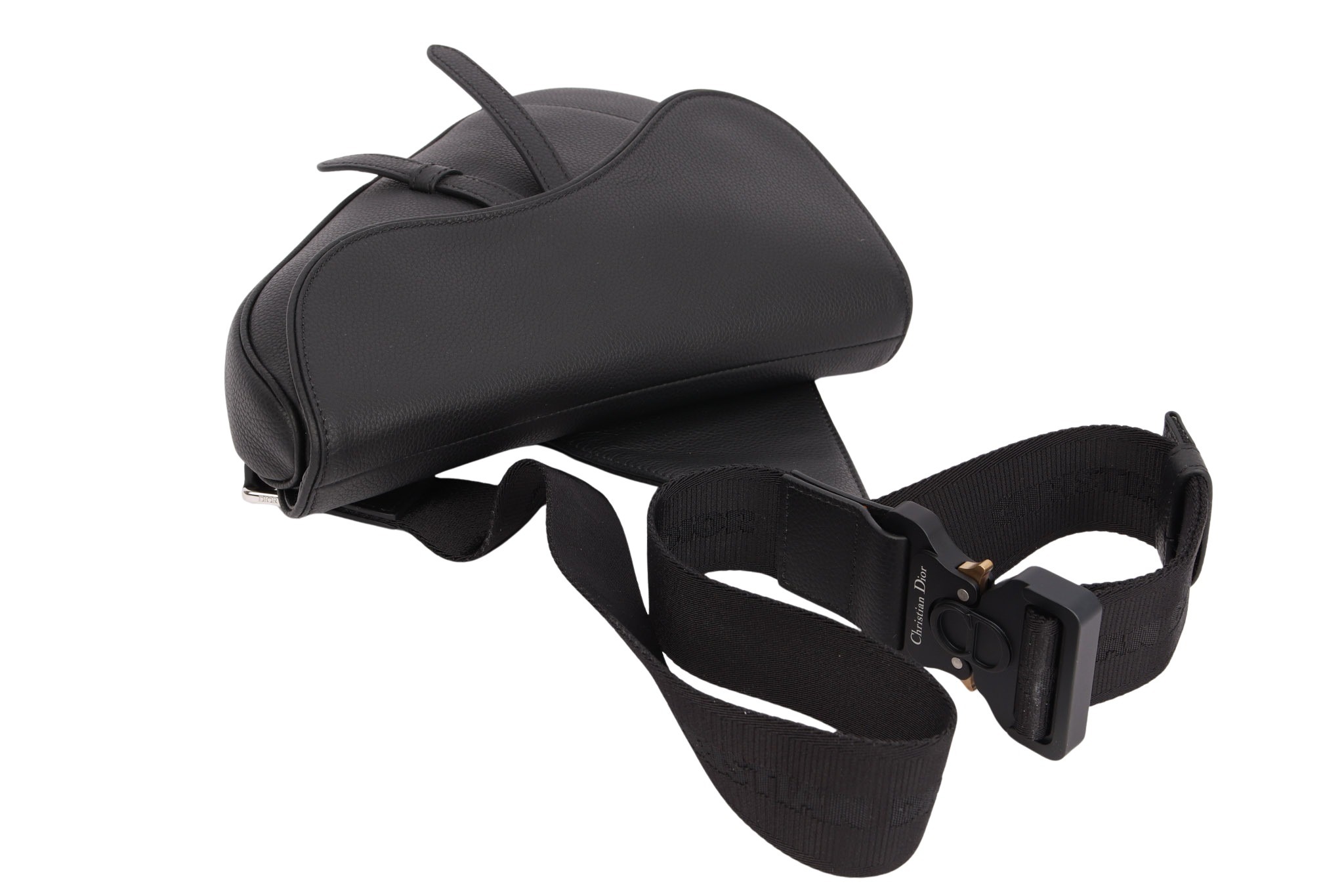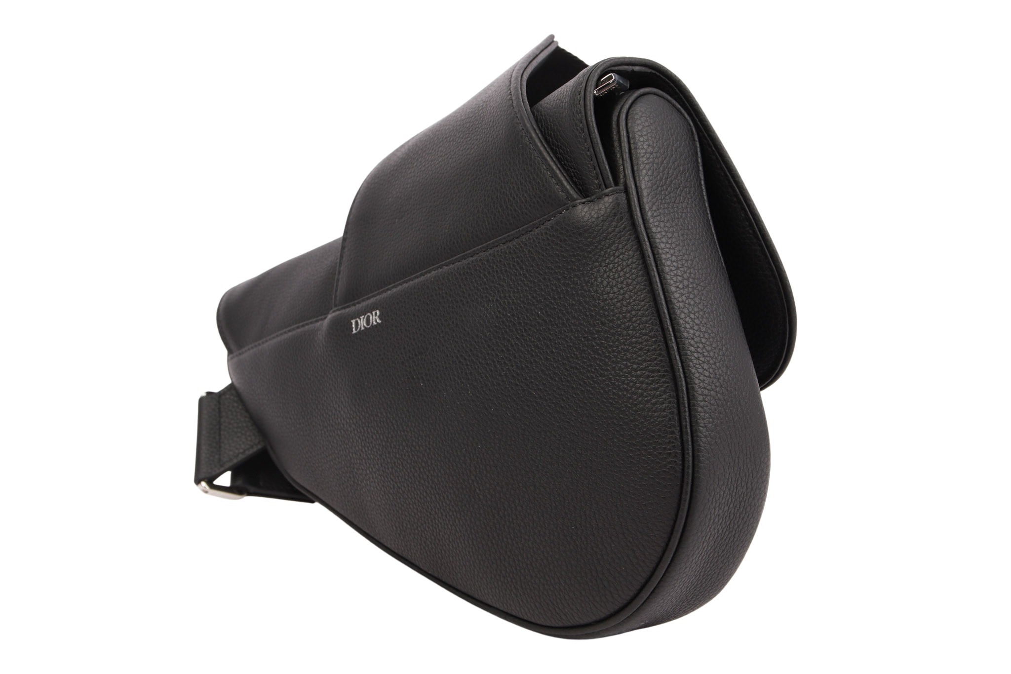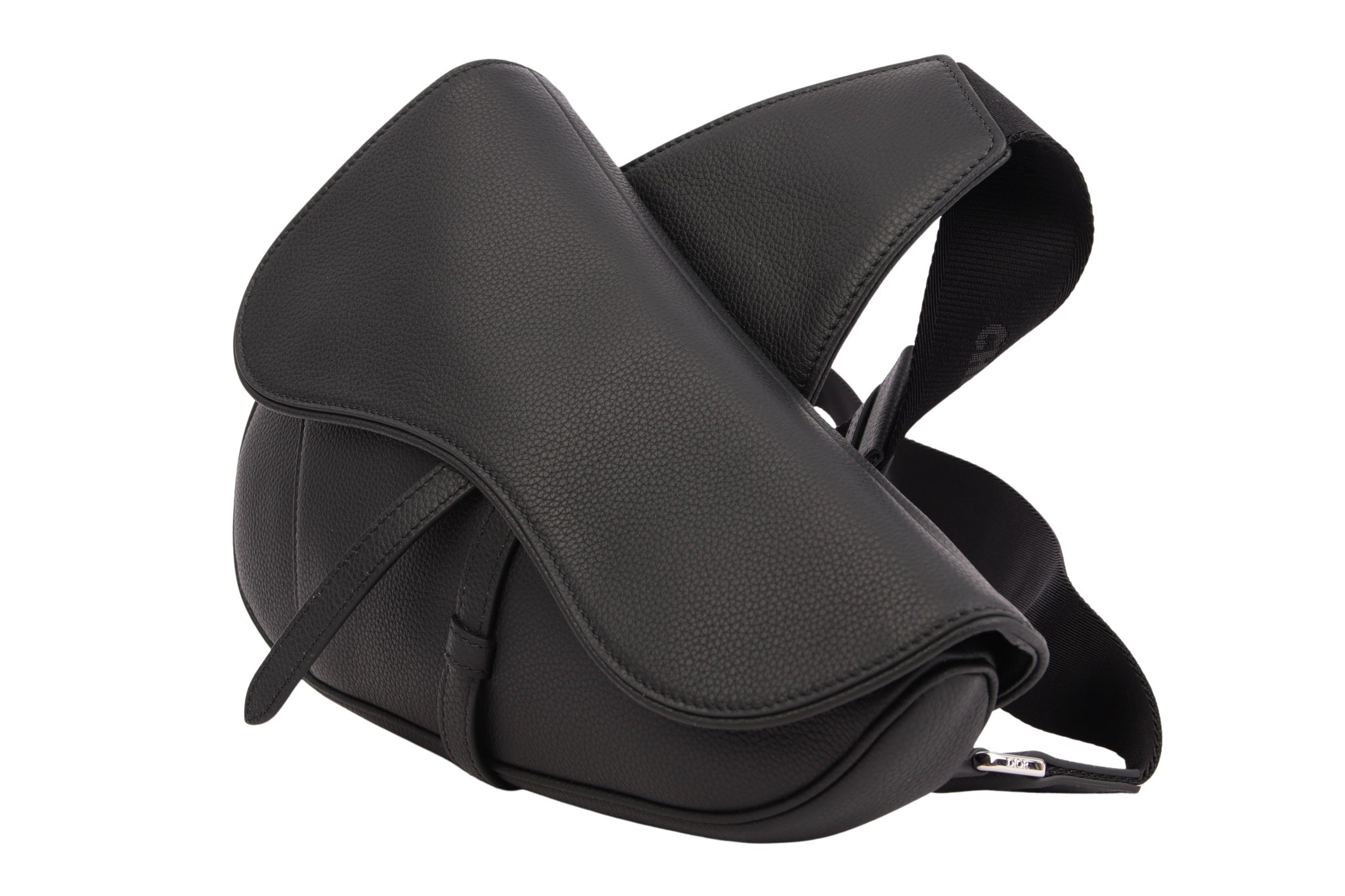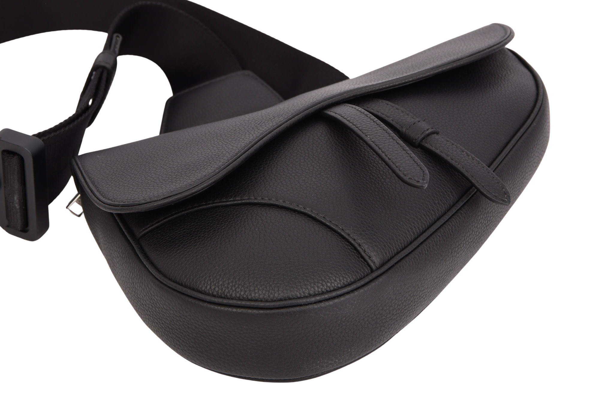 The Dior Saddle Belt Bag in black leather from the Fall 2020 Men Collection combines timeless design with luxurious elegance. Its iconic saddlebag shape and high-quality leather make it a stylish companion.