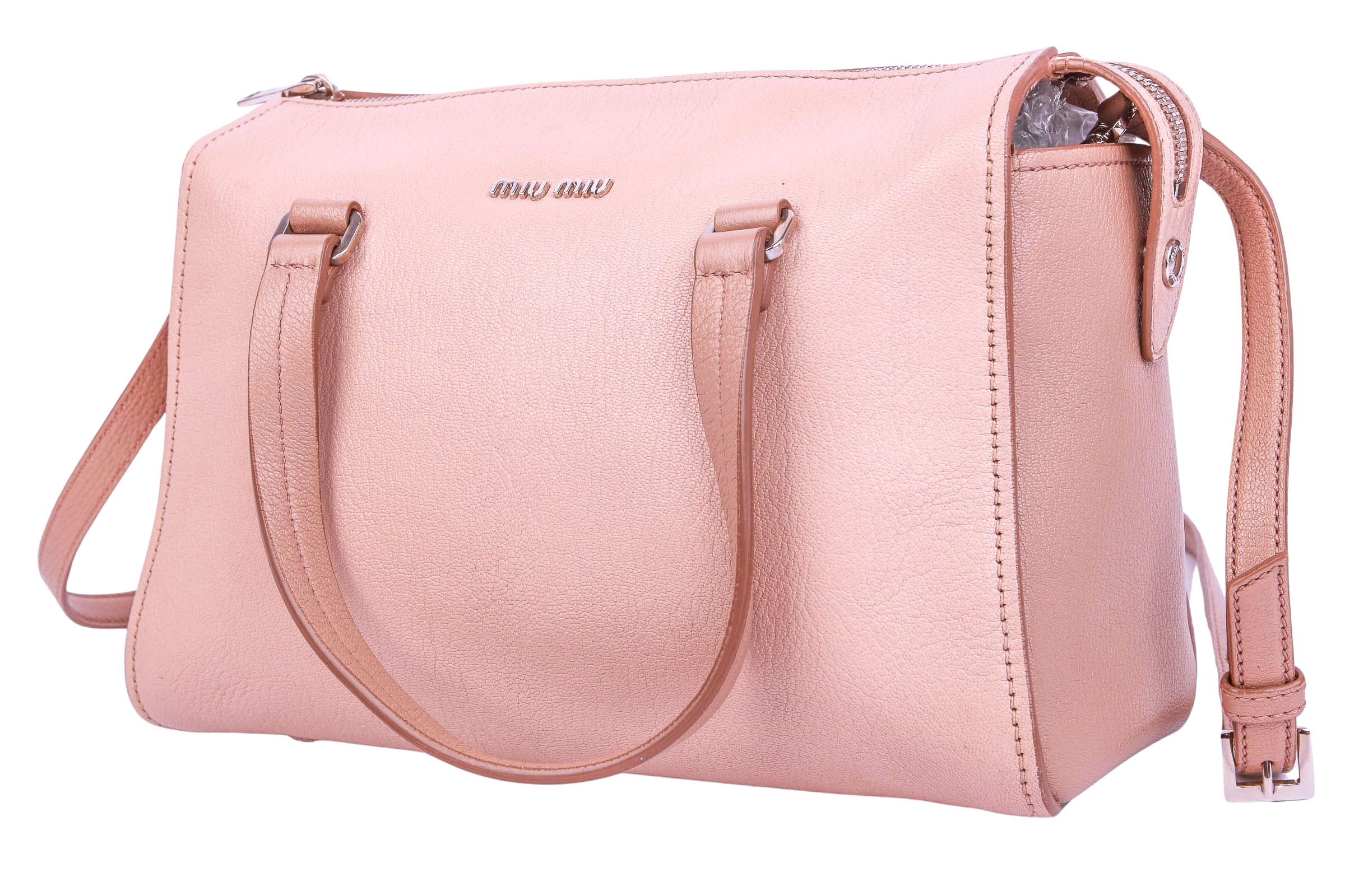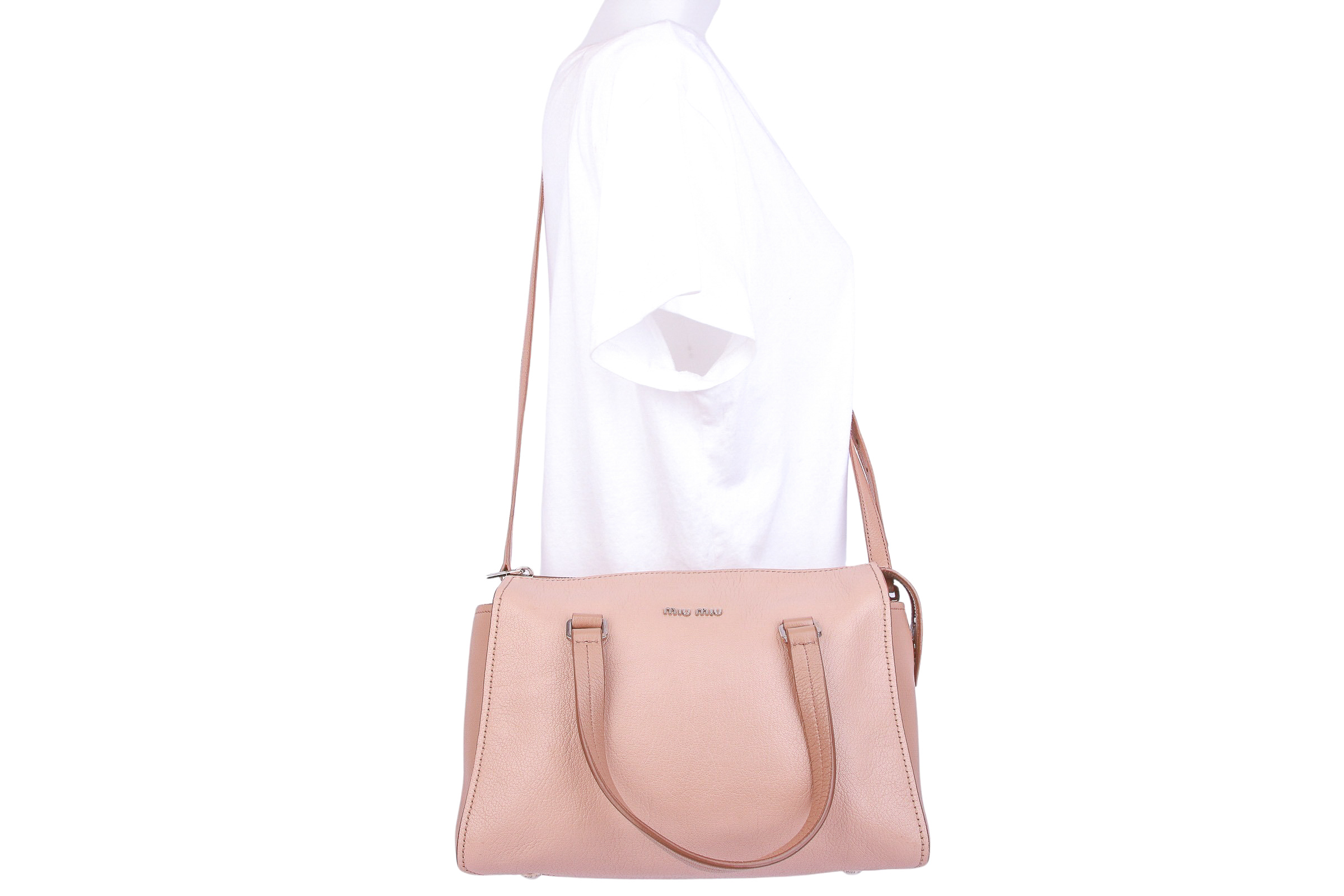 Miu Miu Madras is an elegant handbag that embodies luxury and sophistication. Made from premium beige Madras leather, it exudes timeless elegance. The textured finish gives the bag a subtle sophistication, while the gold accents add a touch of glamour. With its spacious interior, it offers enough space for all your essentials without sacrificing style. This bag is perfect for any woman who values quality, style and class.