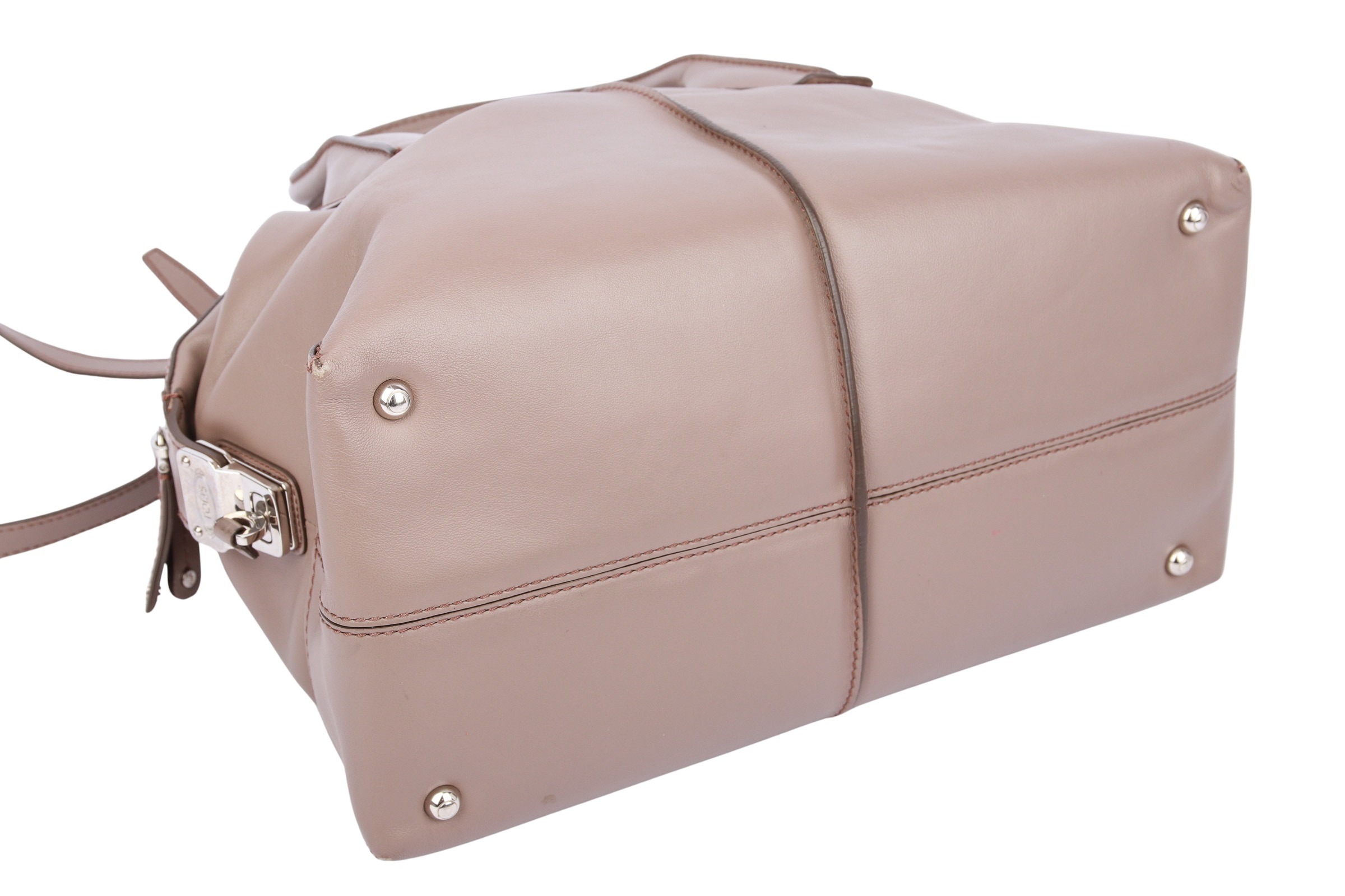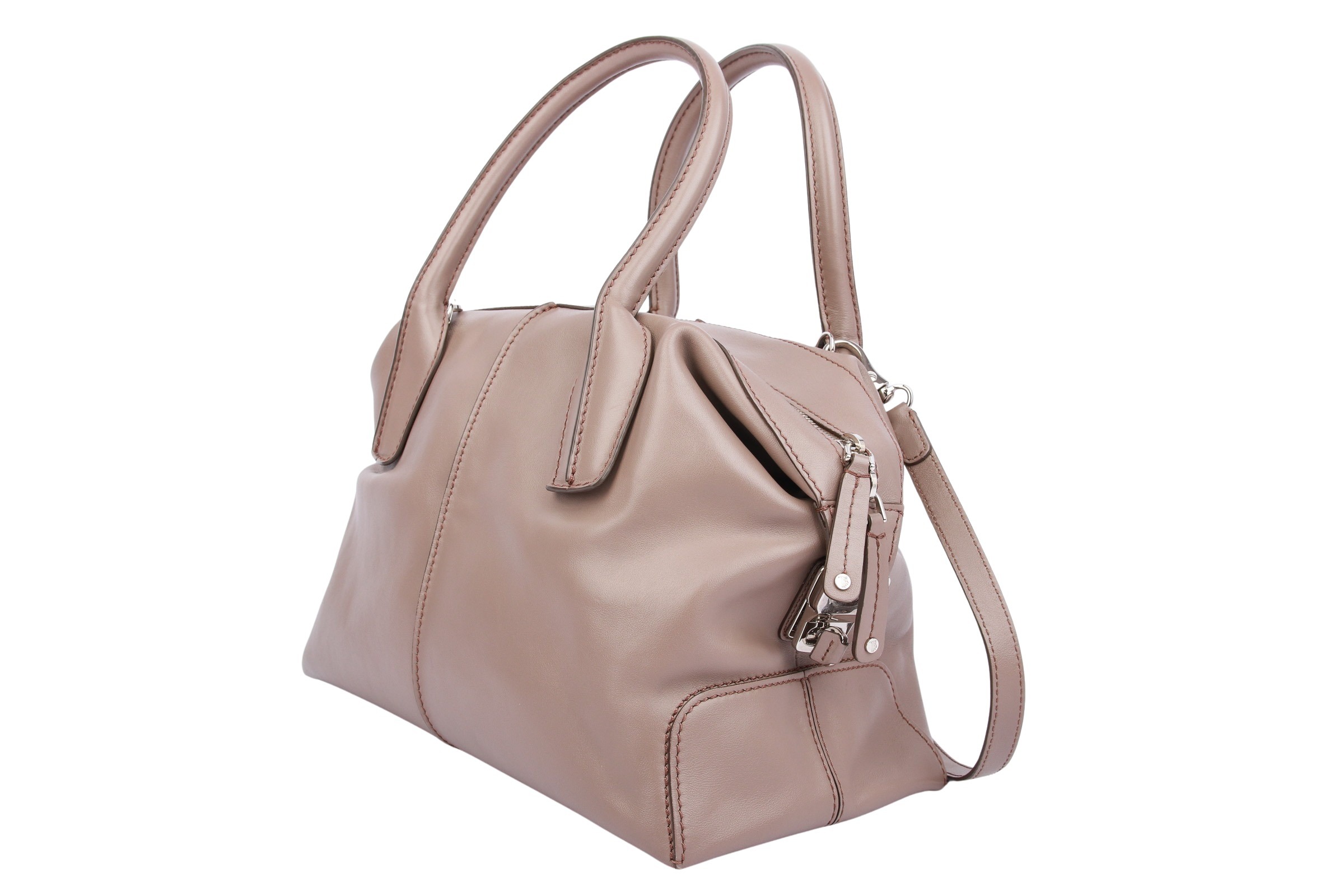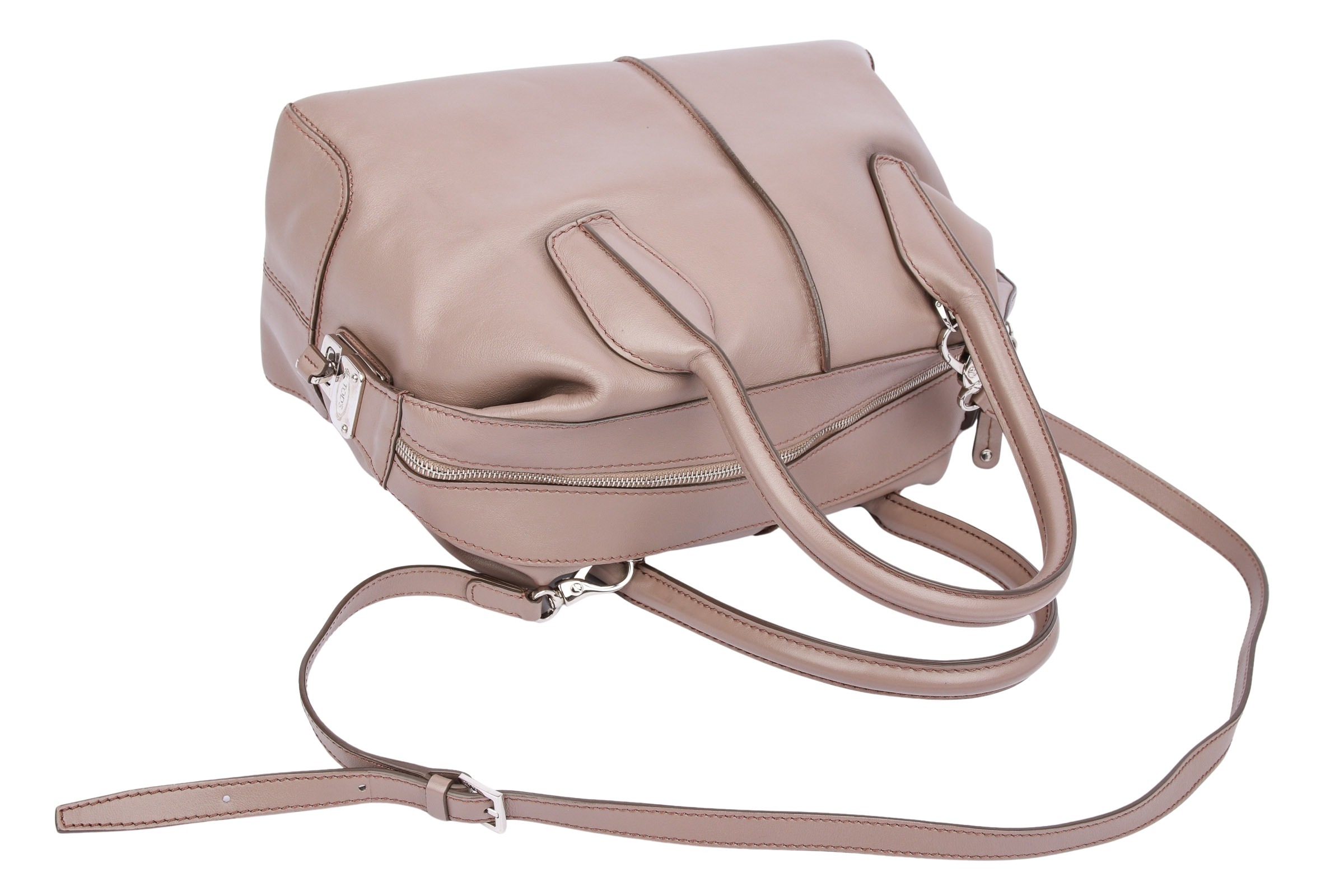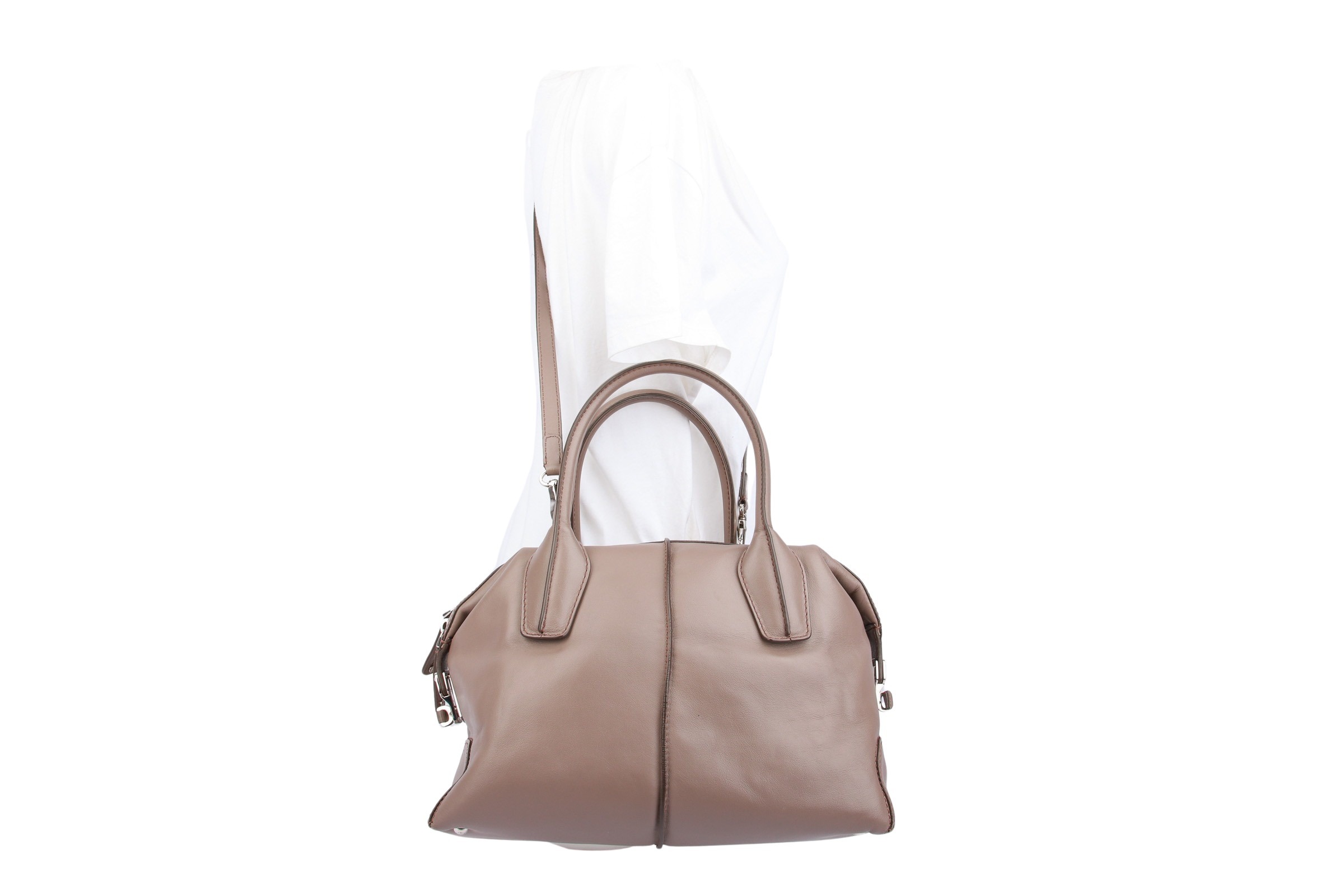 The Tod's D Bag Small in brown is an elegant shopping tote made of soft calfskin with a center stitch. Its warm brown color and high-quality craftsmanship make it a stylish companion for everyday wear, work, or leisure, with a touch of understatement.
