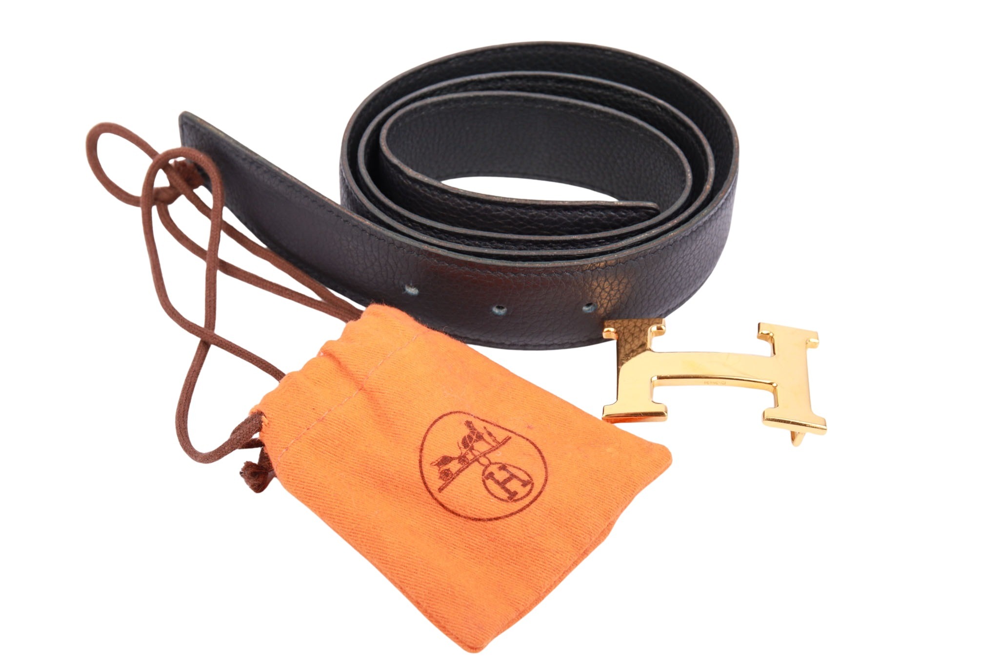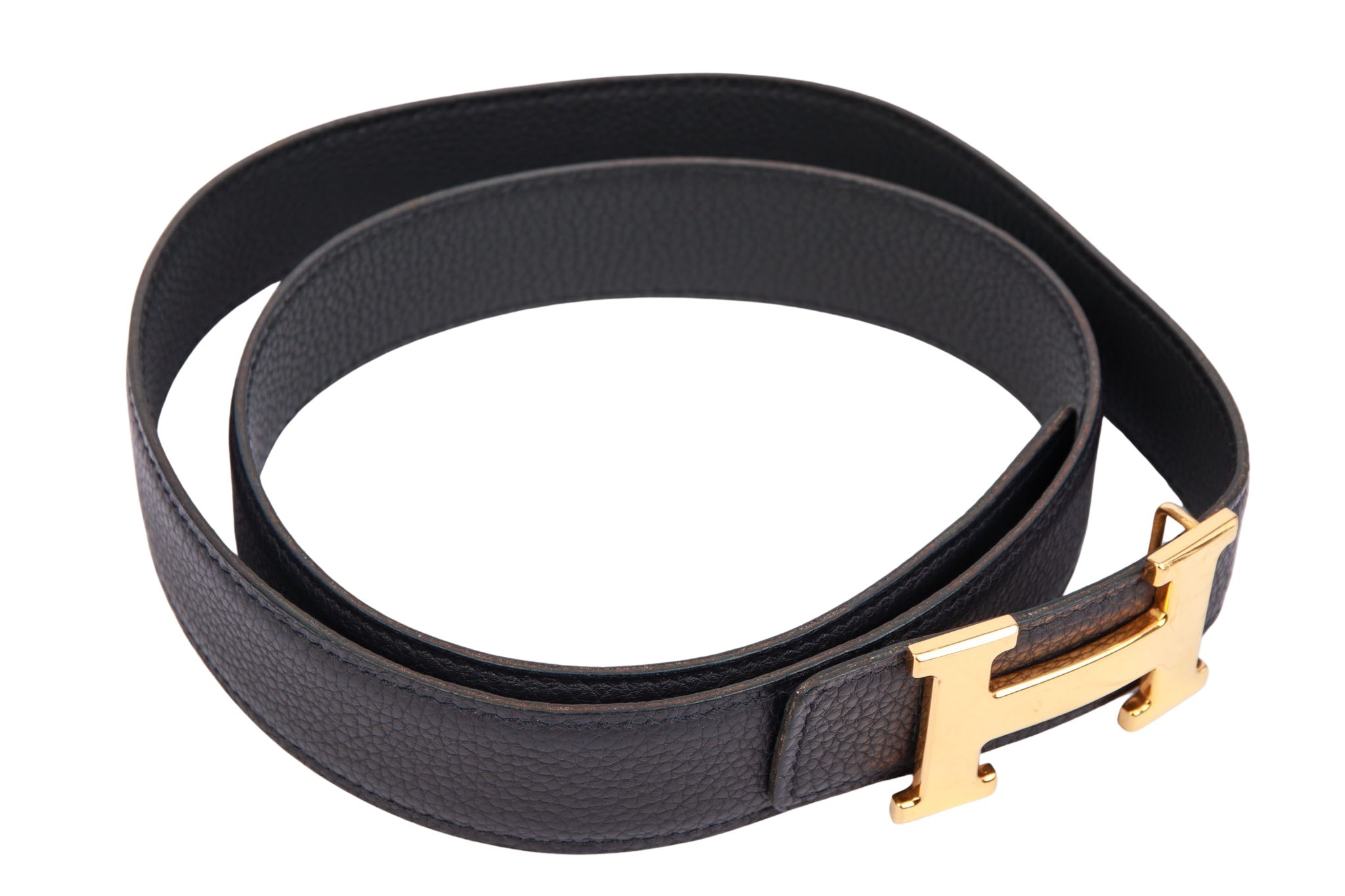 Hermès Wendegürtel 'H' Schwarz / Blau Gr. 90